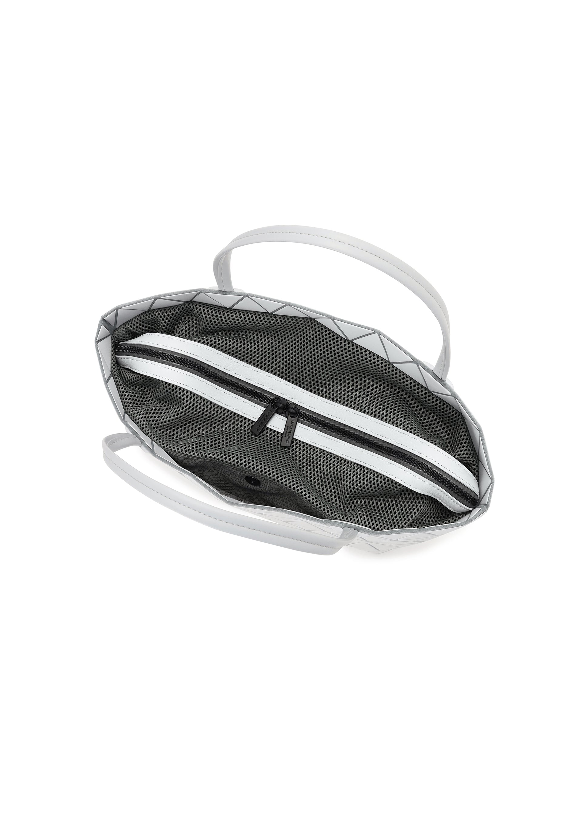 This large tote bag has cushioned handles. The minimalist design of the metal fittings at the base of the handles features the same shape and color as the pieces on the body of the bag. The bag’s elegant leather-like look makes it easy to match with everything from business to casual styles. It has a zippered opening with mesh material to allow you to carry valuables with peace of mind. It can hold A4-size documents and a 15-inch laptop.