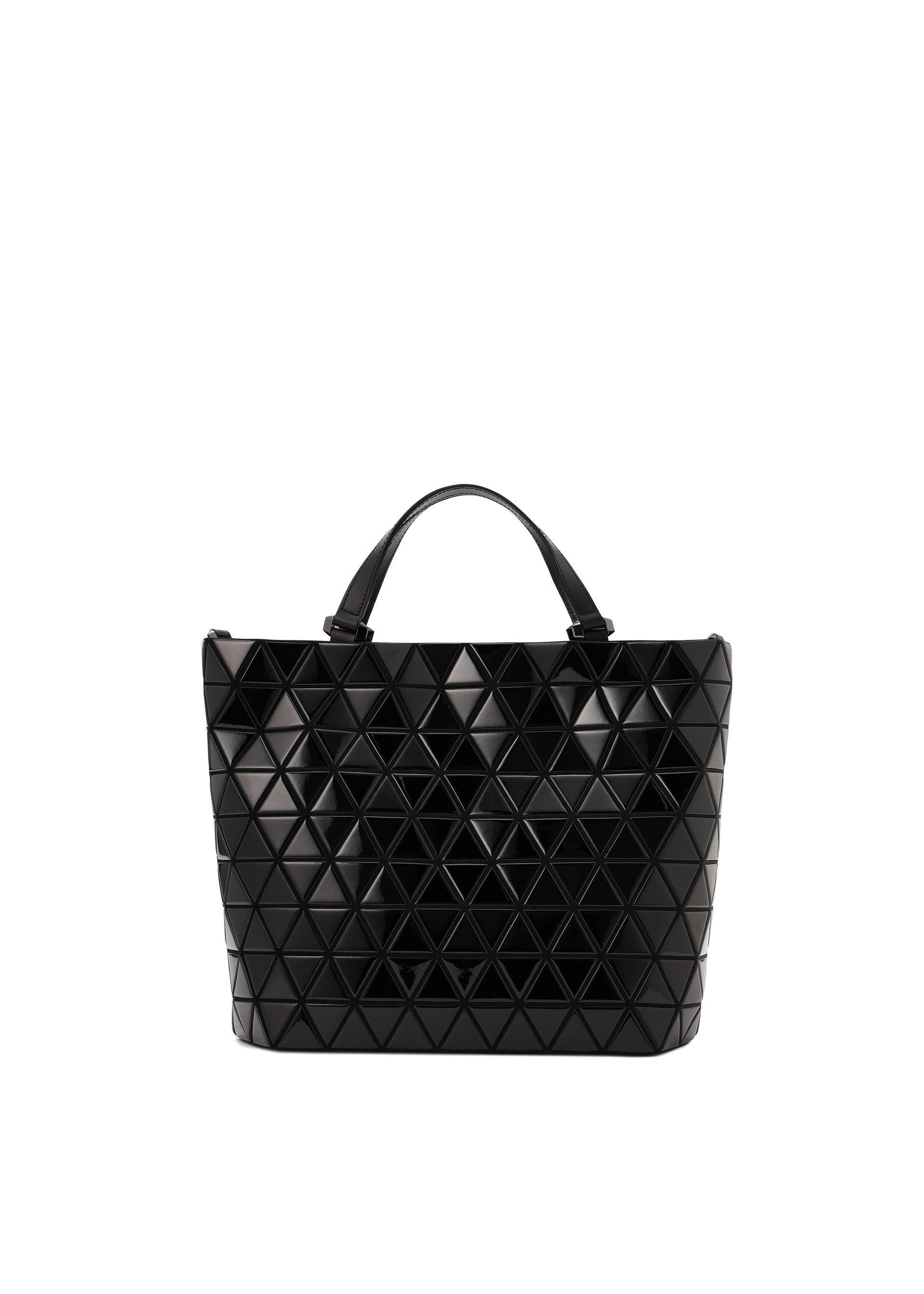 This elegant handbag combines triangular pieces made from glossy enamel material with leather on the straps and handles. The handles and shoulder strap are made from cowhide leather. It has two inside pockets that are convenient for organizing your card case, keys, and other items. The size allows it to hold A4-sized documents and a 13-inch laptop, making it perfect for scenarios.