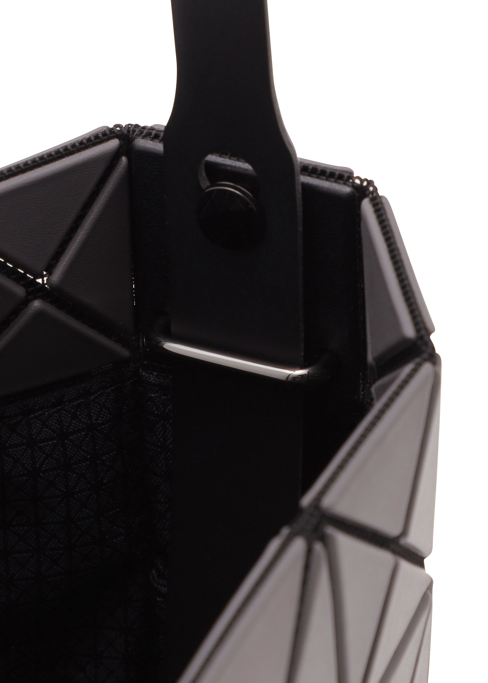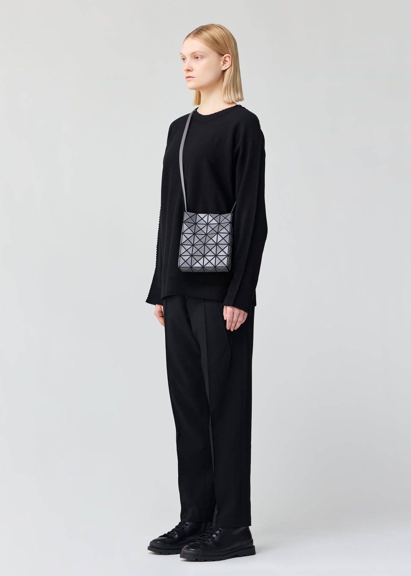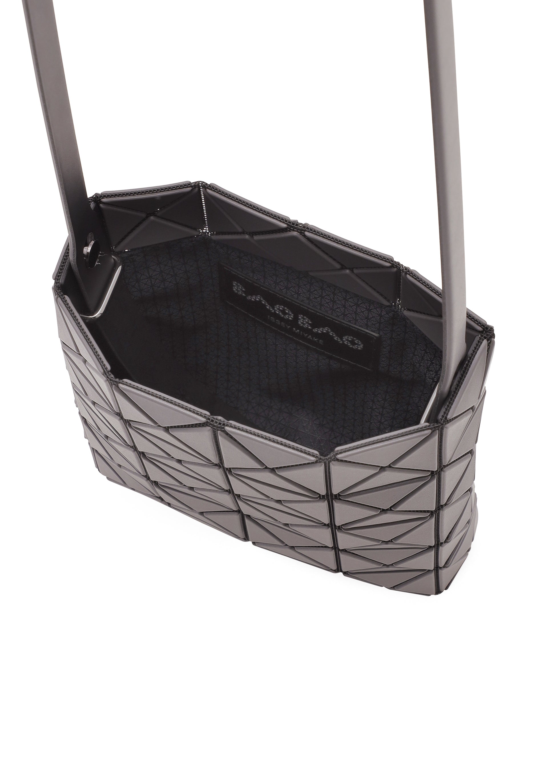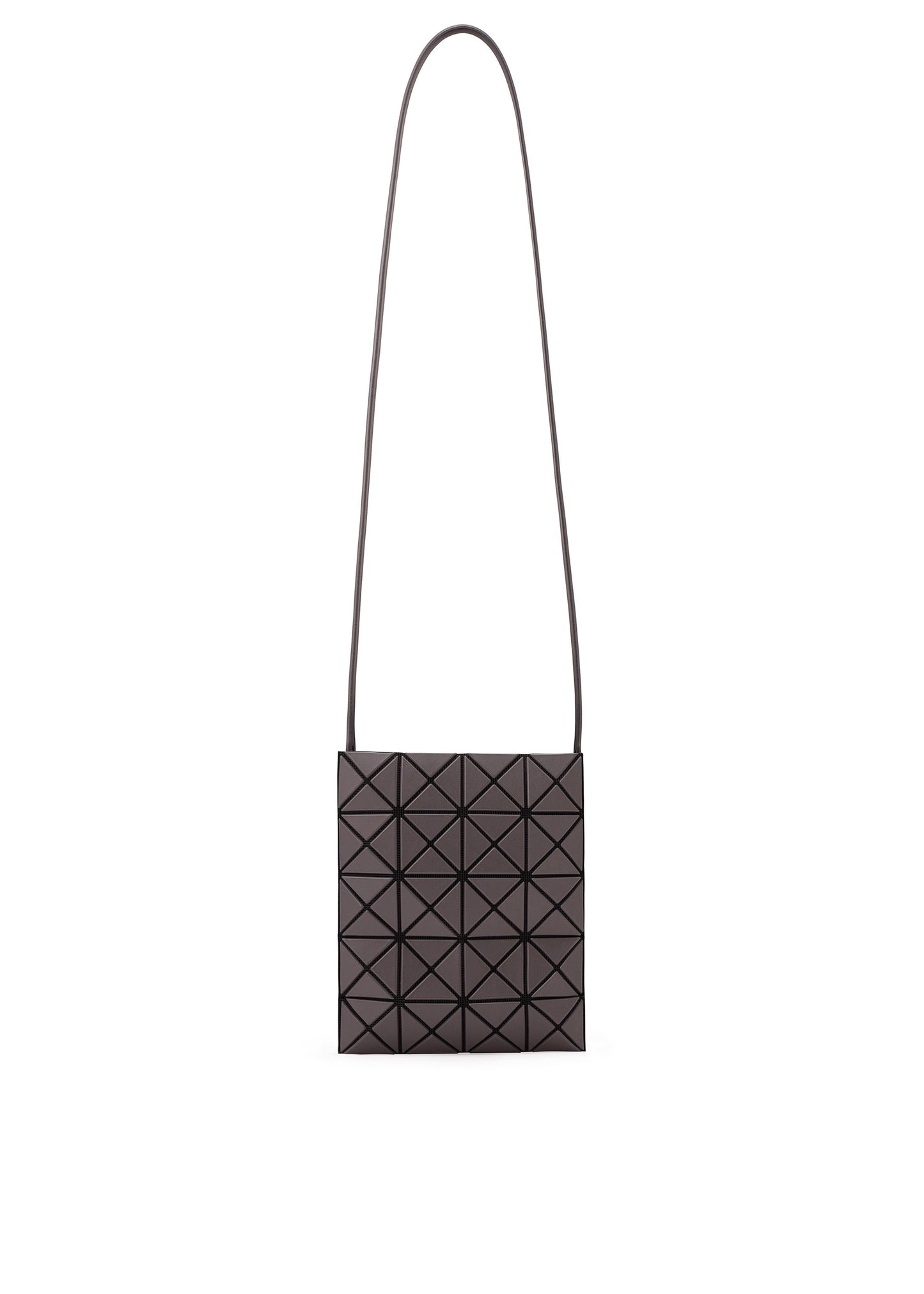 This PRISM series shoulder bag is made from leather-like matte material. The fine triangular pieces and soft sheen give it a subdued feel. It does not lose its shape when items are placed inside due to the gussets on the sides and bottom, and it can snugly hold everyday items despite its compactness.
