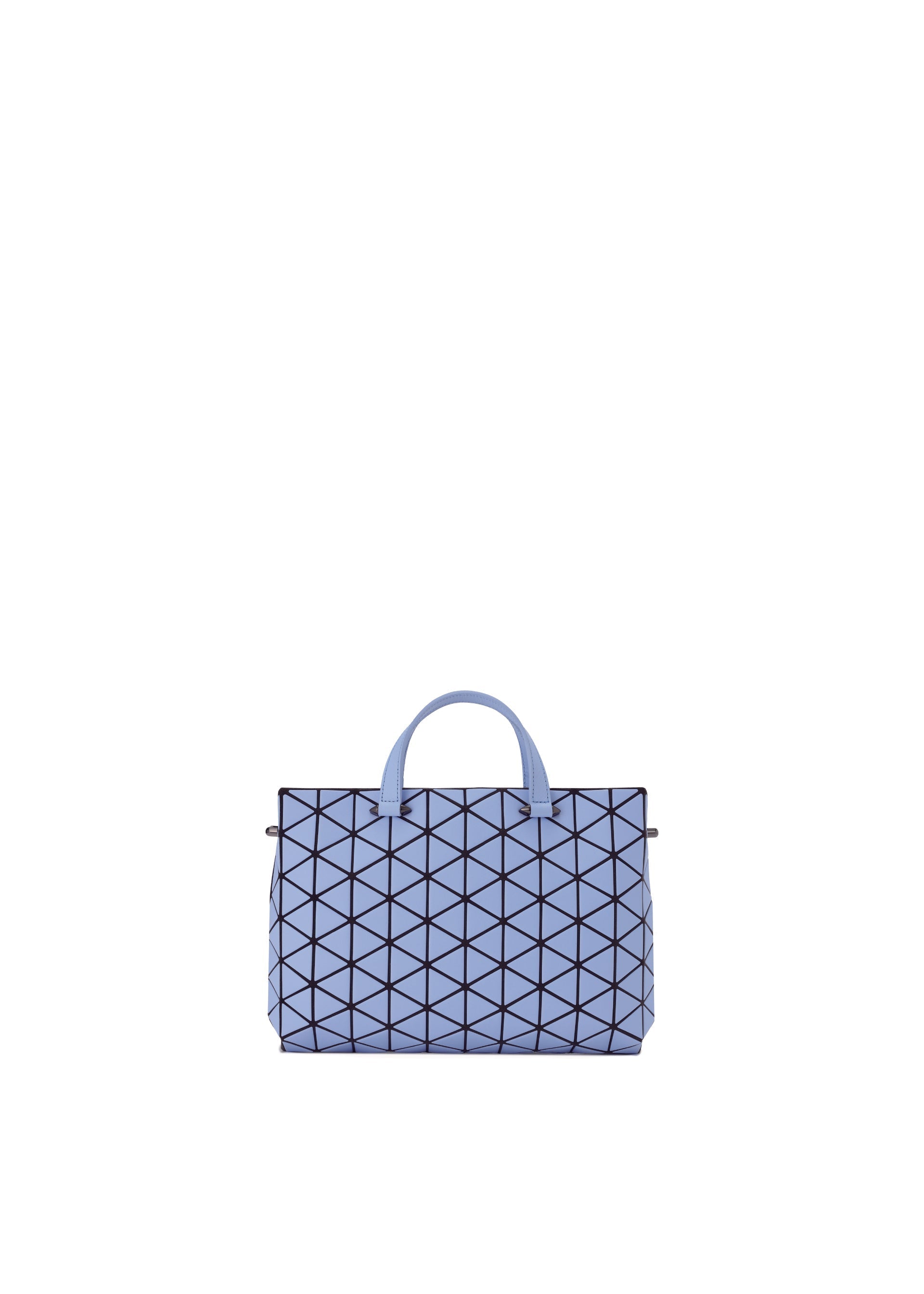This mini handbag is characterized by its shape resembling a barrel (tonneau in French) composed of equilateral triangle pieces. The use of a leather-like matte material gives it an elegant feel. The strap is removable.
