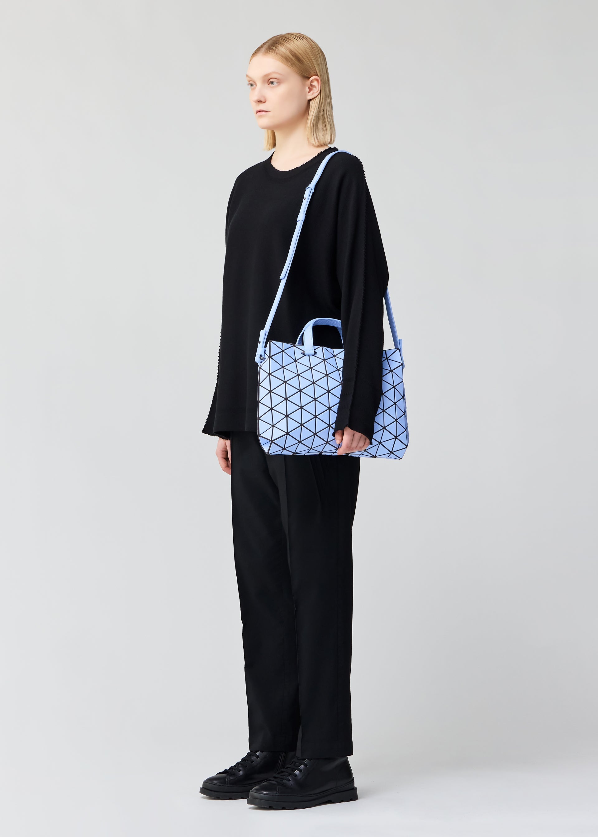 This handbag is characterized by its shape resembling a barrel (tonneau in French) composed of equilateral triangle pieces. The use of a leather-like matte material gives it an elegant feel. The strap is removable. It can be used for wide-ranging situations as it can hold A4-size documents.