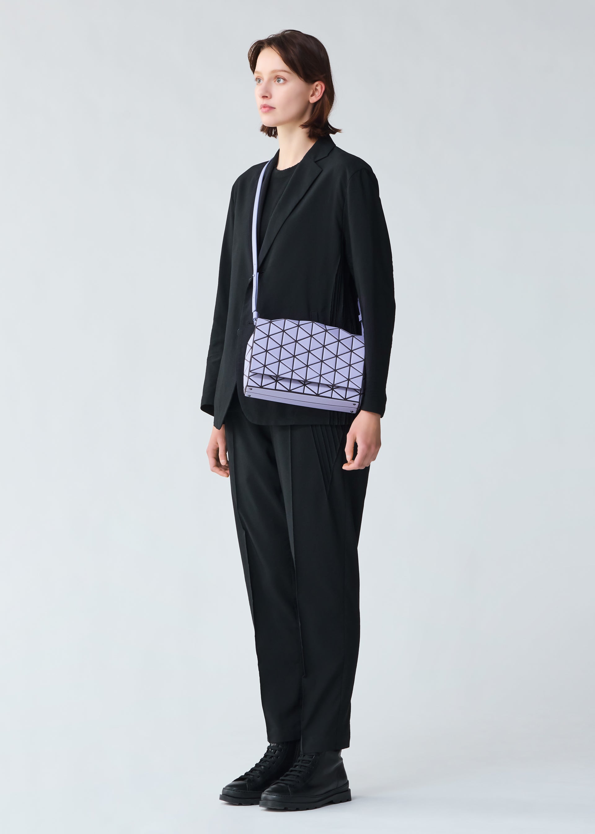 The FOSSETTE series is characterized by its dimple-like shape, with side gussets that collapse to form a three-dimensional pentagon. Featuring a simple boxy shape, it has an external pocket on the back, making it convenient for storing frequently accessed small items. The magnetic closure at the opening is angled to make it easy to open and close. It has a two-way design with two straps of different lengths, enabling it to be used as a handbag or cross-body bag.