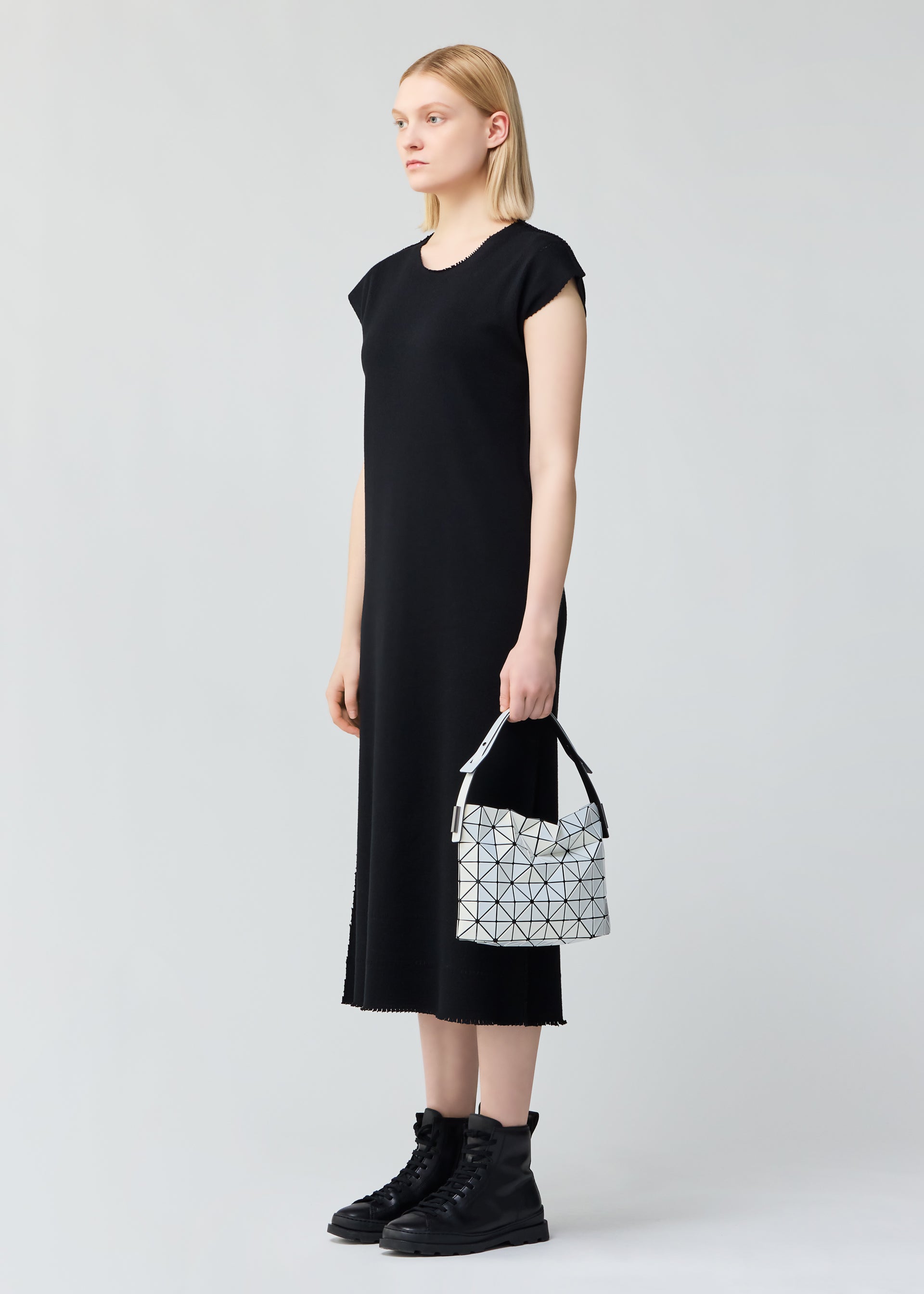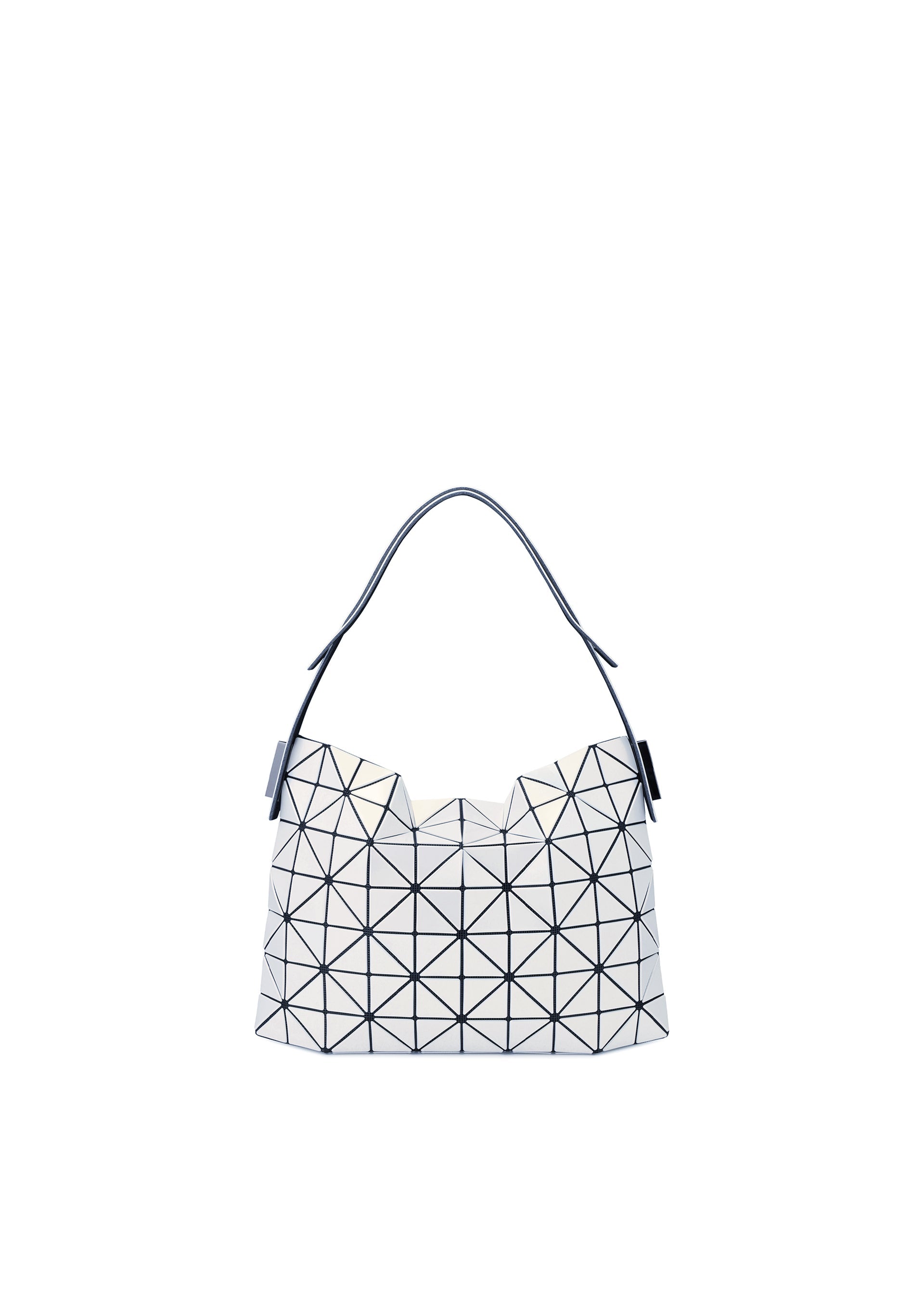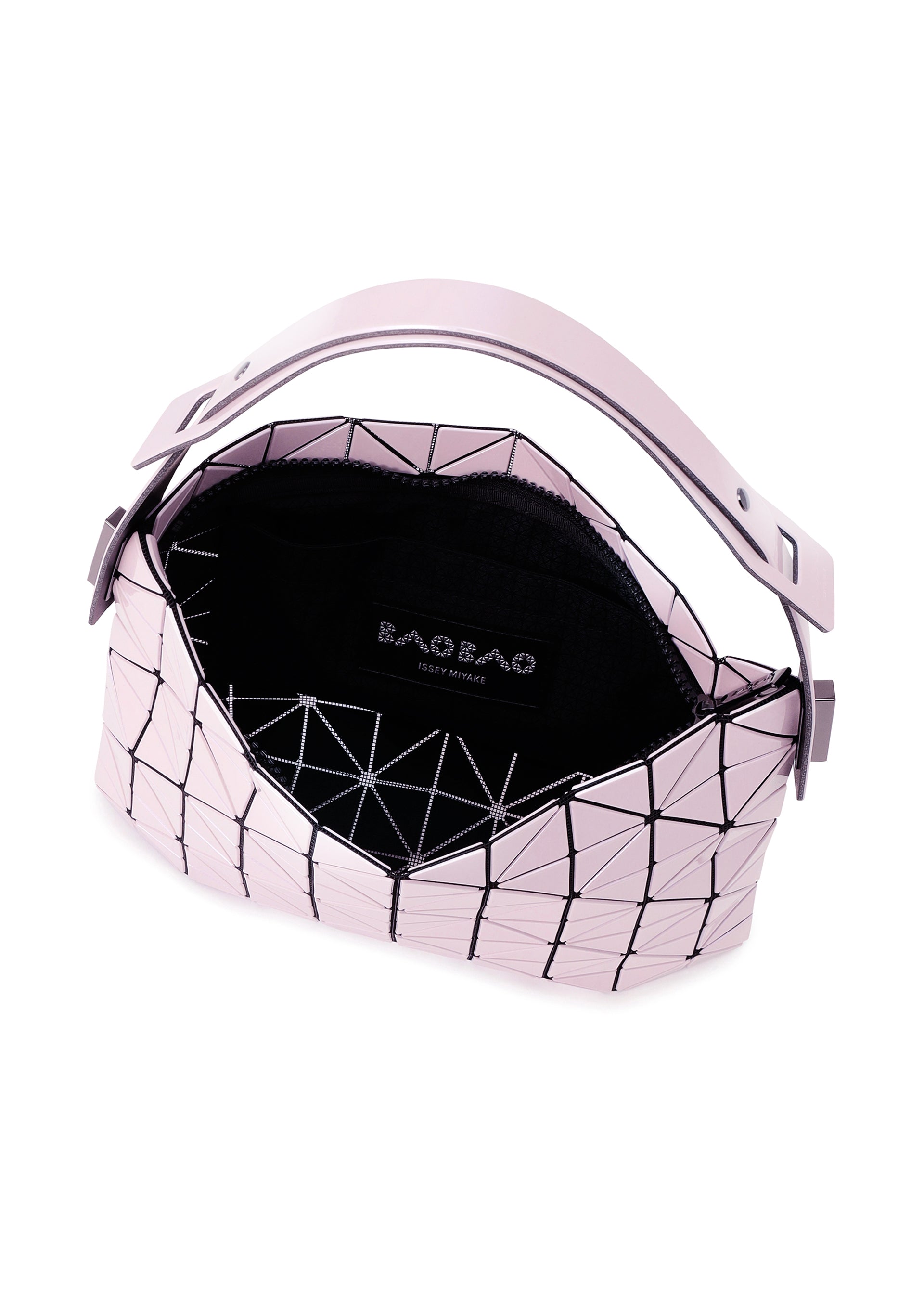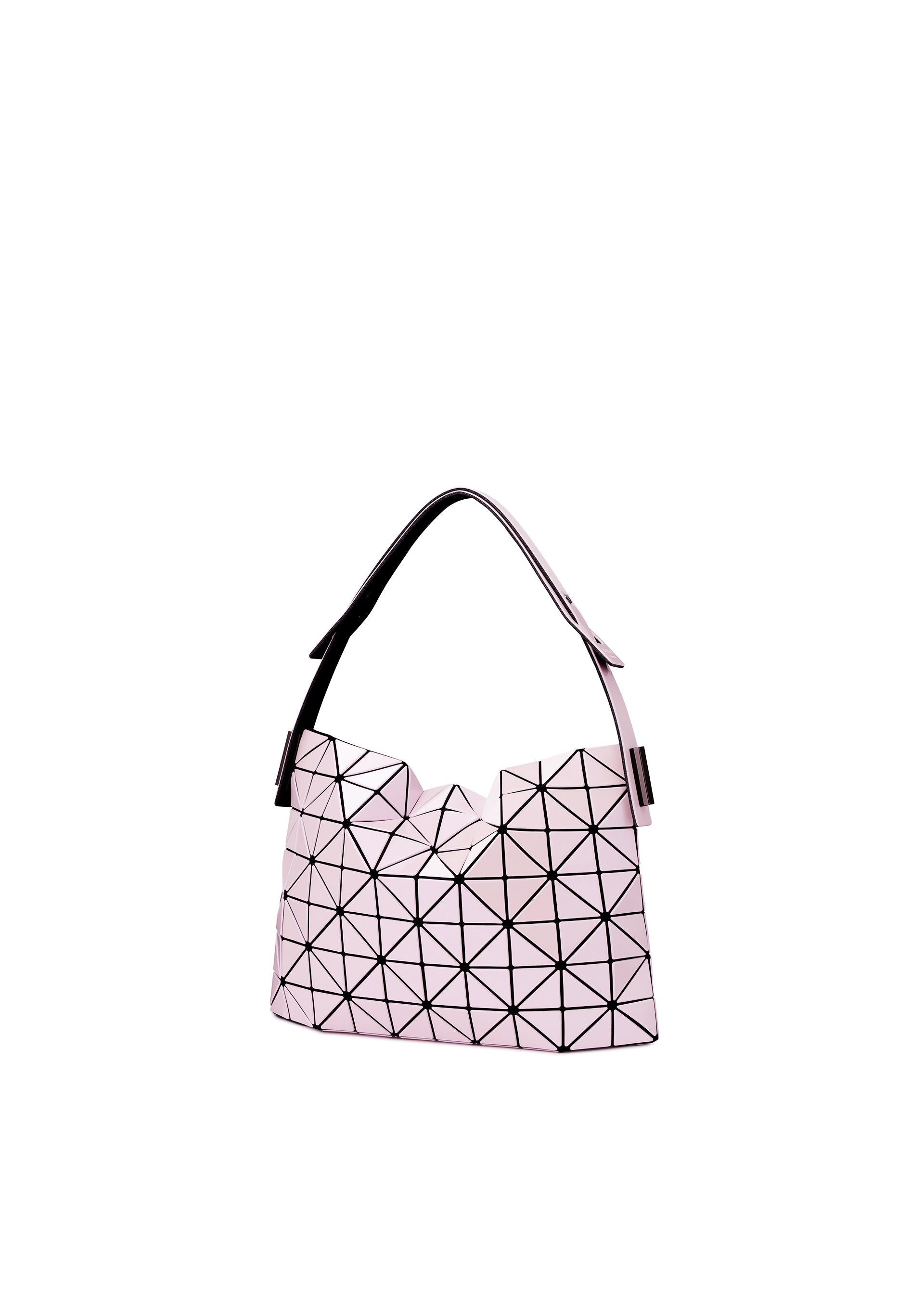 This handbag series features small triangular pieces that delicately shine like jewels. The bag can be carried quickly under your arm like a baguette, and can be styled with a wide range of outfits for everything from casual occasions to elegant attire. It is available in wondrous pale color tones that change color depending on the viewing angle.
