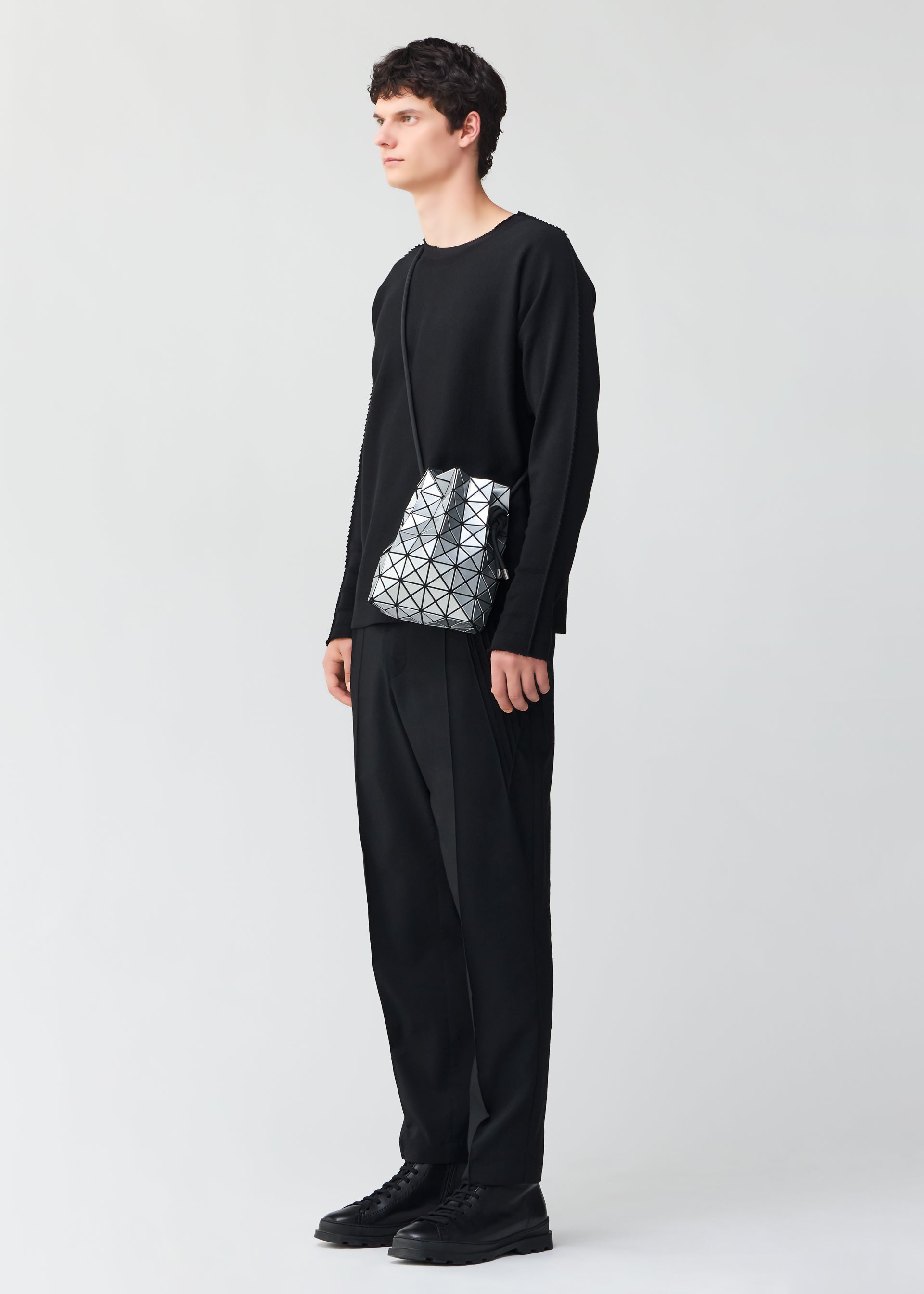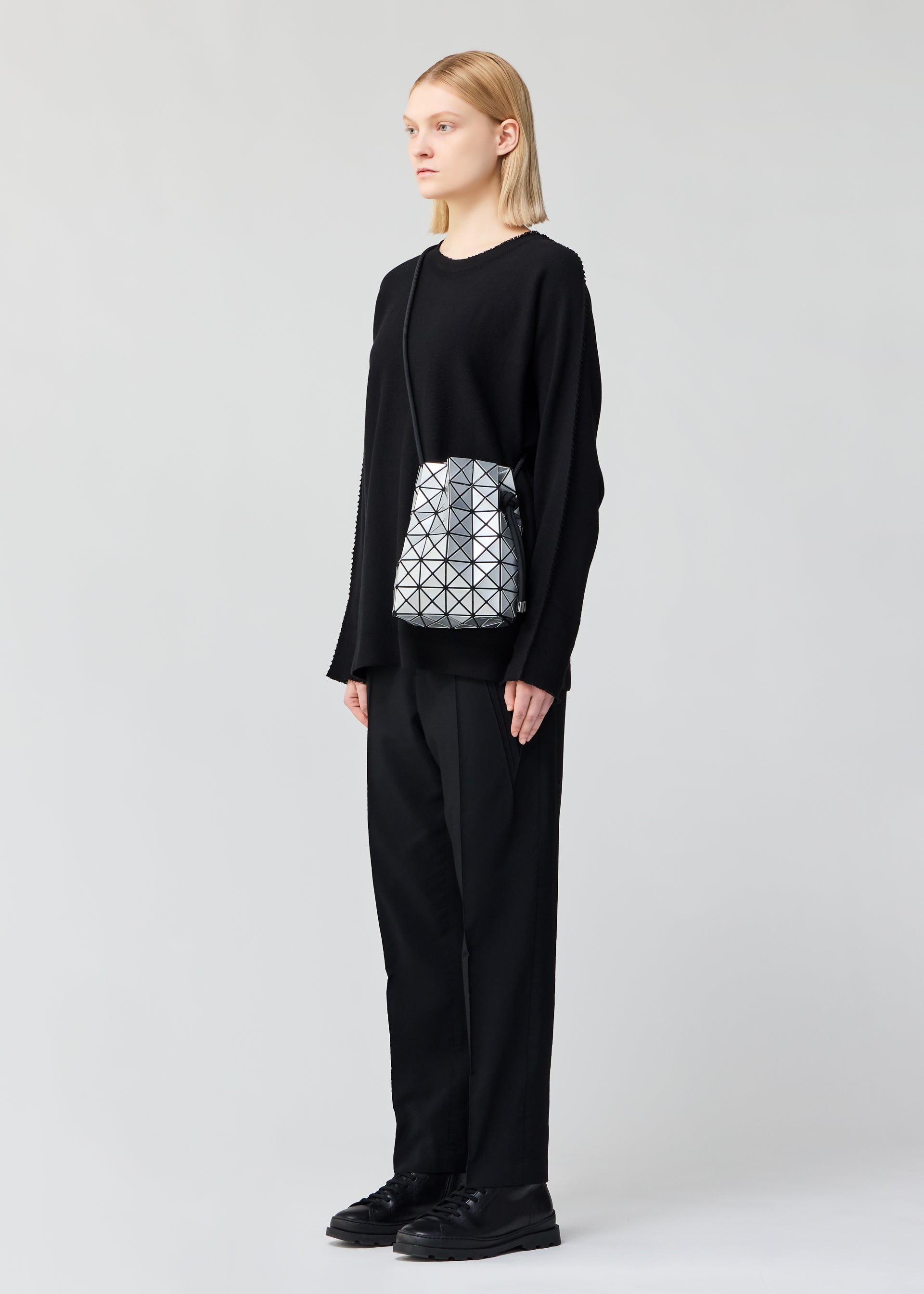 A shoulder bag with a drawstring bag motif. When you squeeze the string, it becomes three-dimensional, and the enamel material reflects light, creating a rich expression. You can enjoy carrying it in two ways: by using a single string, you can use it as a crossbody bag, and by using double strings, you can use it as a shoulder bag. It can store pouches, wallets, and 500ml plastic bottles.