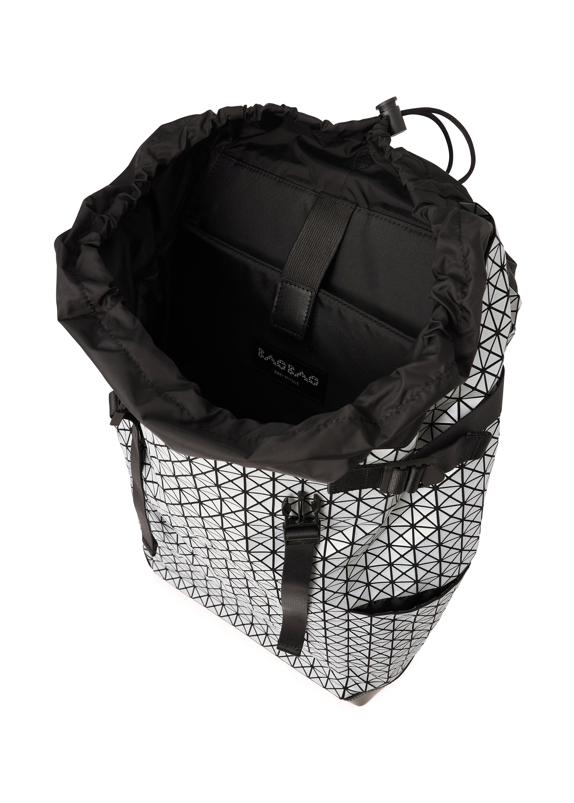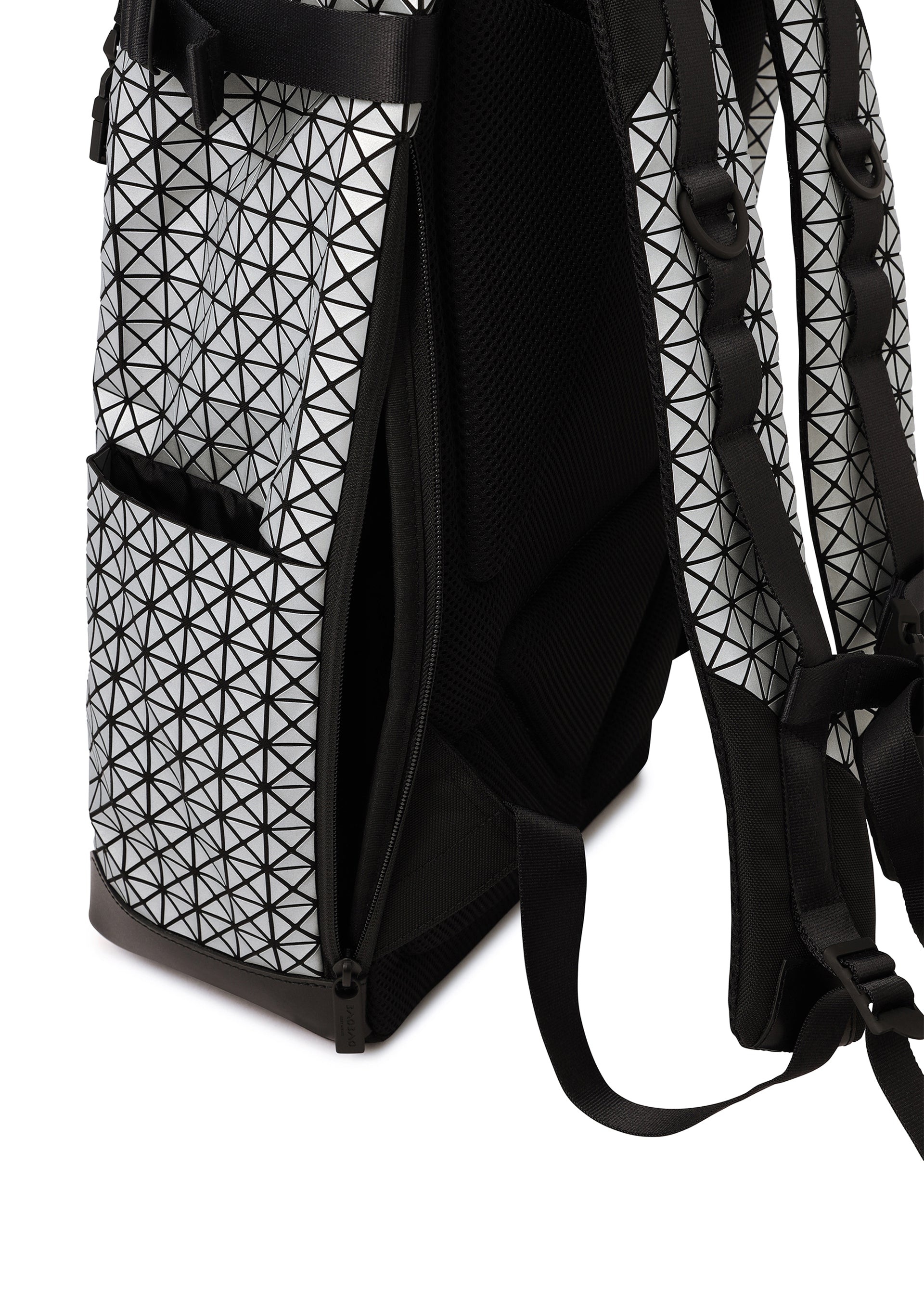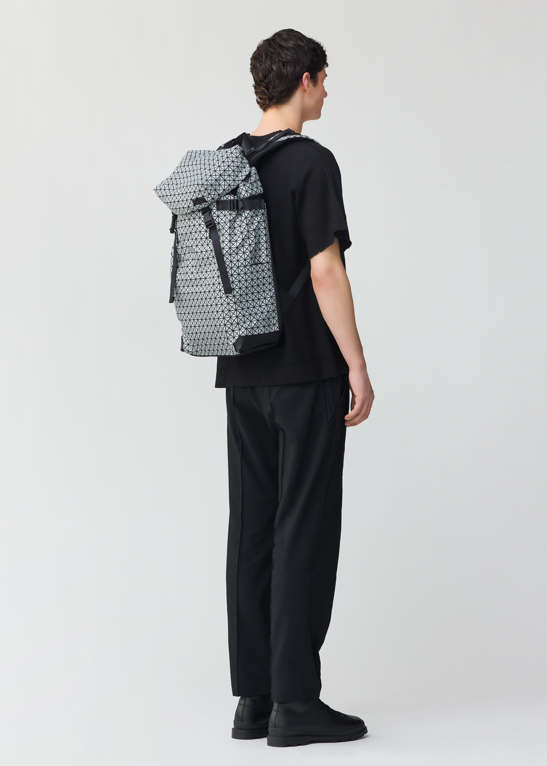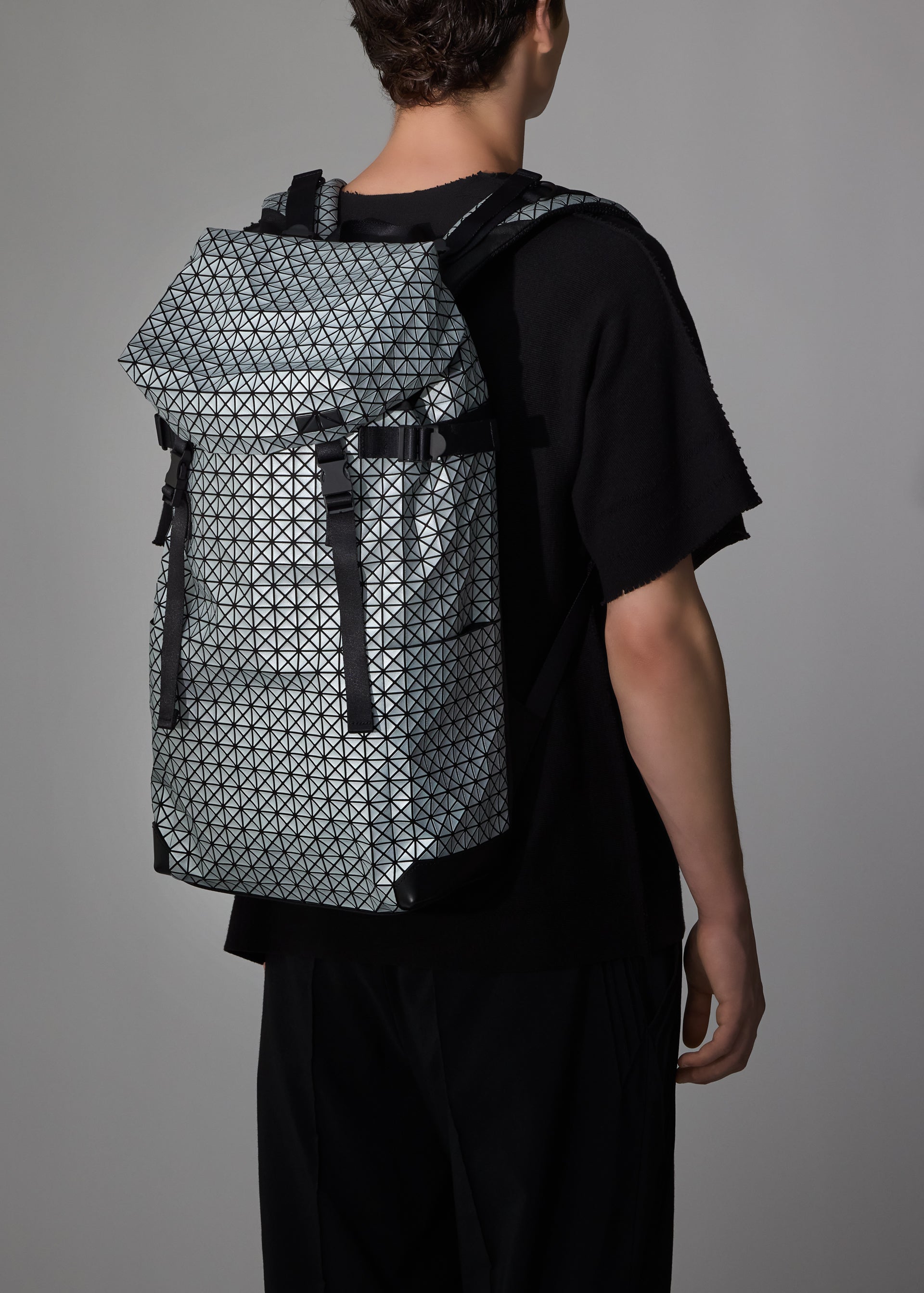This KURO series backpack is characterized by its fine, supple pieces. This series uses reflective material for the triangular pieces. When light hits the bag in the dark, its entire three-dimensional surface reflects the light. The metallic look of the material is apparent in bright places. It is convenient not only for daily use, but also for travel and other occasions when you have a lot of items. The top of the bag has a flap that doubles as a pocket to store small items that you want to quickly take out. The inside has a cushioned pocket convenient for storing a laptop or tablet. The bottom corners are made from cowhide leather, providing both a protective function and a luxurious feel.