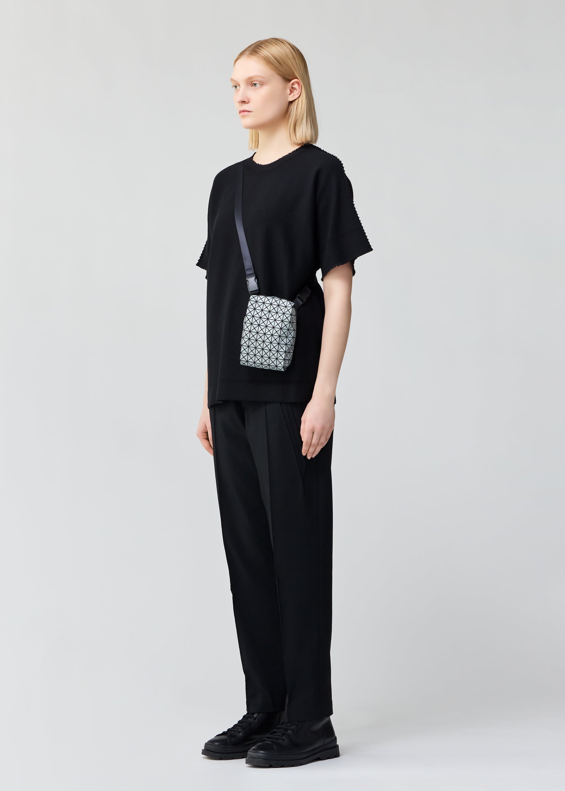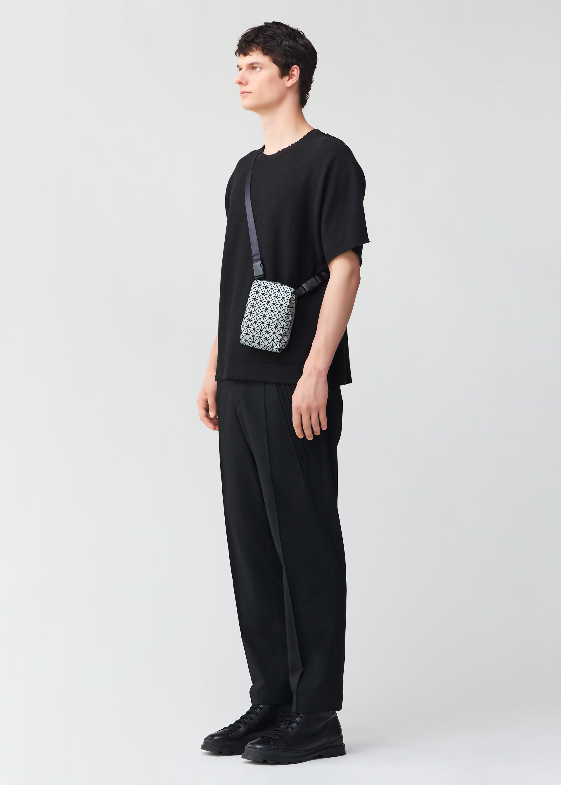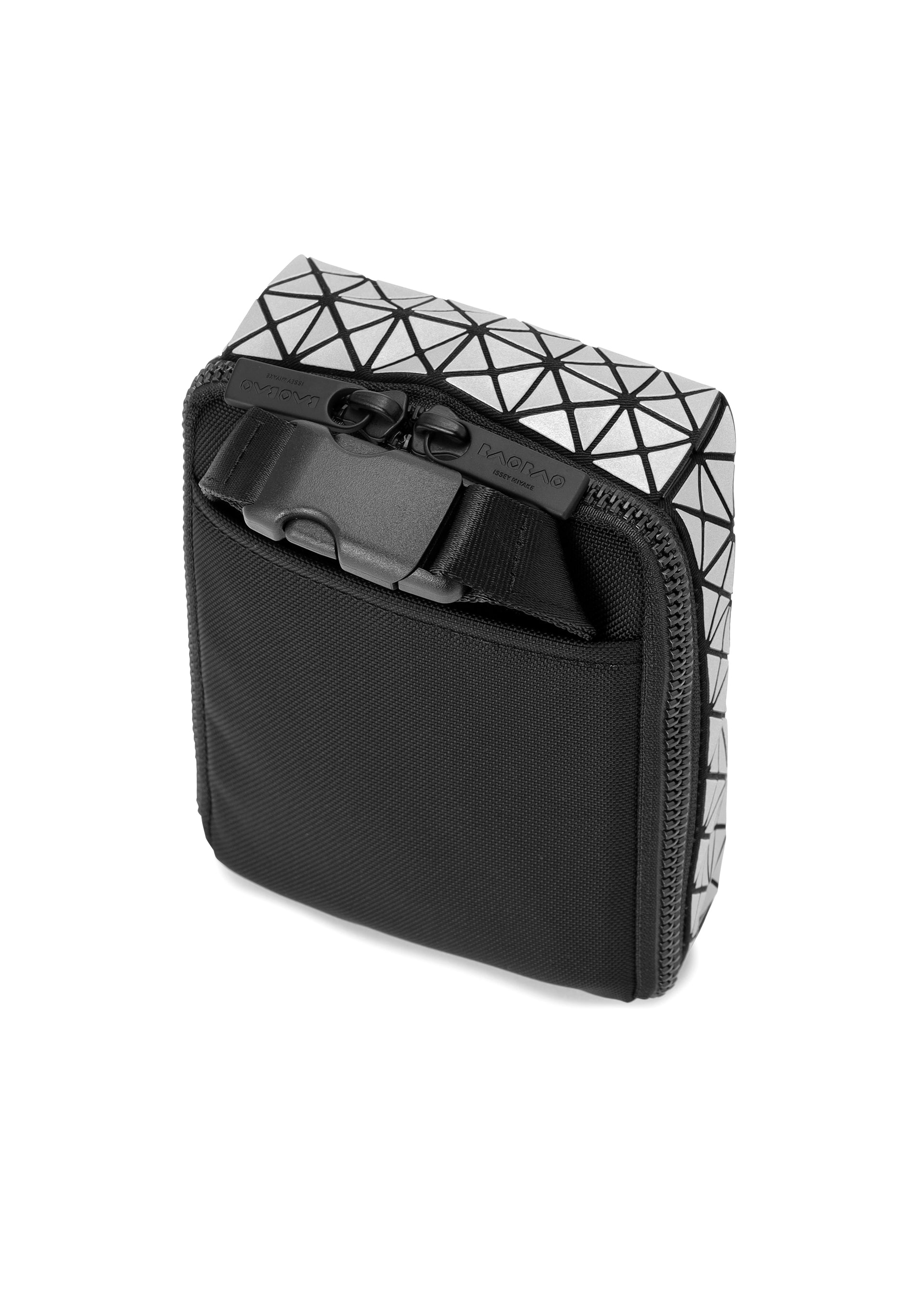 This KURO series multi-style case with a shoulder strap is characterized by its fine, supple pieces. This series uses reflective material for the triangular pieces. When light hits the bag in the dark, its entire three-dimensional surface reflects the light. The metallic look of the material is apparent in bright places. Despite its compact size, it is a highly functional item with a coin case, card slots, and even a removable key holder. It is also recommended for travel, as it can smoothly hold a smartphone and passport.