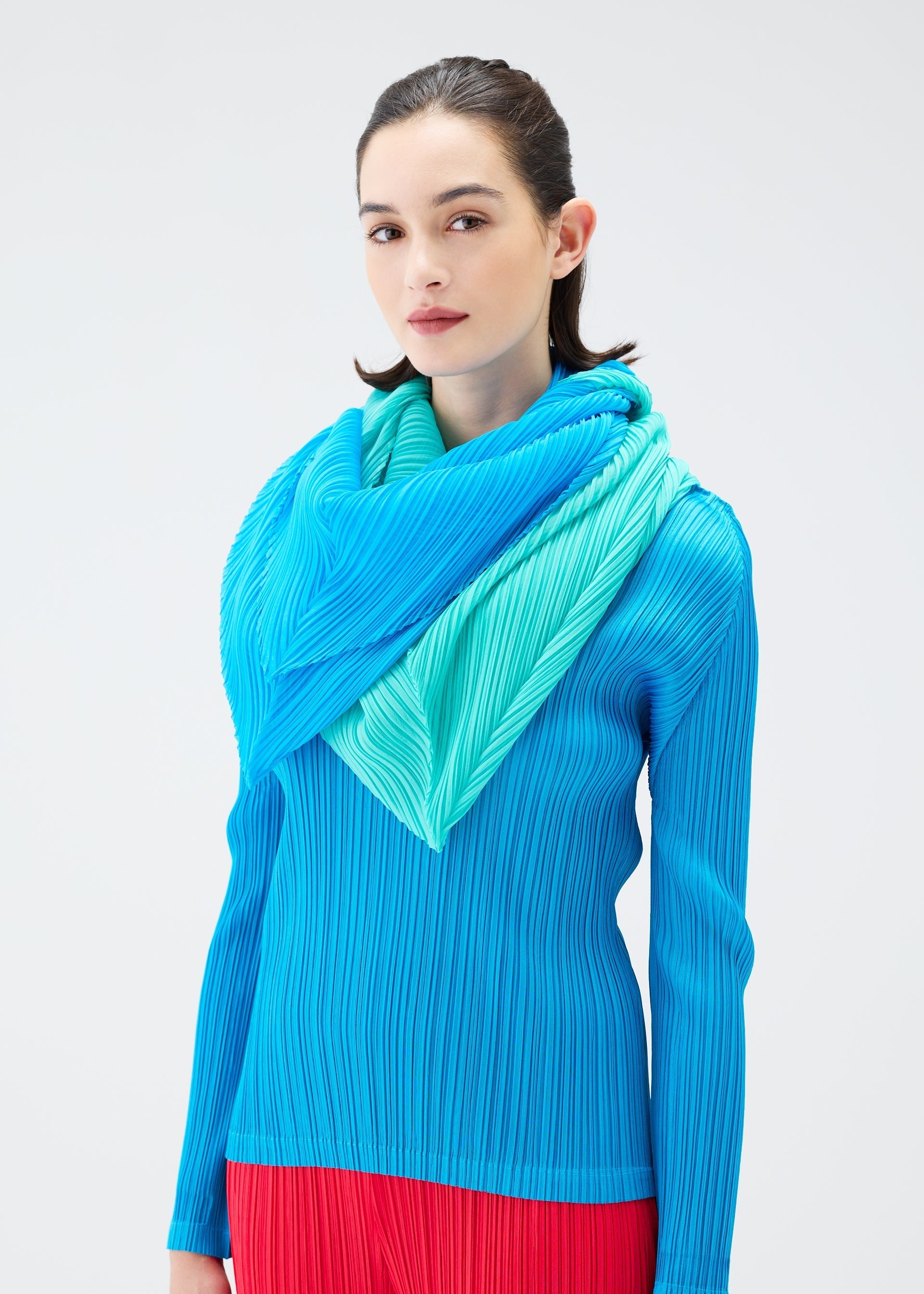 This folding screen-shaped scarf comes in a variety of colorful colors. It can be folded and compactly wrapped around the neck or unfolded and used like a stole.