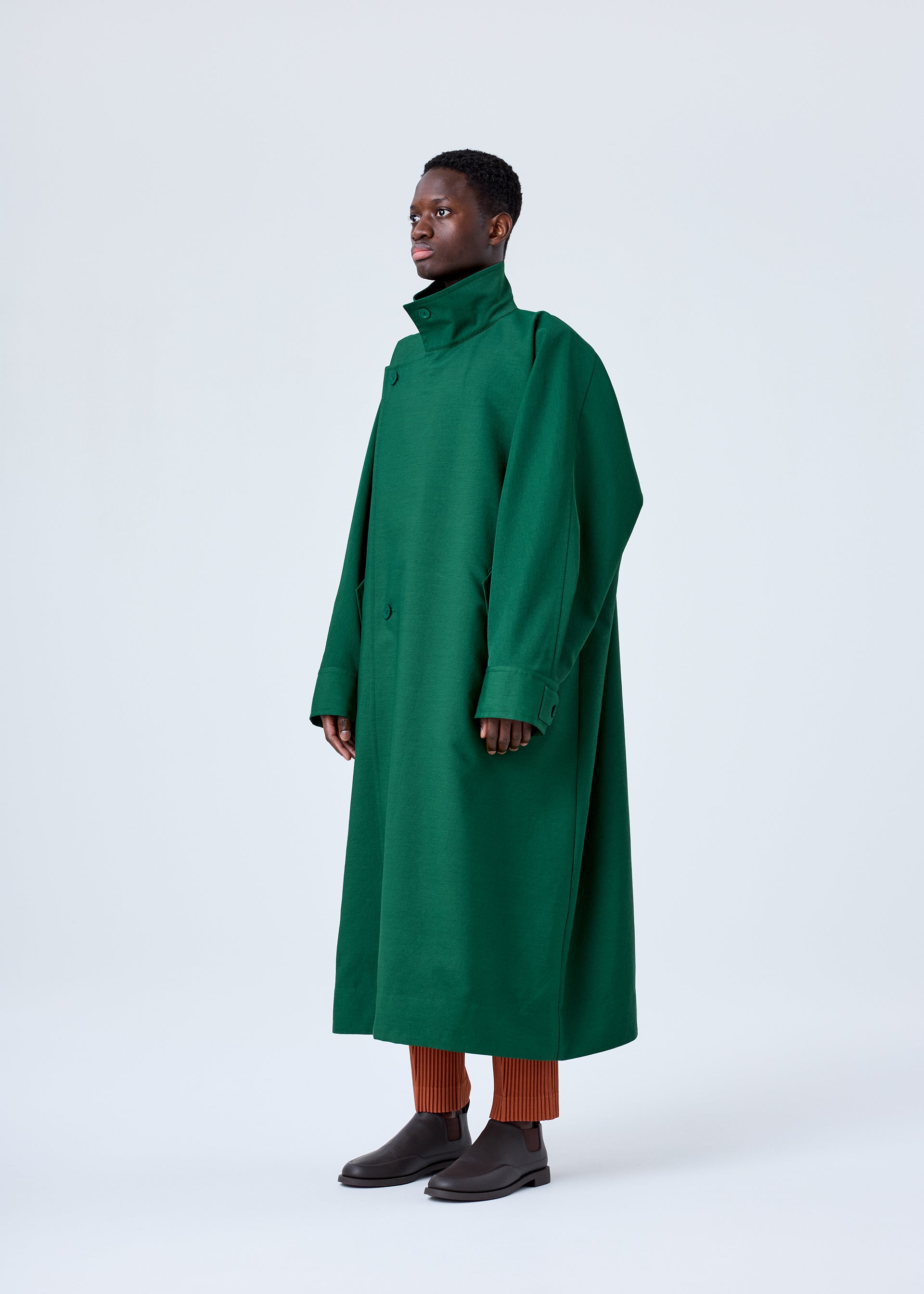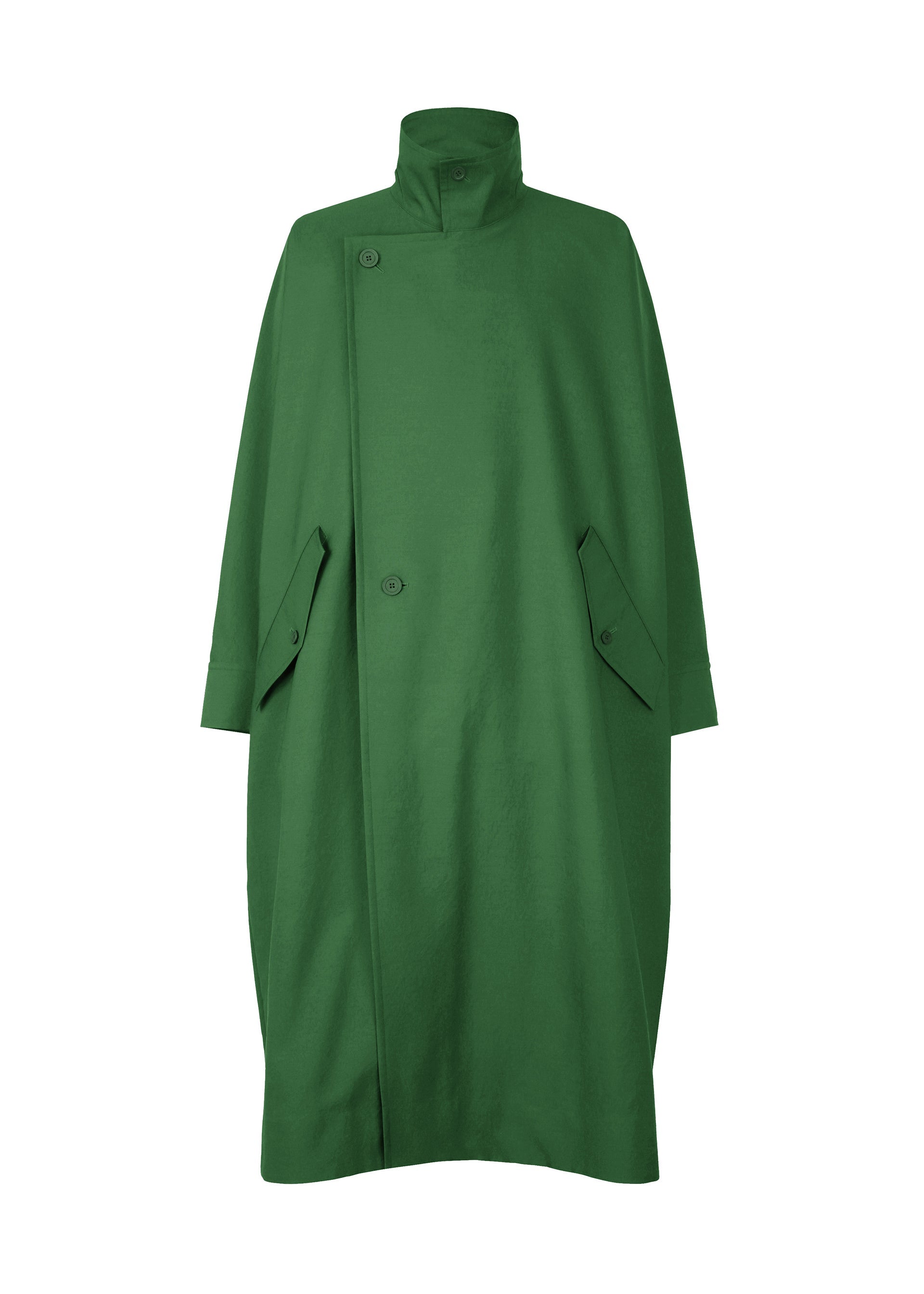 This long coat has an airy, relaxed feel. It is characterized by its natural look despite being made from polyester material. It has pockets on both sides.
