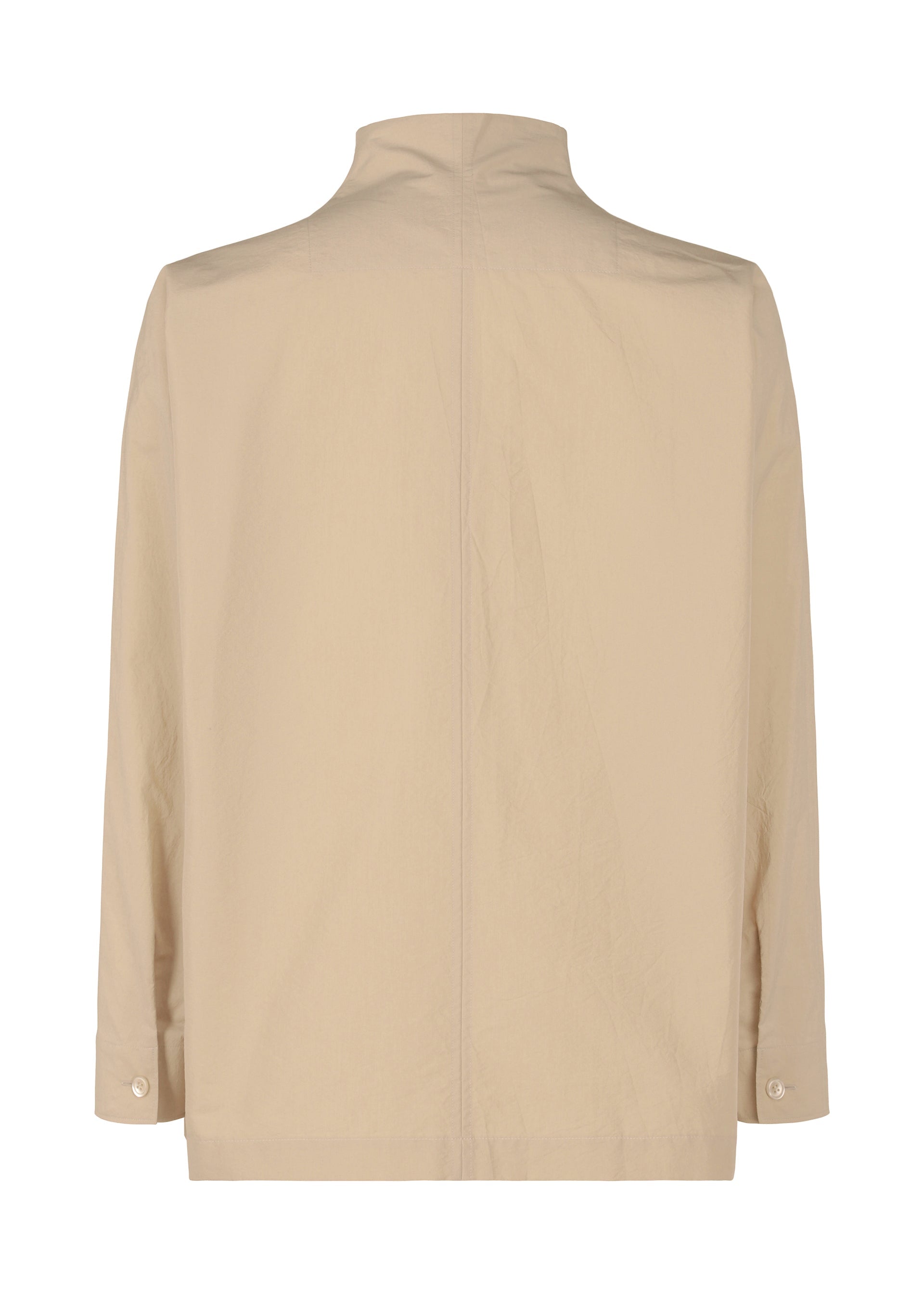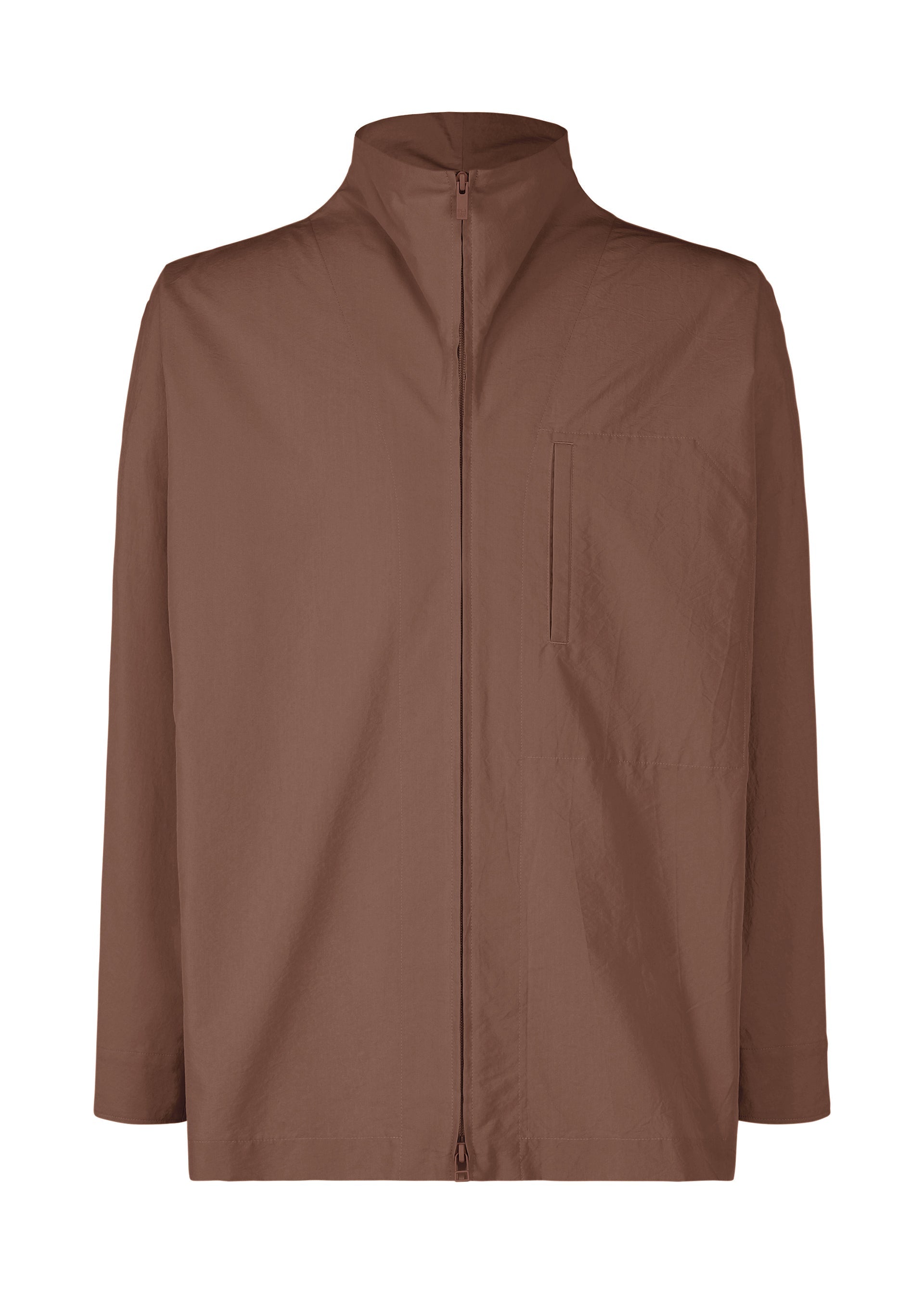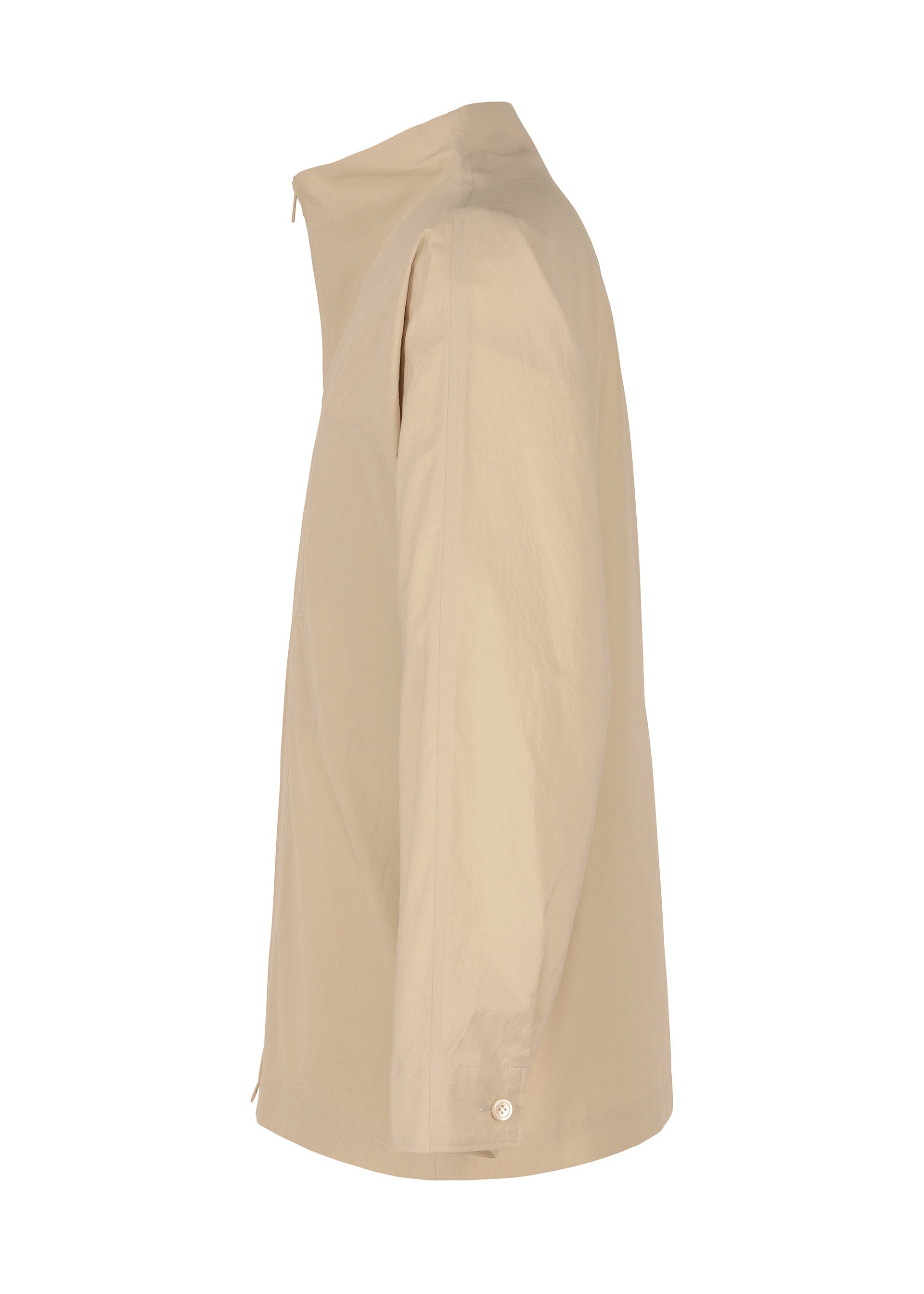This long-sleeved shirt was inspired by the silhouette of a product created by designer/artist Ronan Bouroullec. It is made from cotton-polyester fabric characterized by its natural texture with a sun-dried finish. It has a double-zippered design and a left chest pocket.