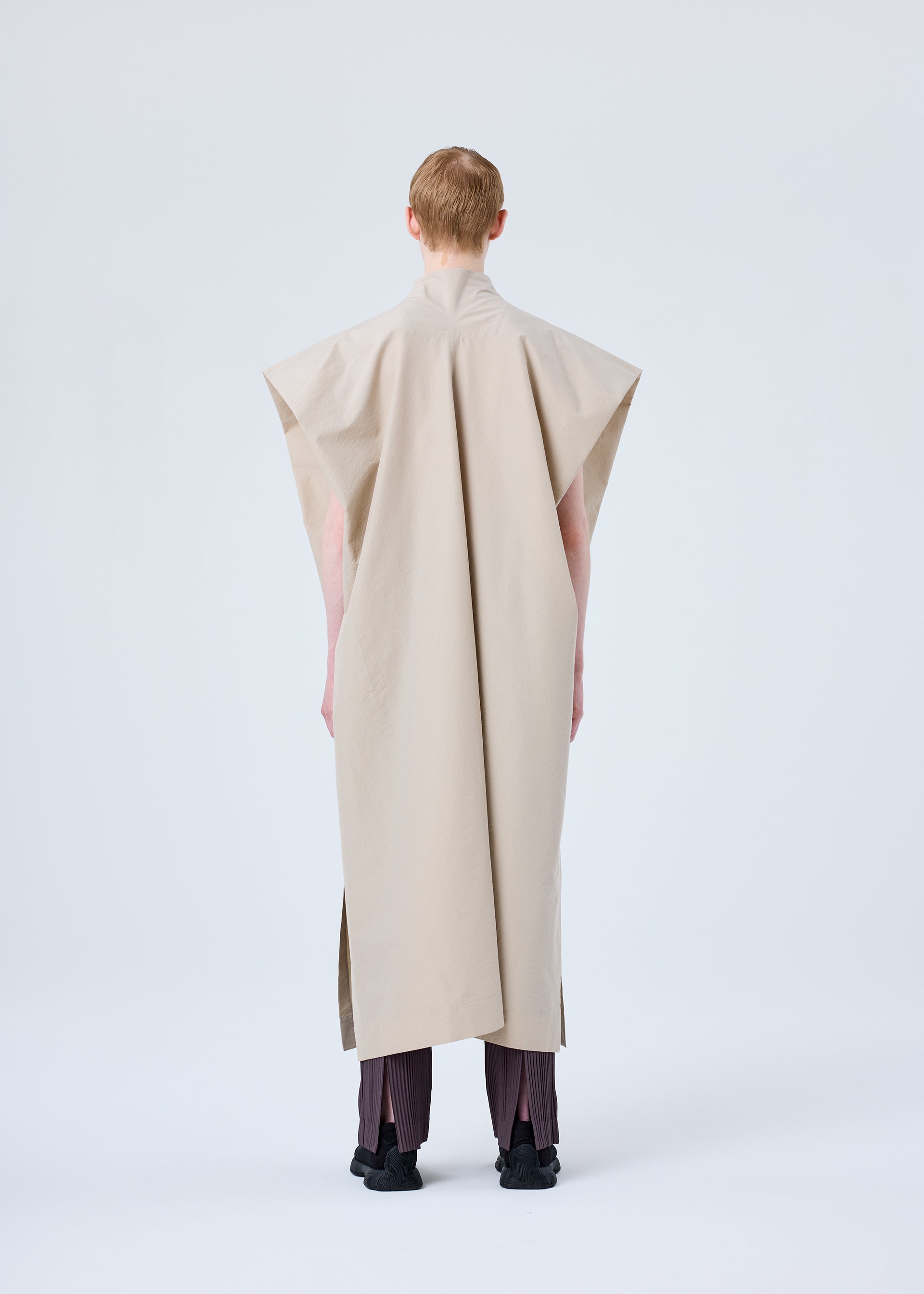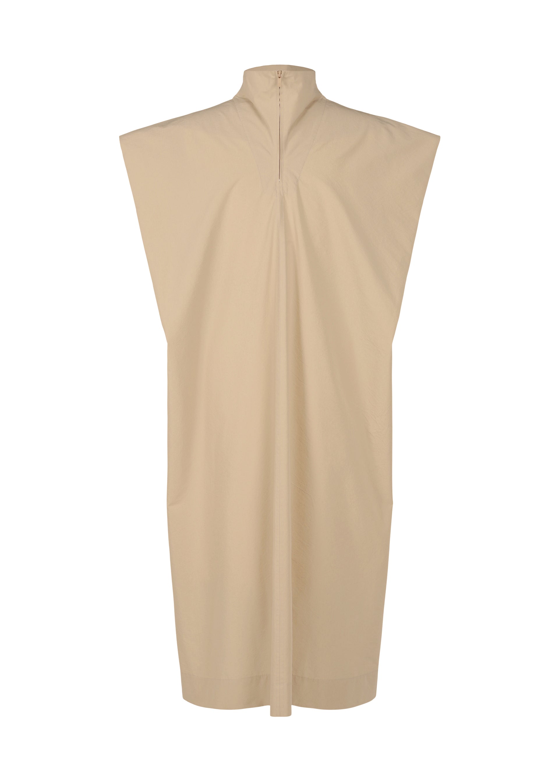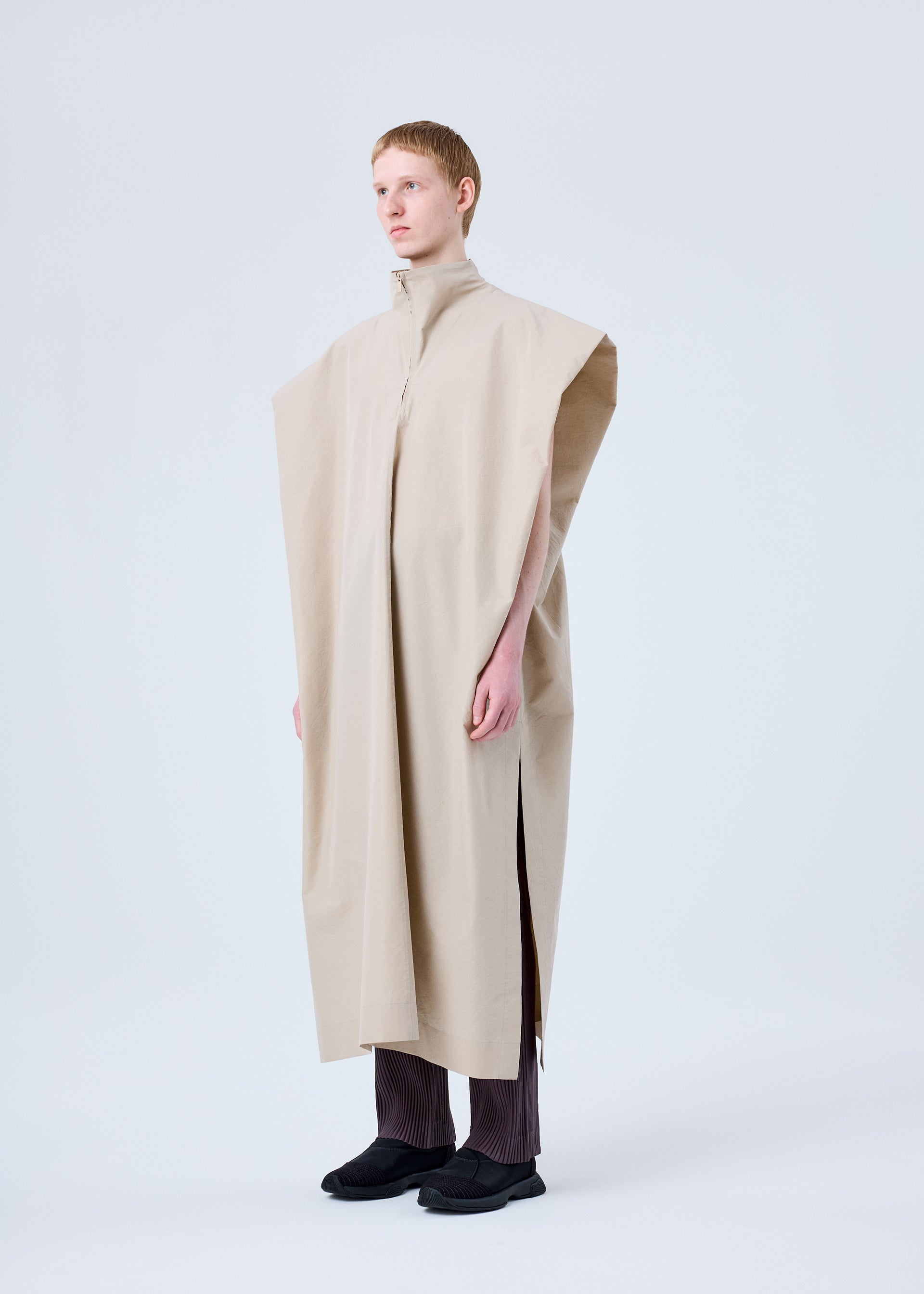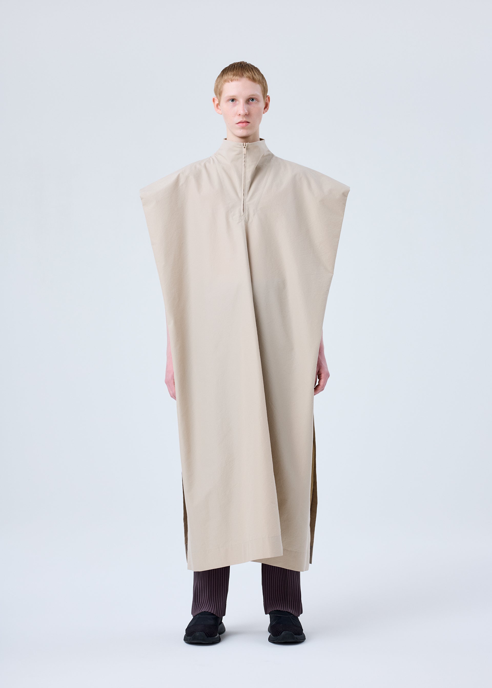 This long shirt was inspired by the silhouette of a product created by designer/artist Ronan Bouroullec. It is made from cotton-polyester fabric characterized by its natural texture with a sun-dried finish. It has a half-zippered design and slits on both sides.