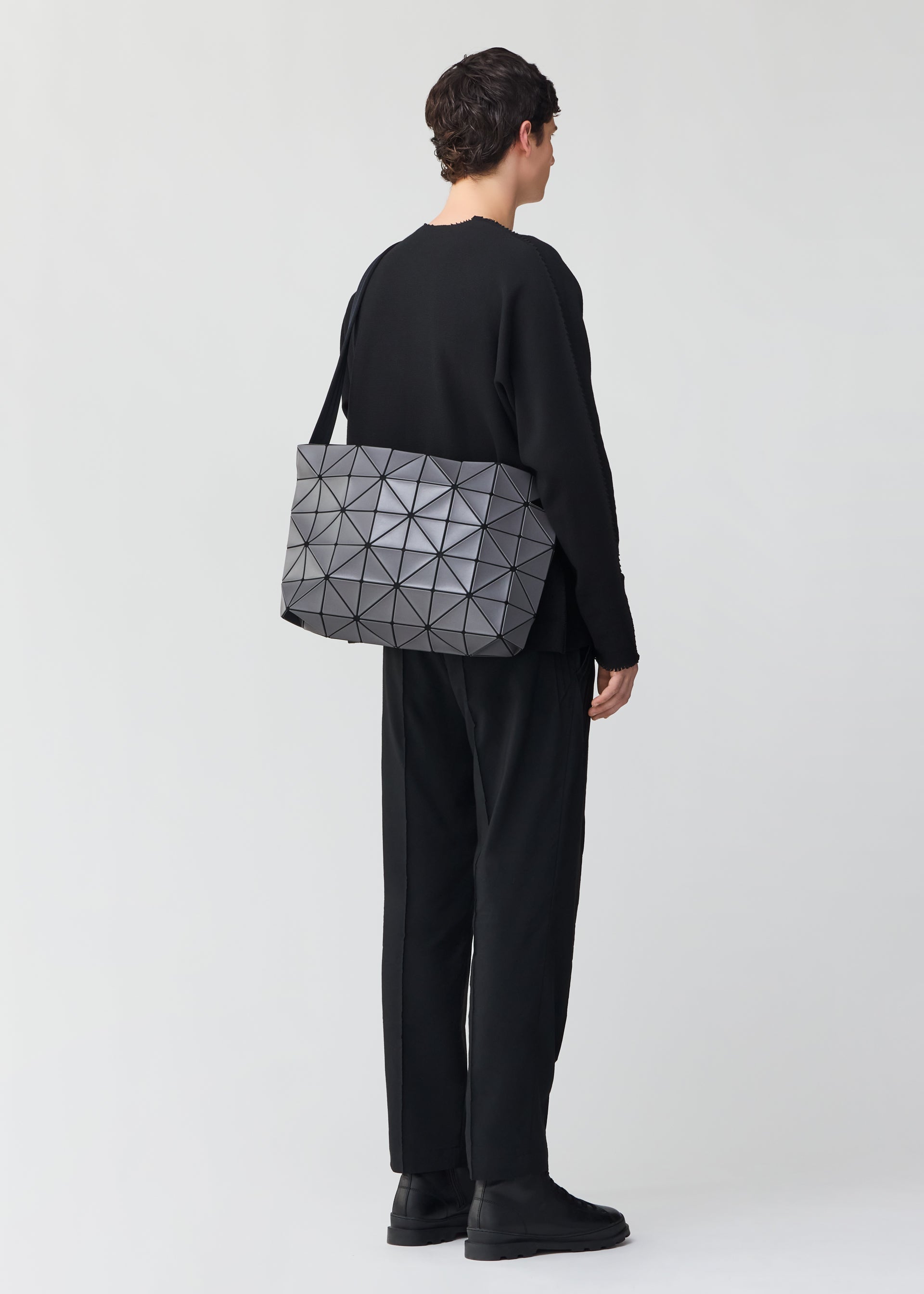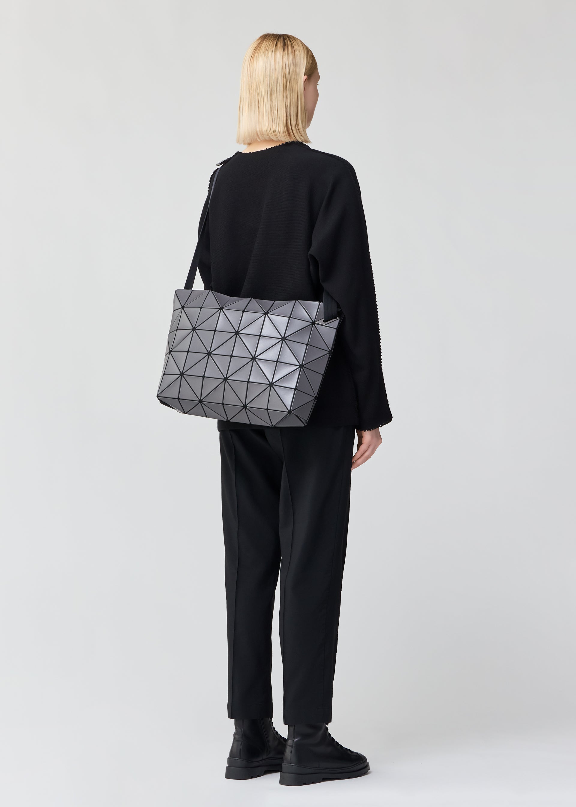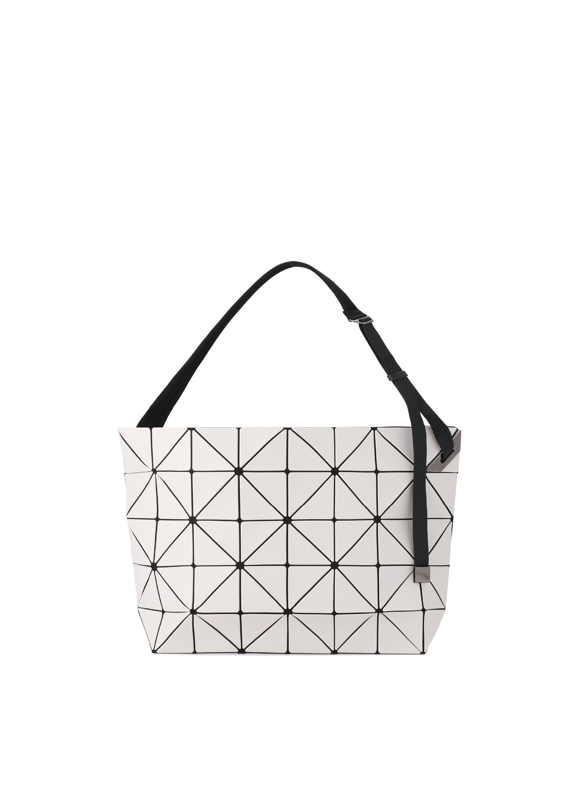 This shoulder bag is characterized by its dynamic, three-dimensional look, made from leather-like matte material and composed of large triangular pieces. It can be hung from one shoulder or across the body by adjusting the strap length. The cushioned strap is ideal for cyclists or active people who are often on the move for work. The bag's size allows it to hold a 13-inch laptop.