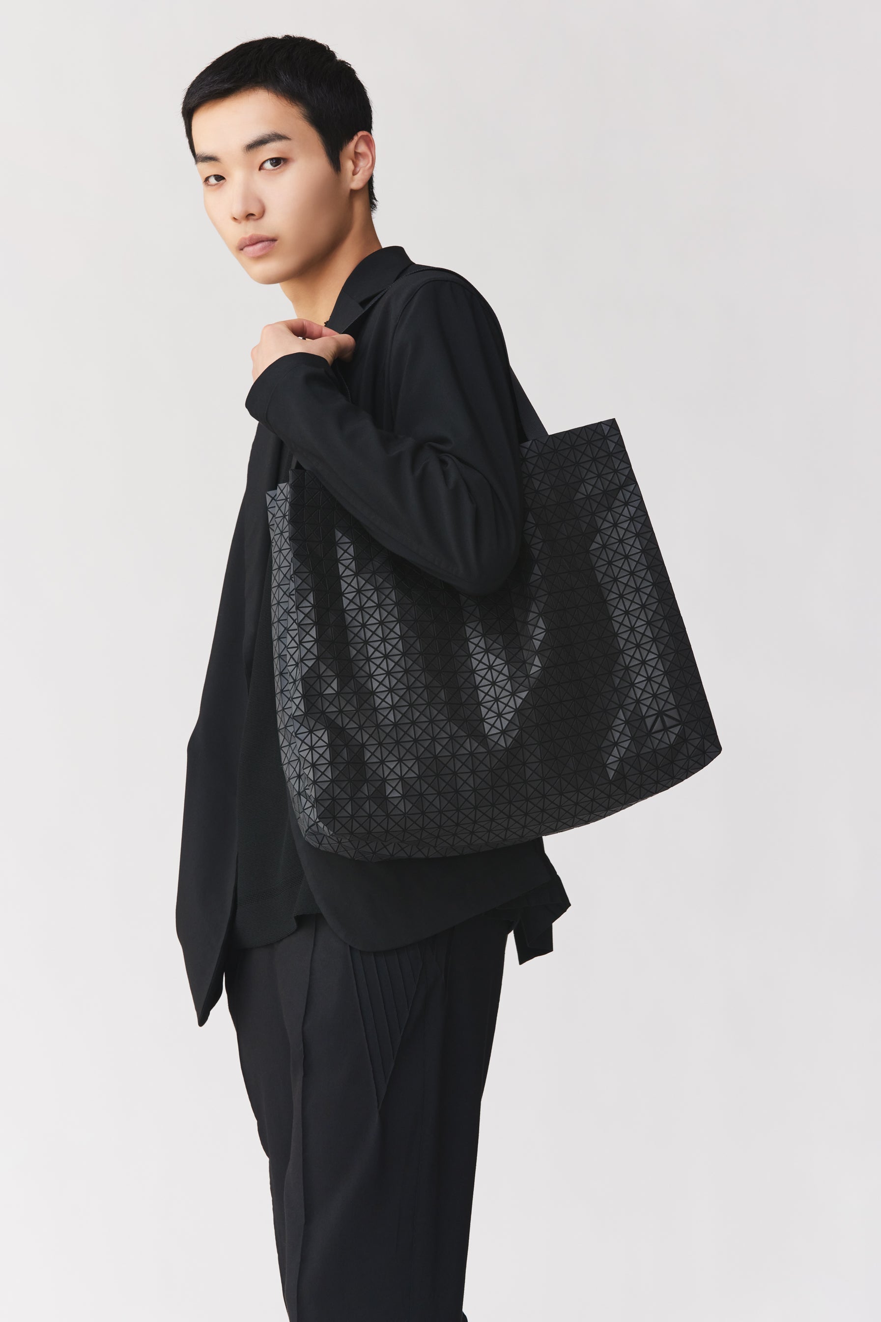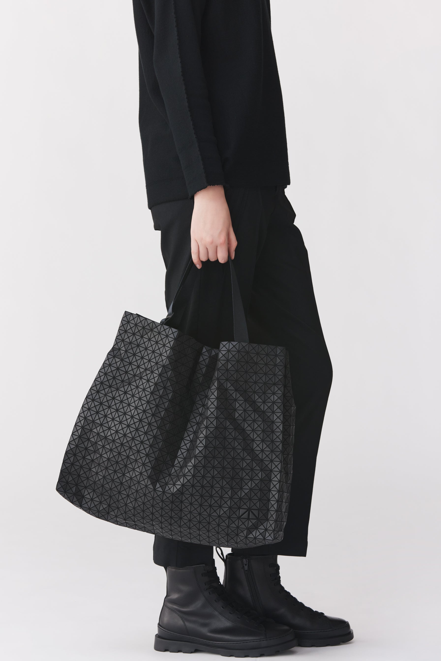 A simple, large-capacity tote bag with a gusset and a handle on the inside.