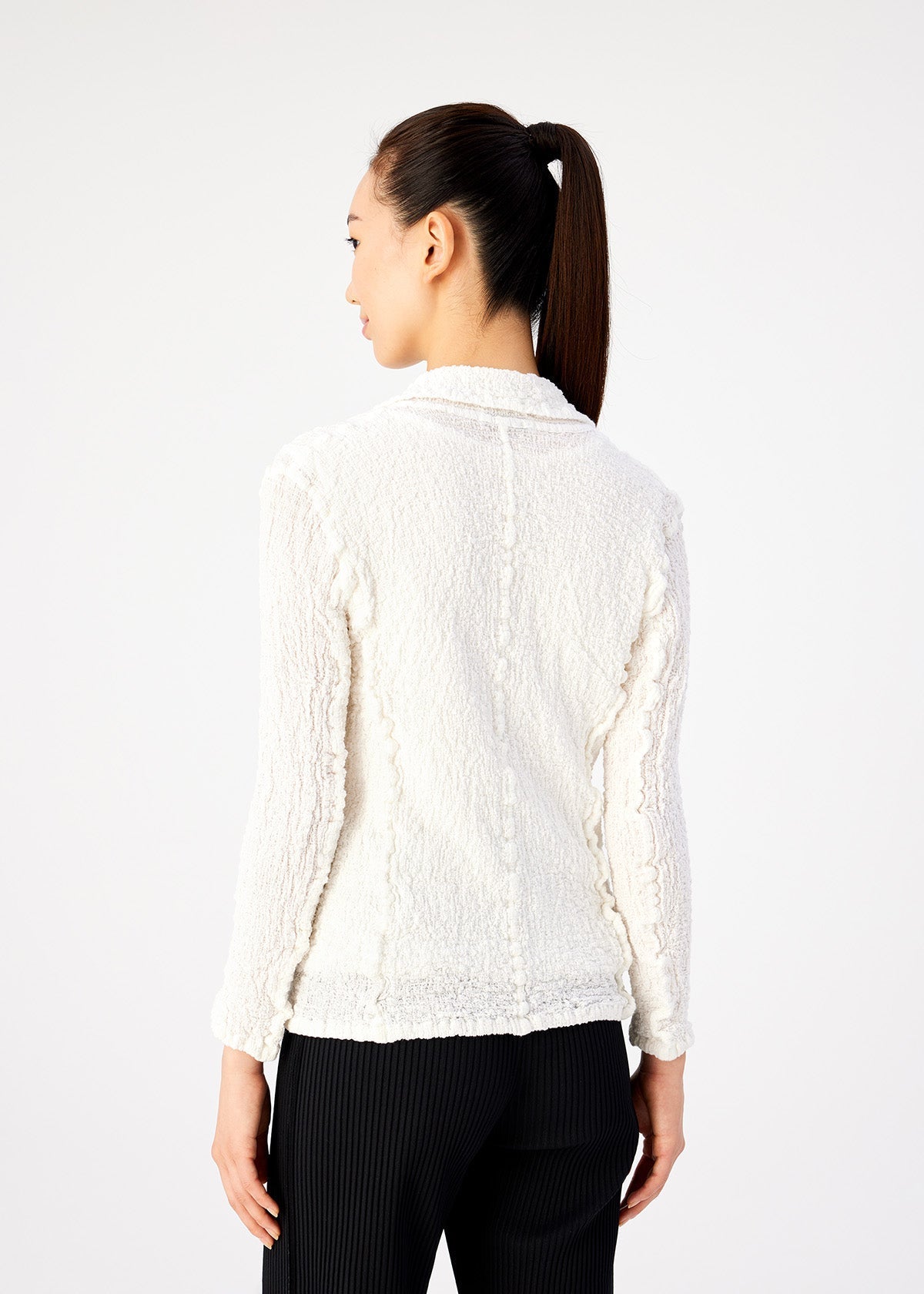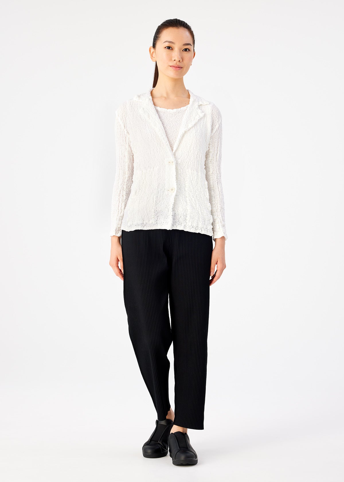A core series, CAULIFLOWER JACKET uses a garment-dye technique that shrinks a polyurethane thread woven into the cotton fabric creating an unique, uneven texture and comfortable fit.