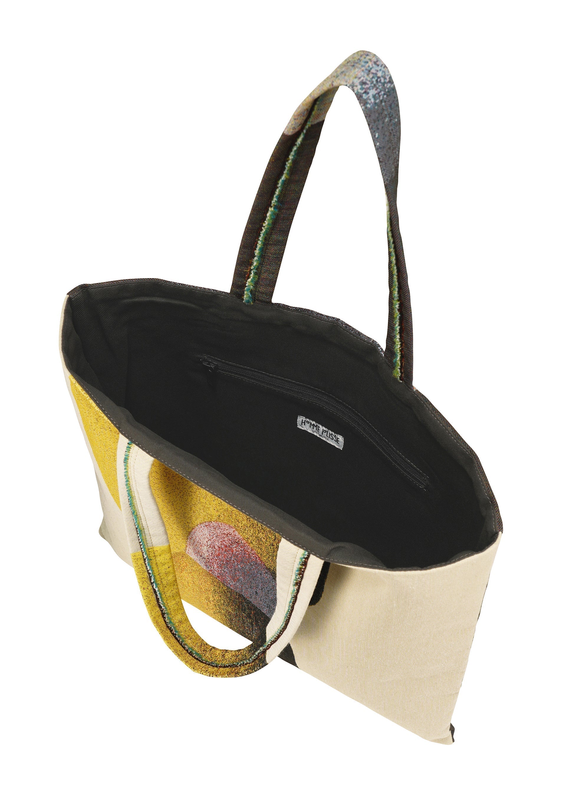 This tote bag faithfully reproduces designer/artist Ronan Bouroullec's "STYLO-BILLE" series drawings. It is designed so that the pattern is on both the front and back, utilizing the serendipitous looks that emerge from the intricate Gobelin weaving process.