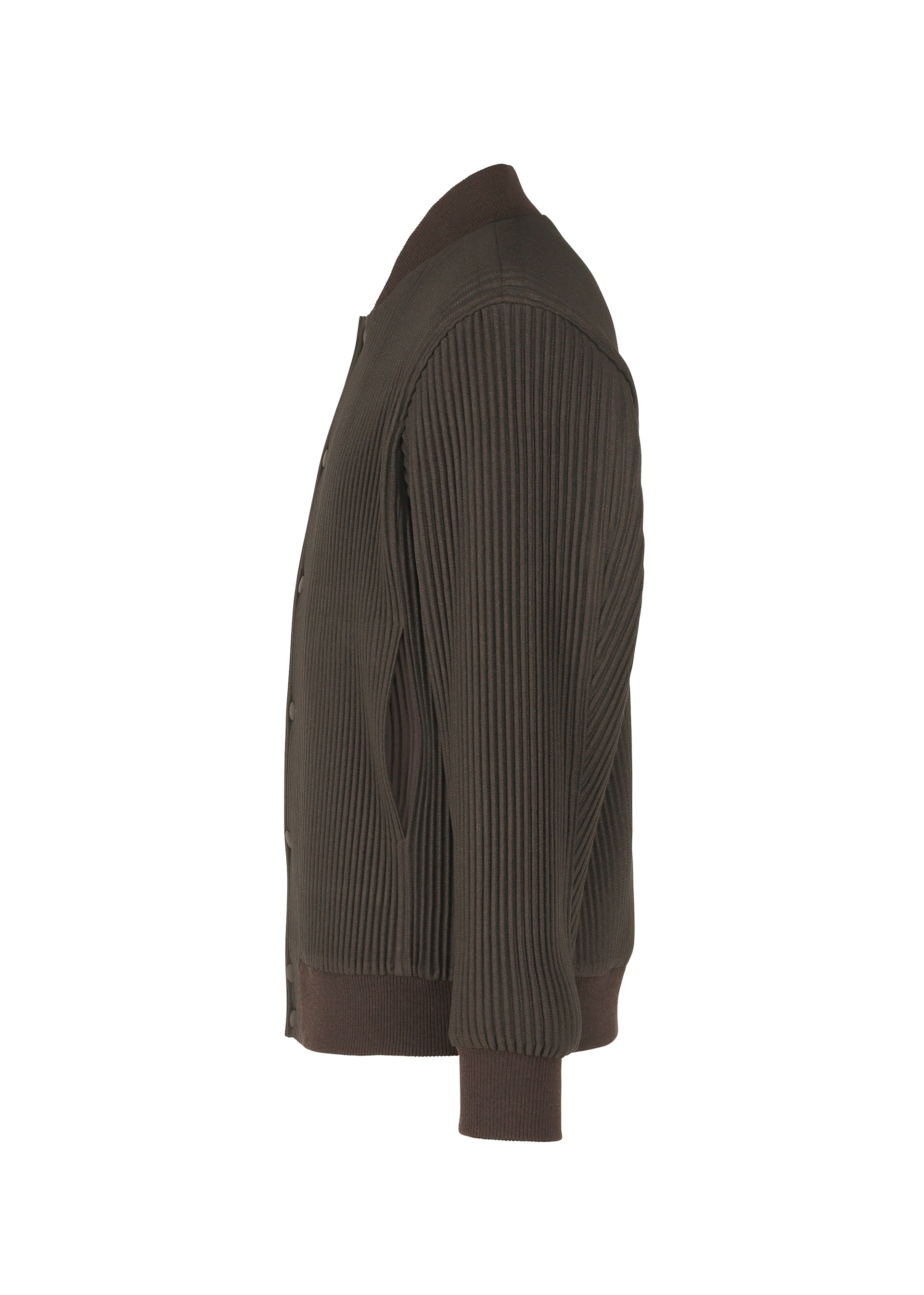 This sutajan jacket (Japanese-style varsity jacket) is made using material that resembles kersey (twill) with three-dimensional, diagonal ribbing. It is characterized by the thin, light feel of the material despite its wool-like fluffiness. There are pockets on both sides and inside.