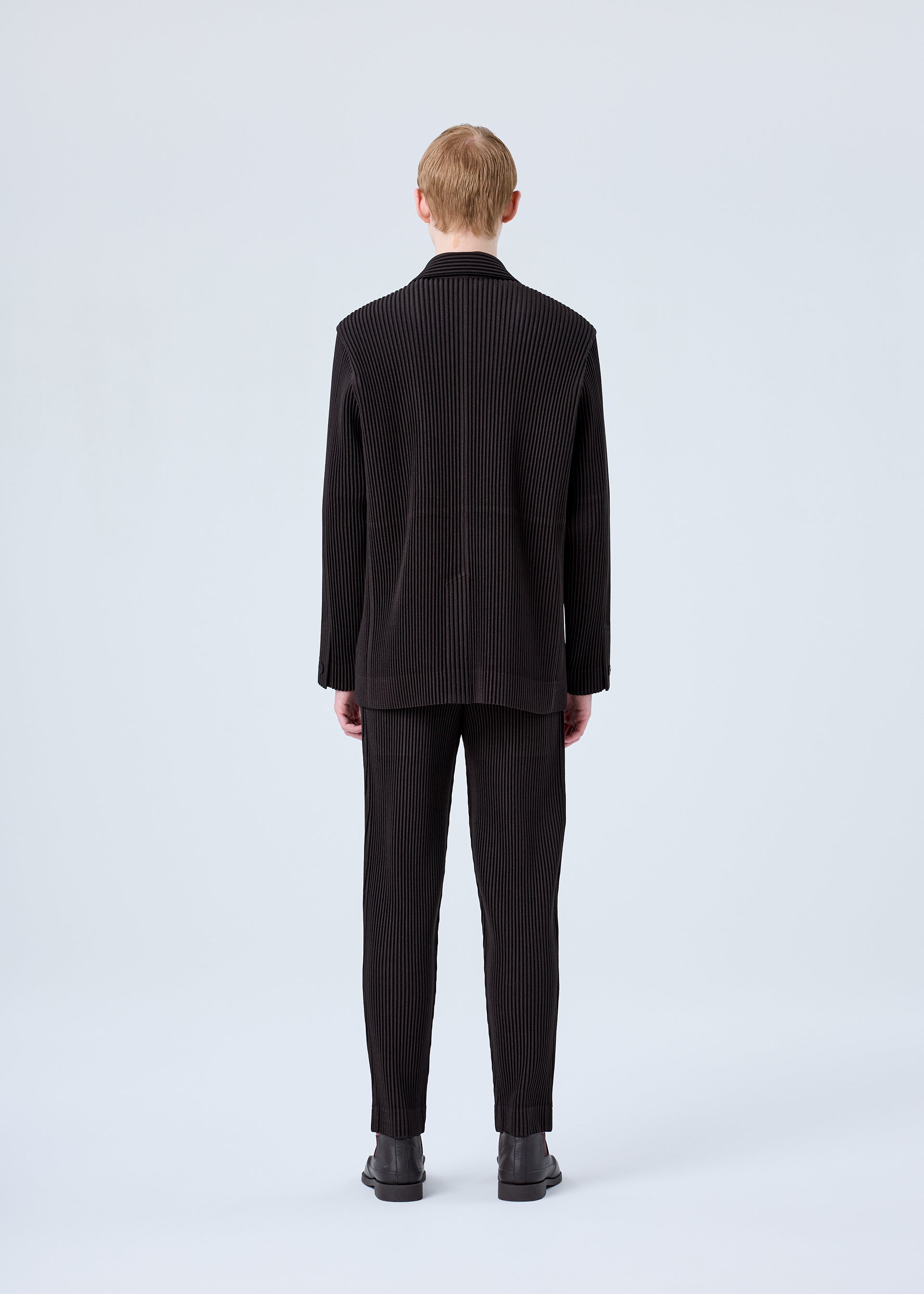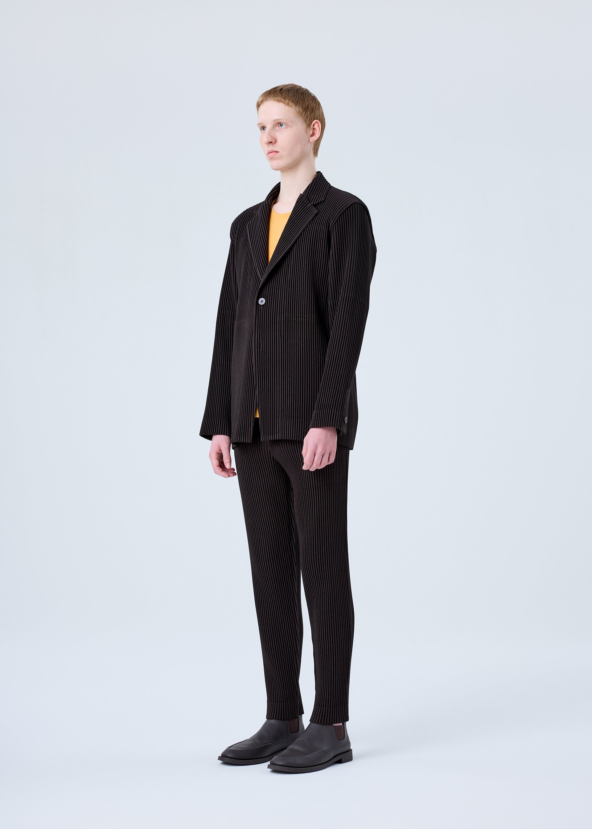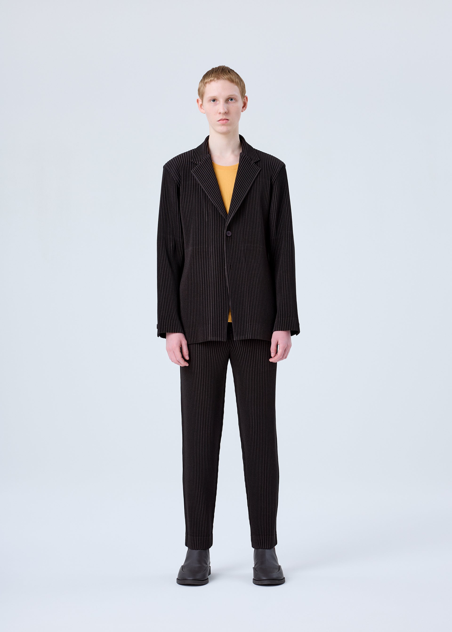These thin, straight pants are made using material that resembles kersey (twill) with three-dimensional, diagonal ribbing. They are characterized by the thin, light feel of the material despite its wool-like fluffiness. They have pockets on both sides and belt loops at the waist. They have a button-fly design.