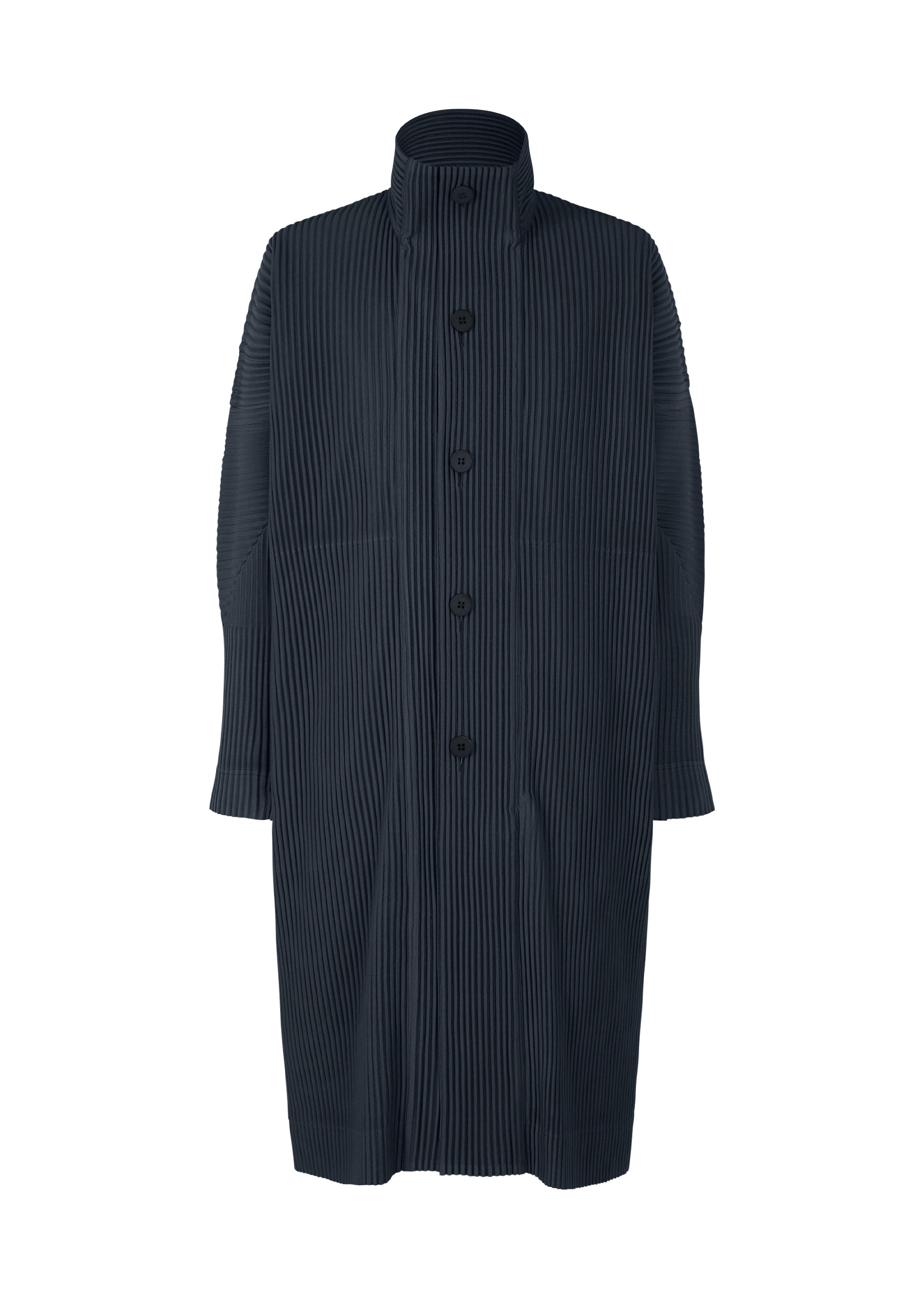 This coat with a standing collar is available in matte color tones. It has pockets on both sides.