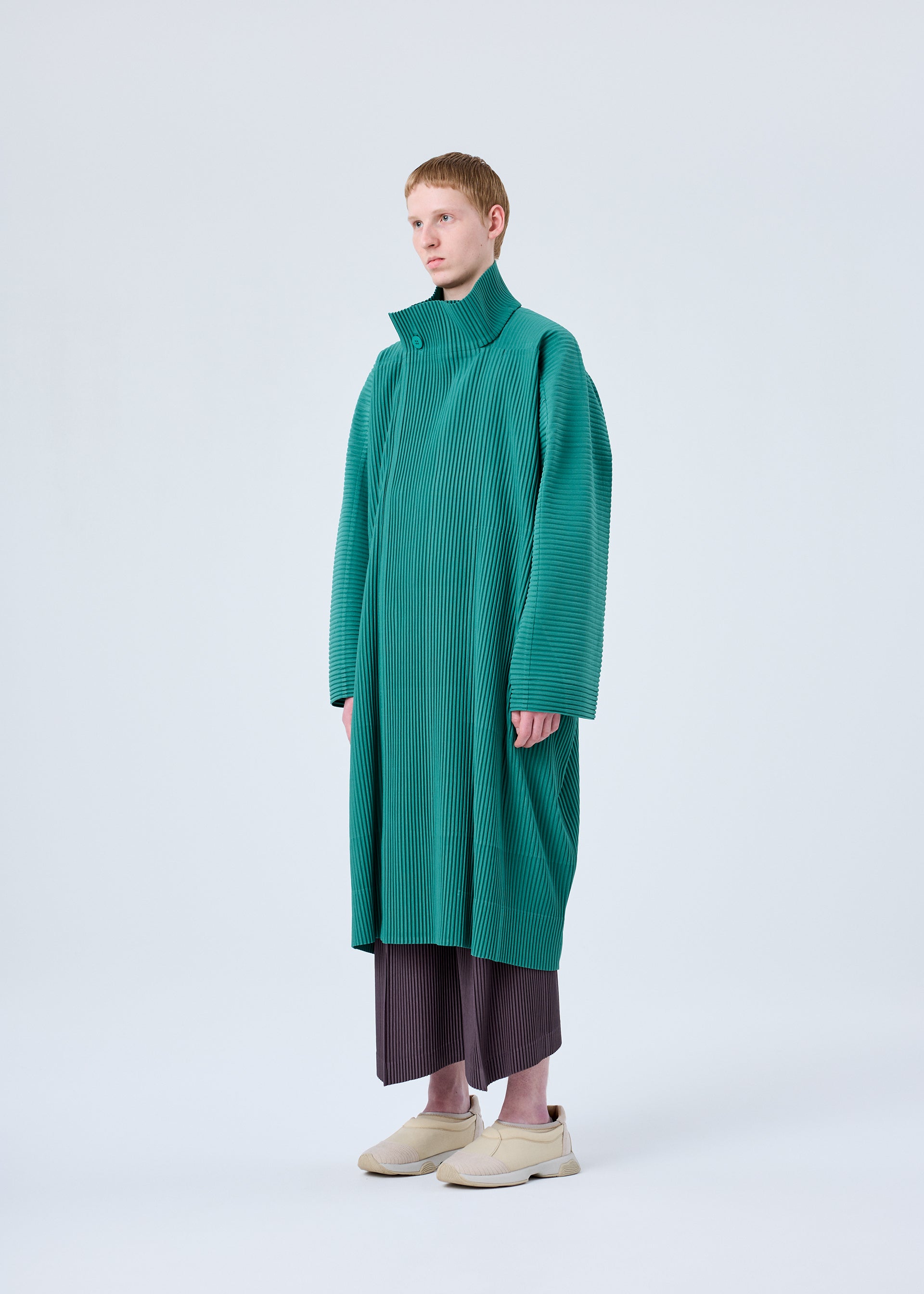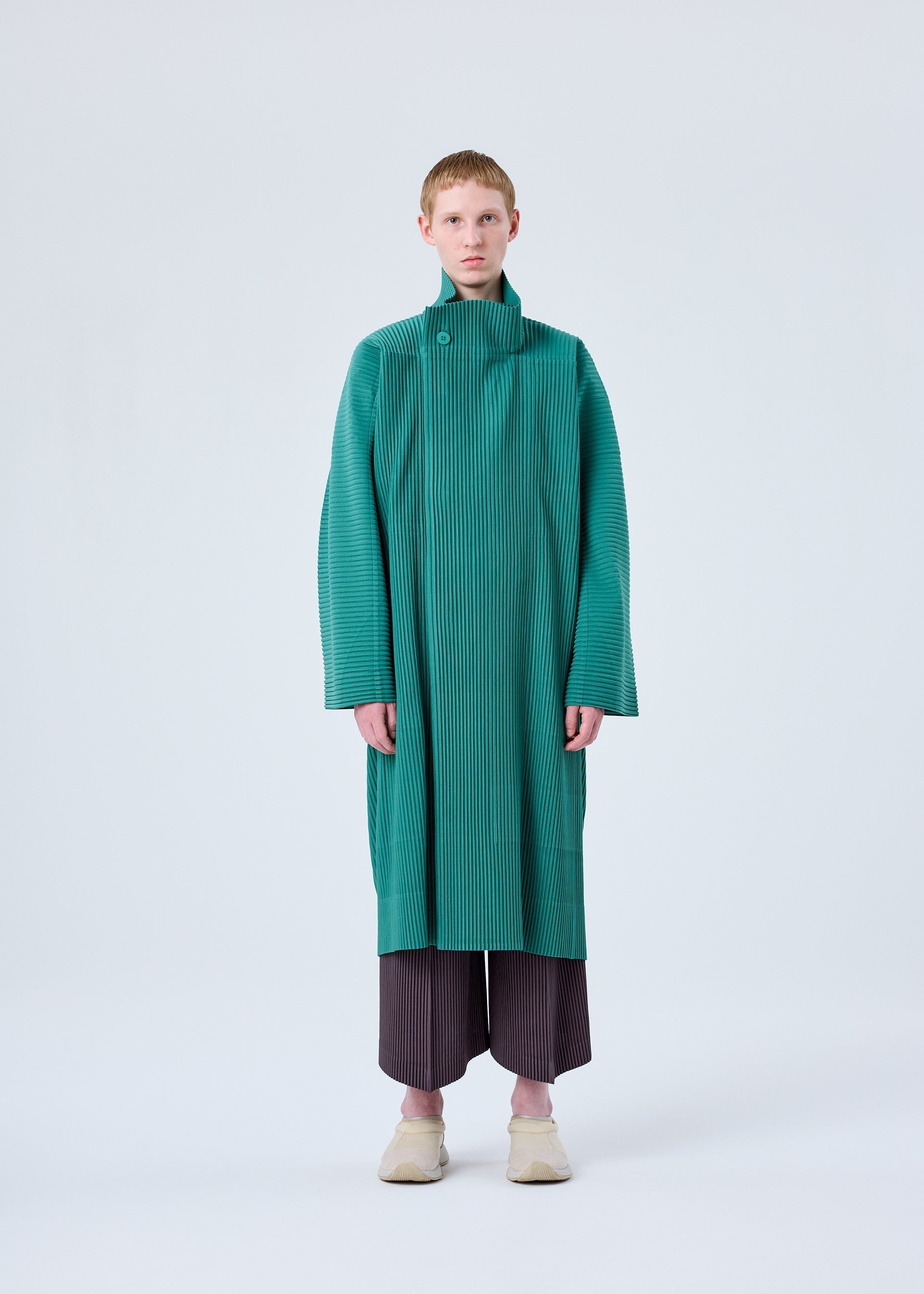 This coat with a standing collar is available in chic color tones. It has pockets on both sides.
