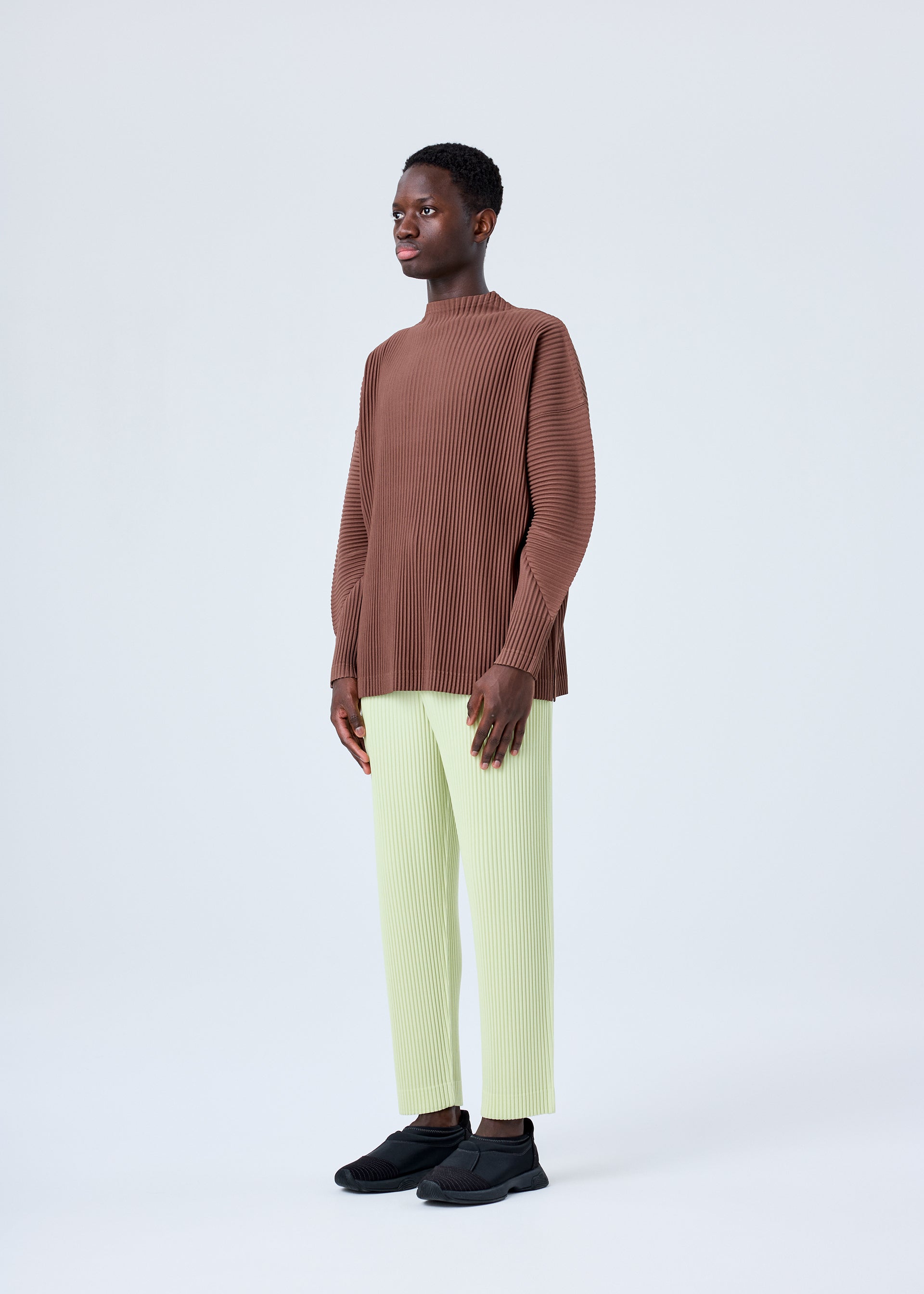 These straight pants are available in matte color tones. They have pockets on both sides, inner drawcord and a button-fly design.