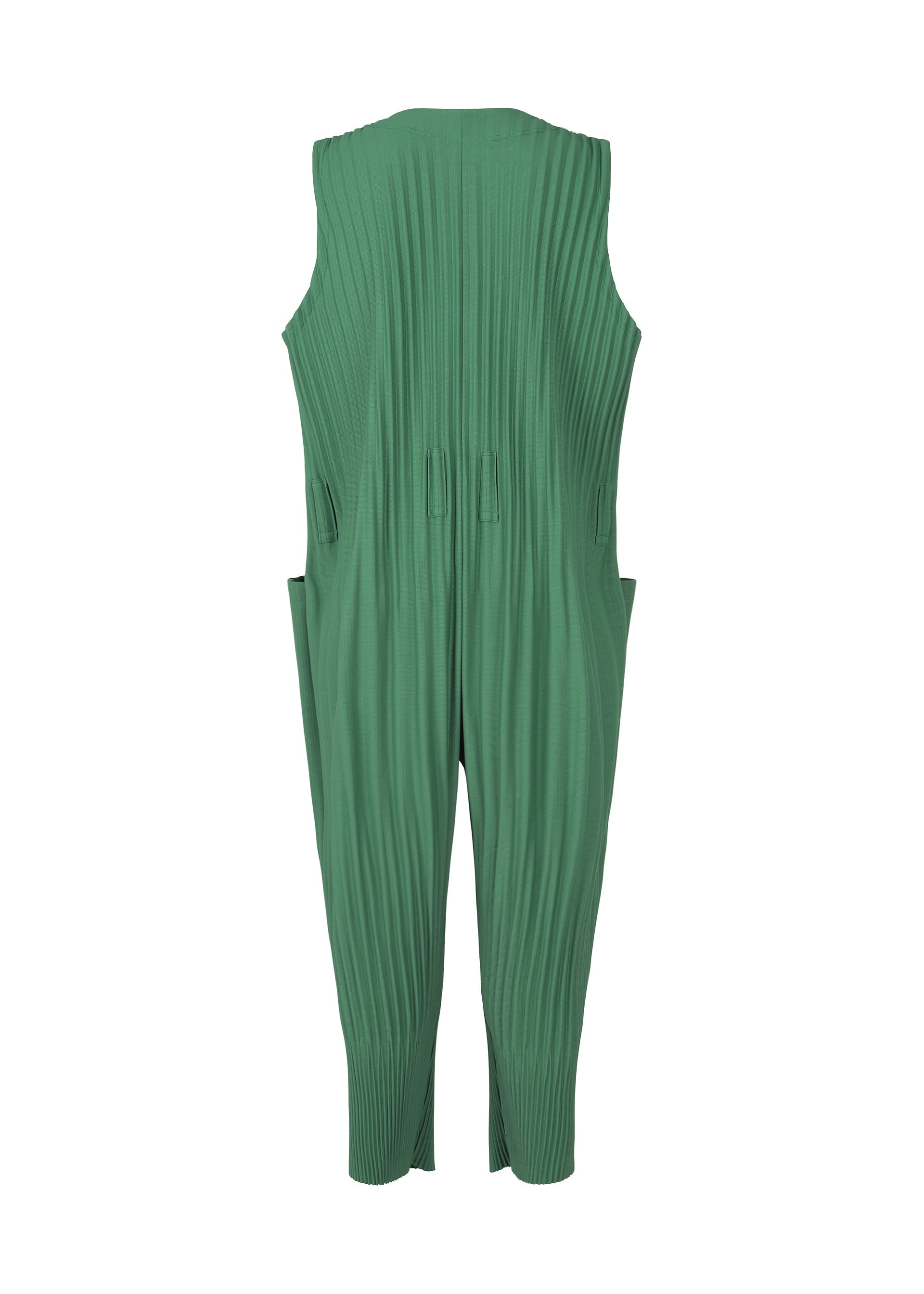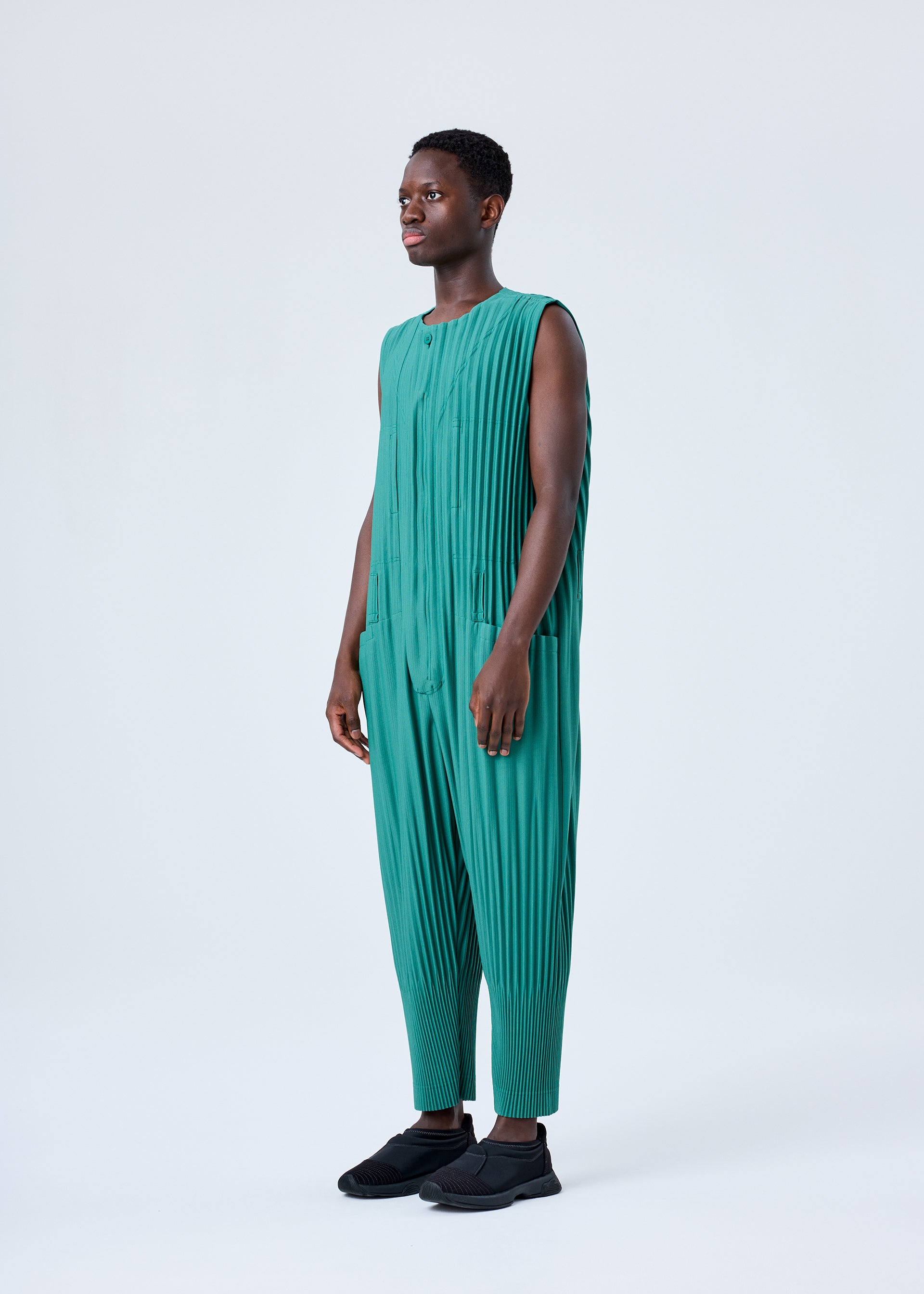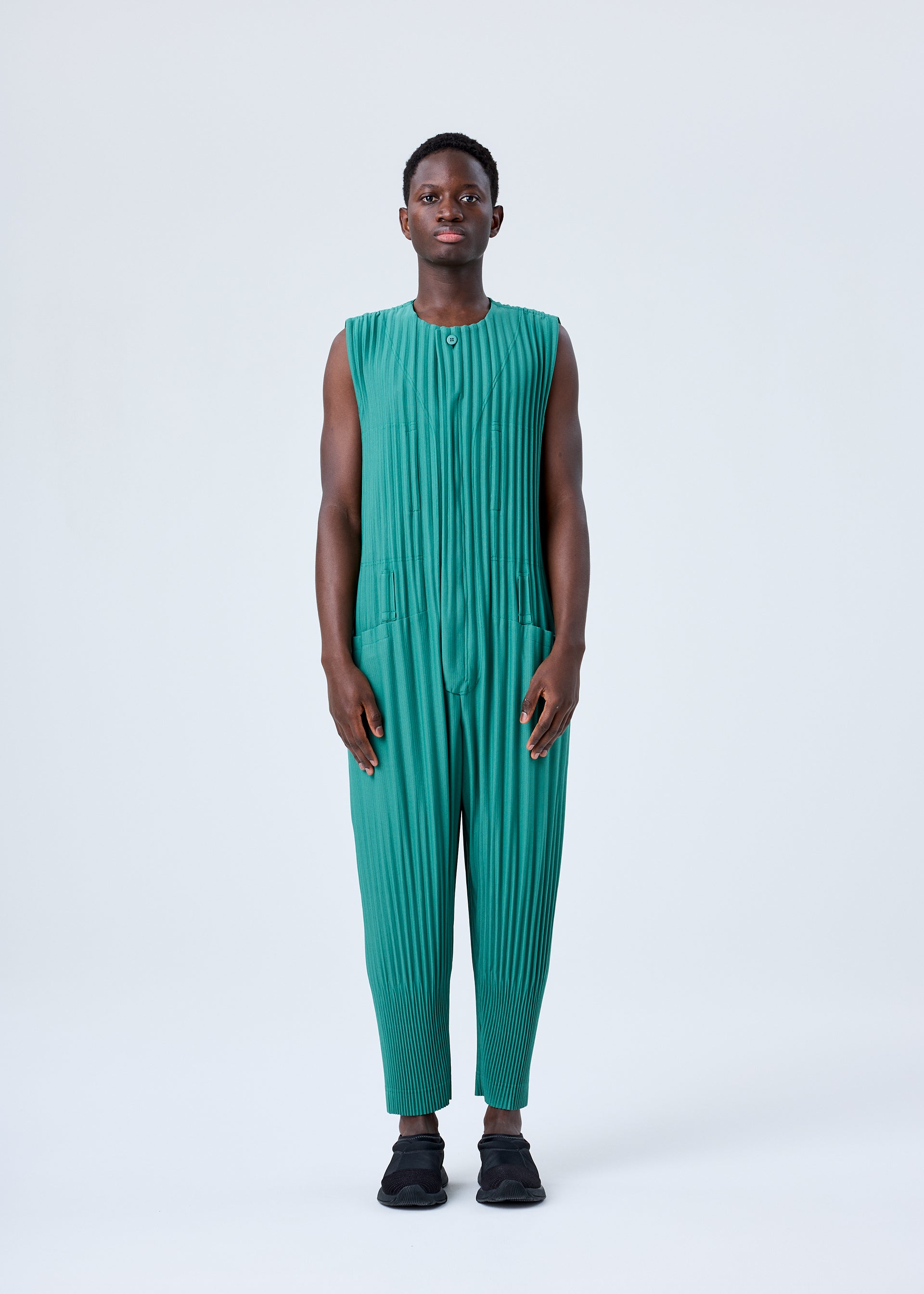 This jumpsuit is available in clear color tones. It features the brushstrokes and lively impression of designer/artist Ronan Bouroullec’s drawings through pleats of varying widths. It has chest pockets, pockets on both sides, and belt loops at the waist.