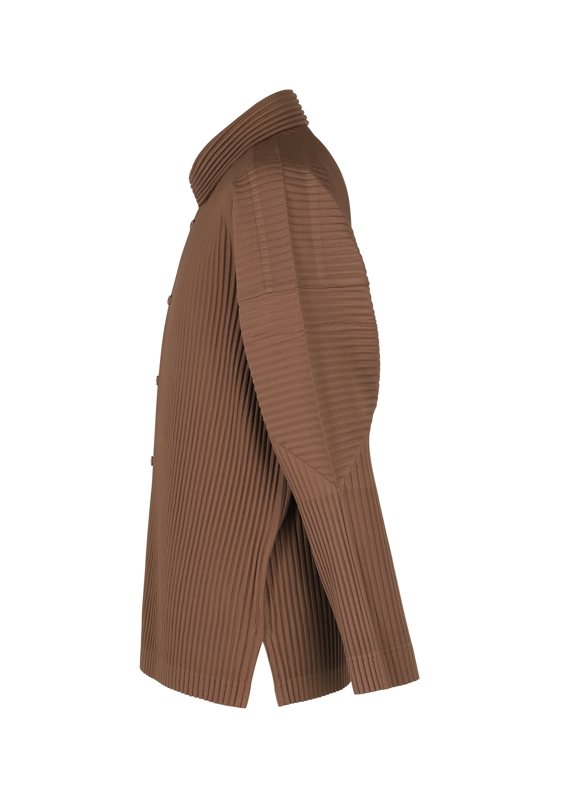 This shirt with a regular collar is available in matte color tones. It has slits on both sides.