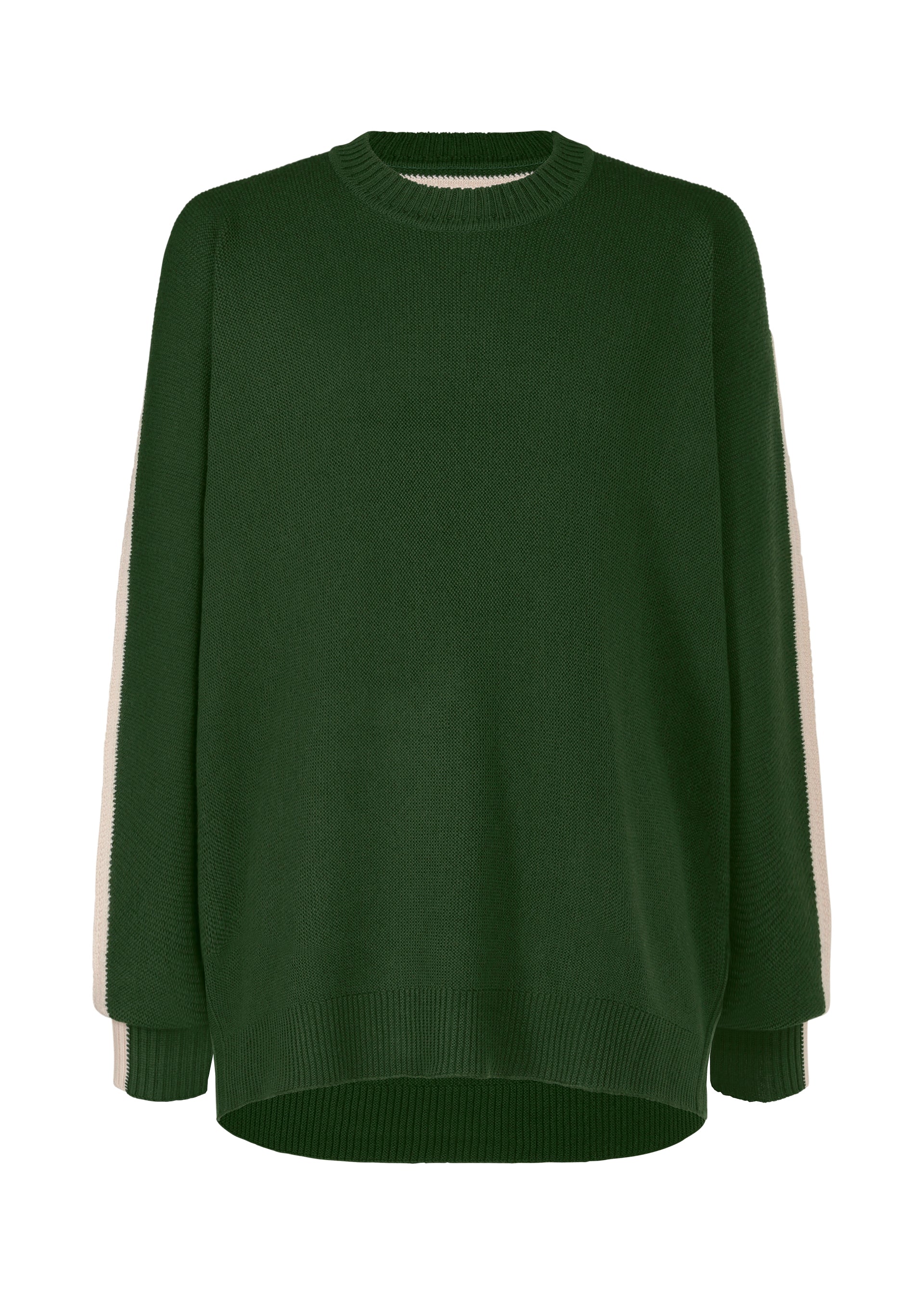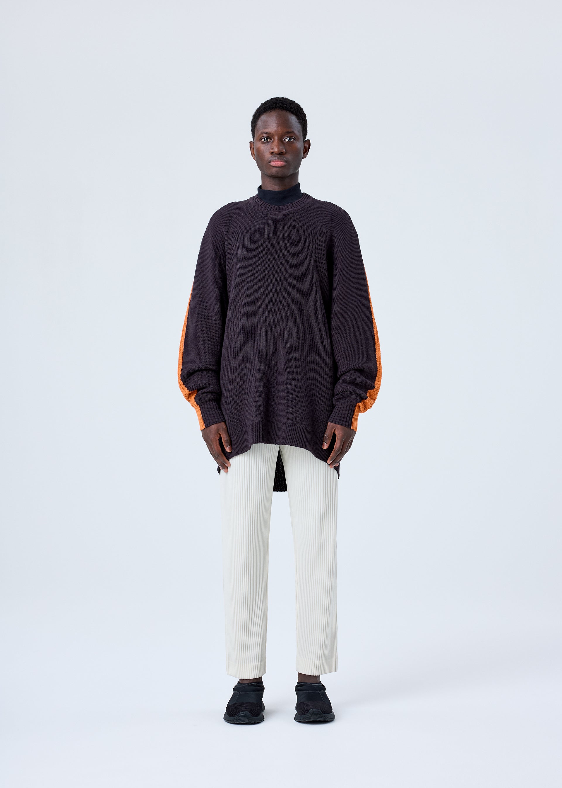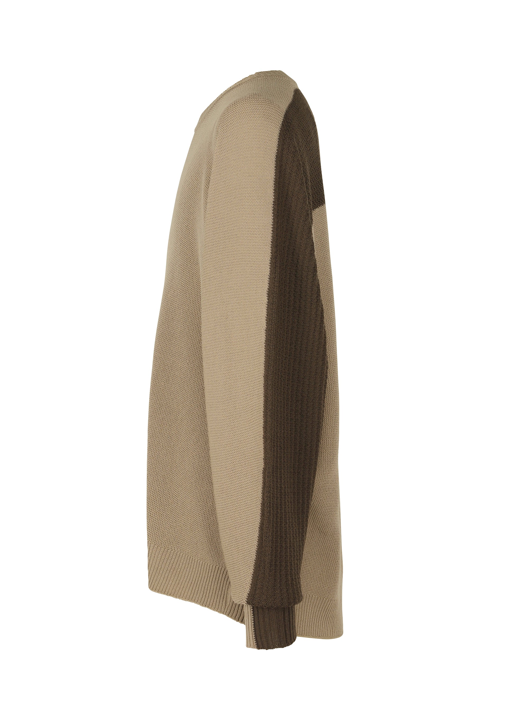 This three-dimensional round-neck knit features lines drawn across the knitted fabric. The lines of designer/artist Ronan Bouroullec's drawings are boldly expressed by alternating the stitches and color scheme. The knit is characterized by its relaxed silhouette.