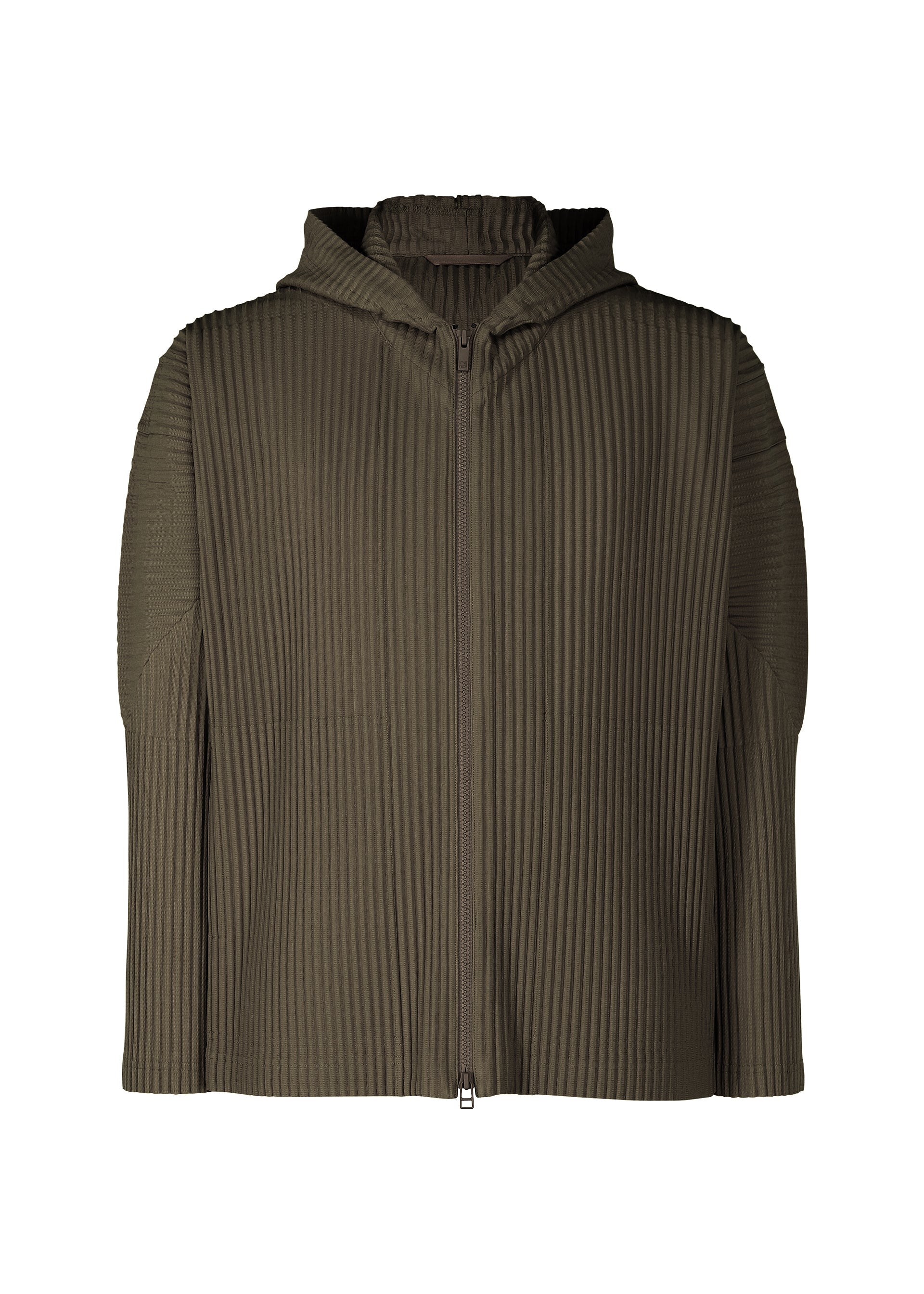 This zip-up parka is available in soft color tones. It is characterized by its portability and light comfort with the unique quick-drying property of polyester material. It has pockets on both sides.