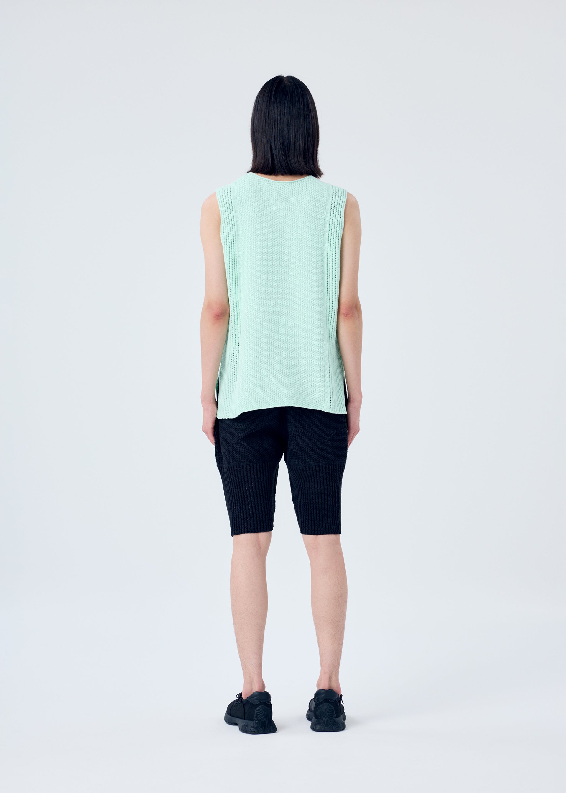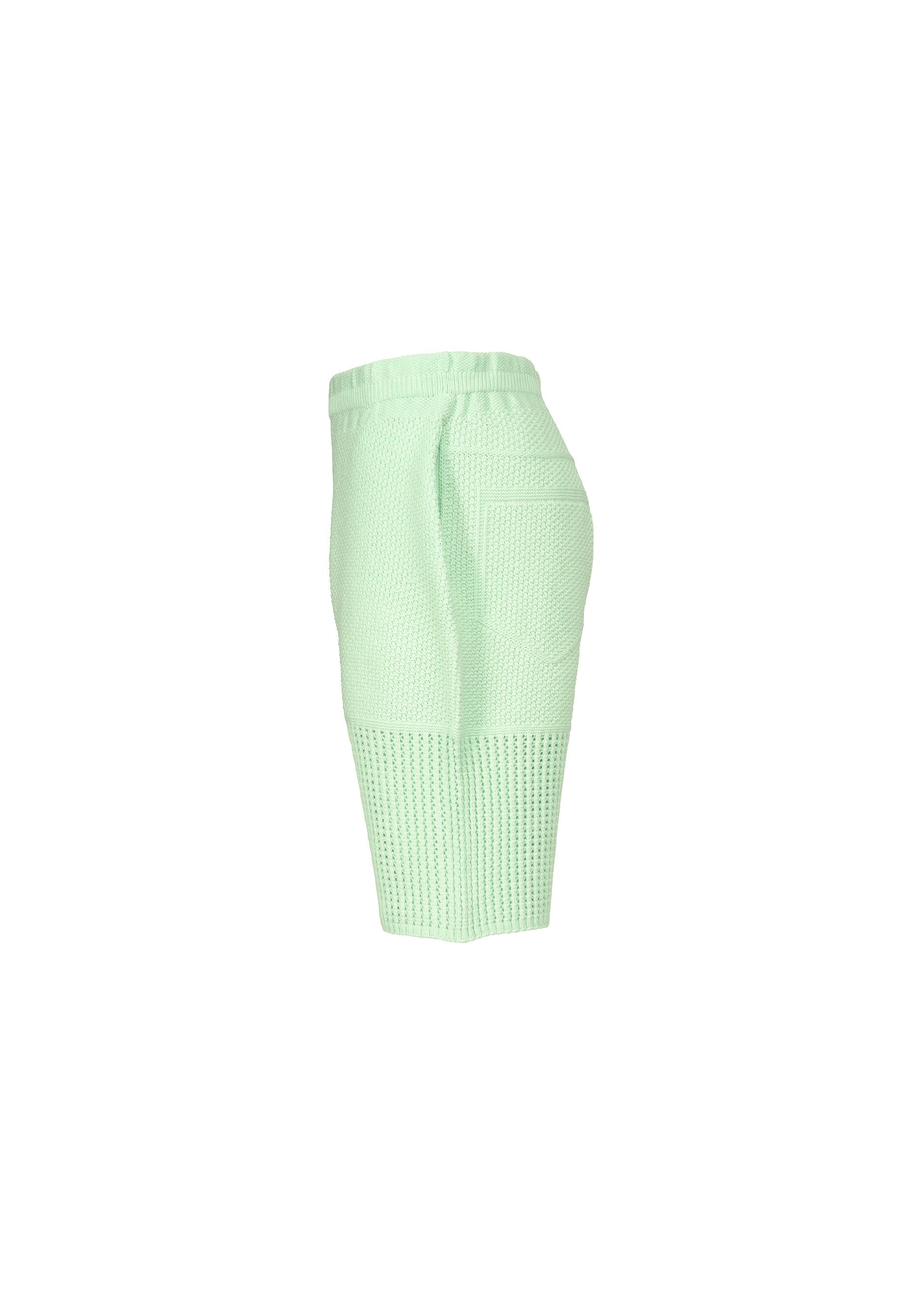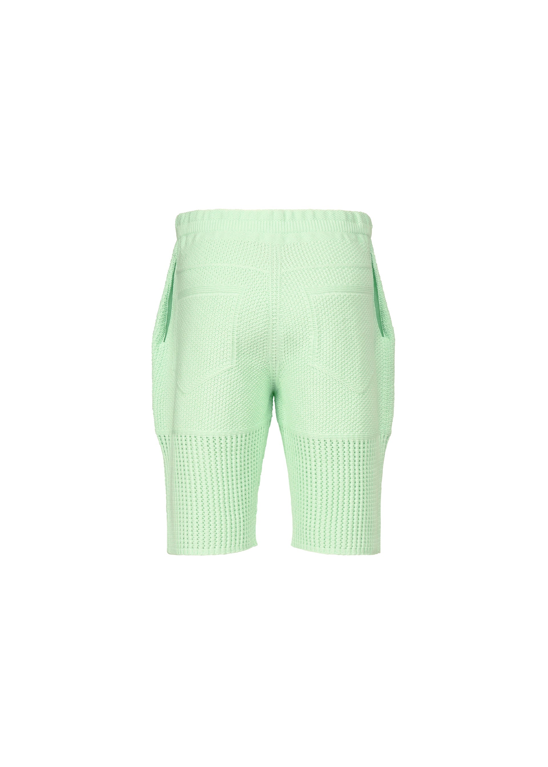 These knit shorts are characterized by their varied silhouette combining standard knitted fabric and ribbing. You can enjoy the soft, light texture. They have pockets on both sides and an inner drawcord.
