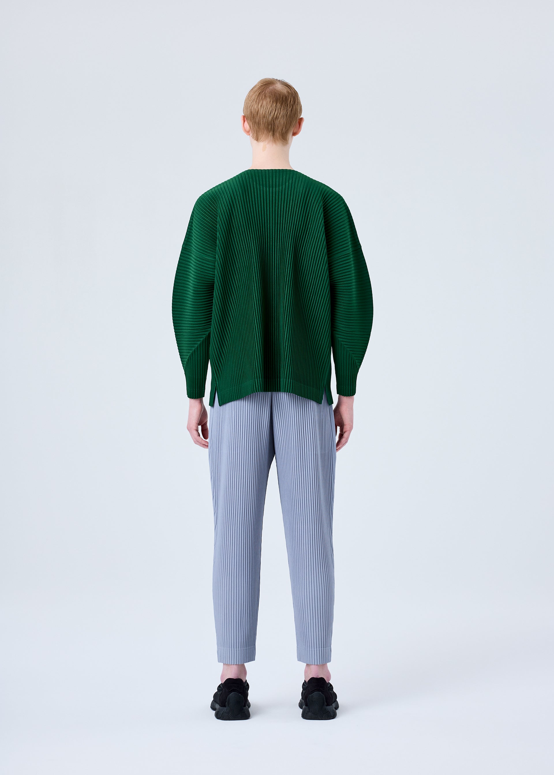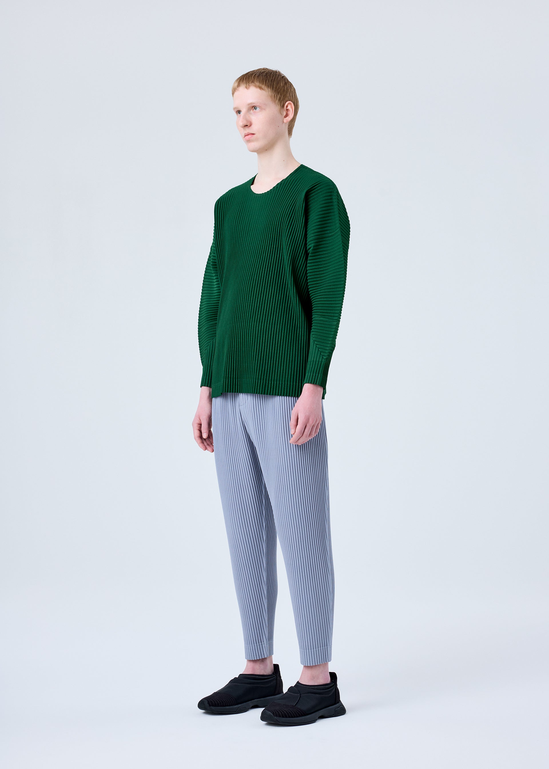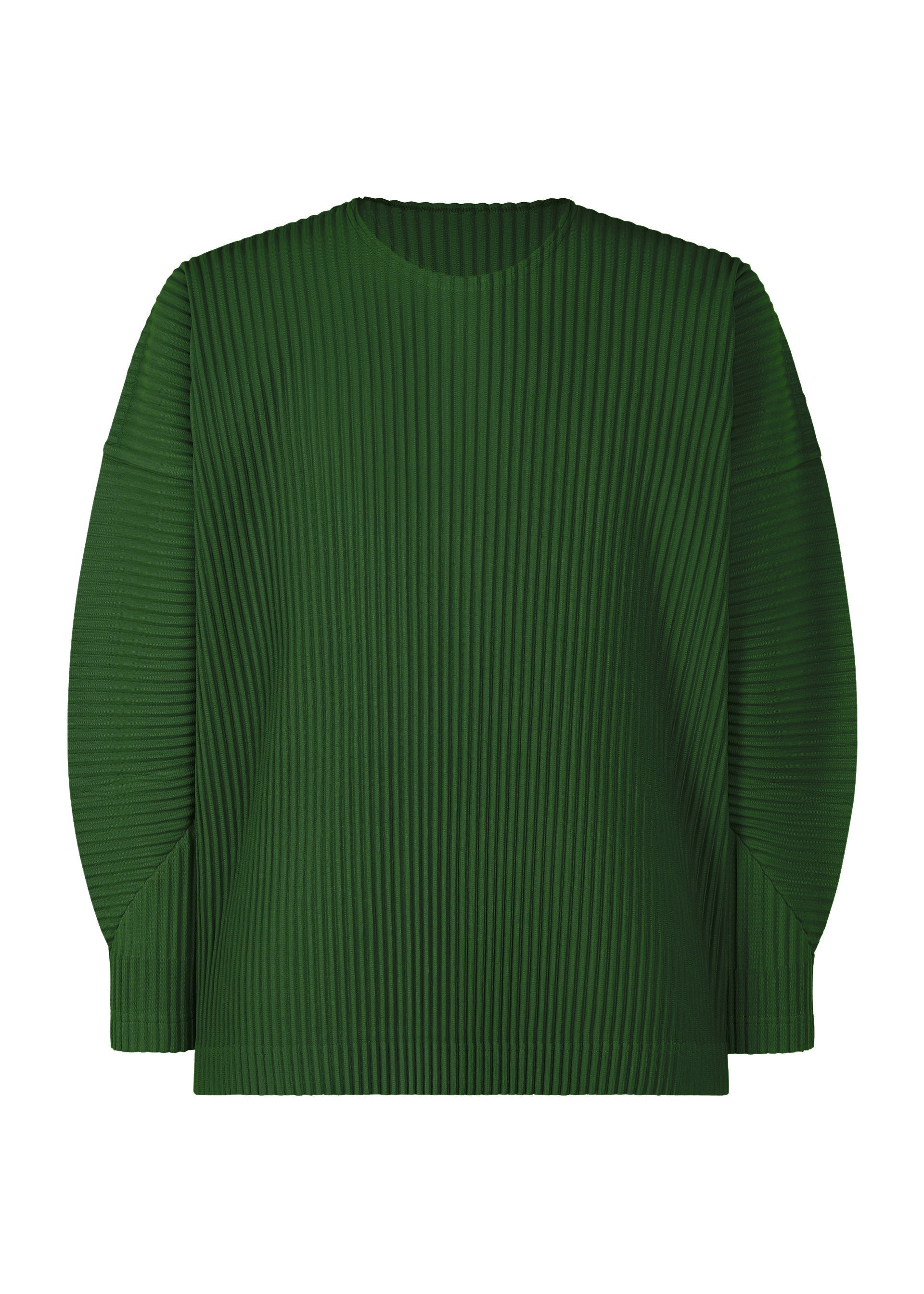 This round-neck, long-sleeved top with a relaxed silhouette is available in subdued colors. It is characterized by the portability and light comfort of the polyester material that is inherently quick-drying. It has pockets on both sides.