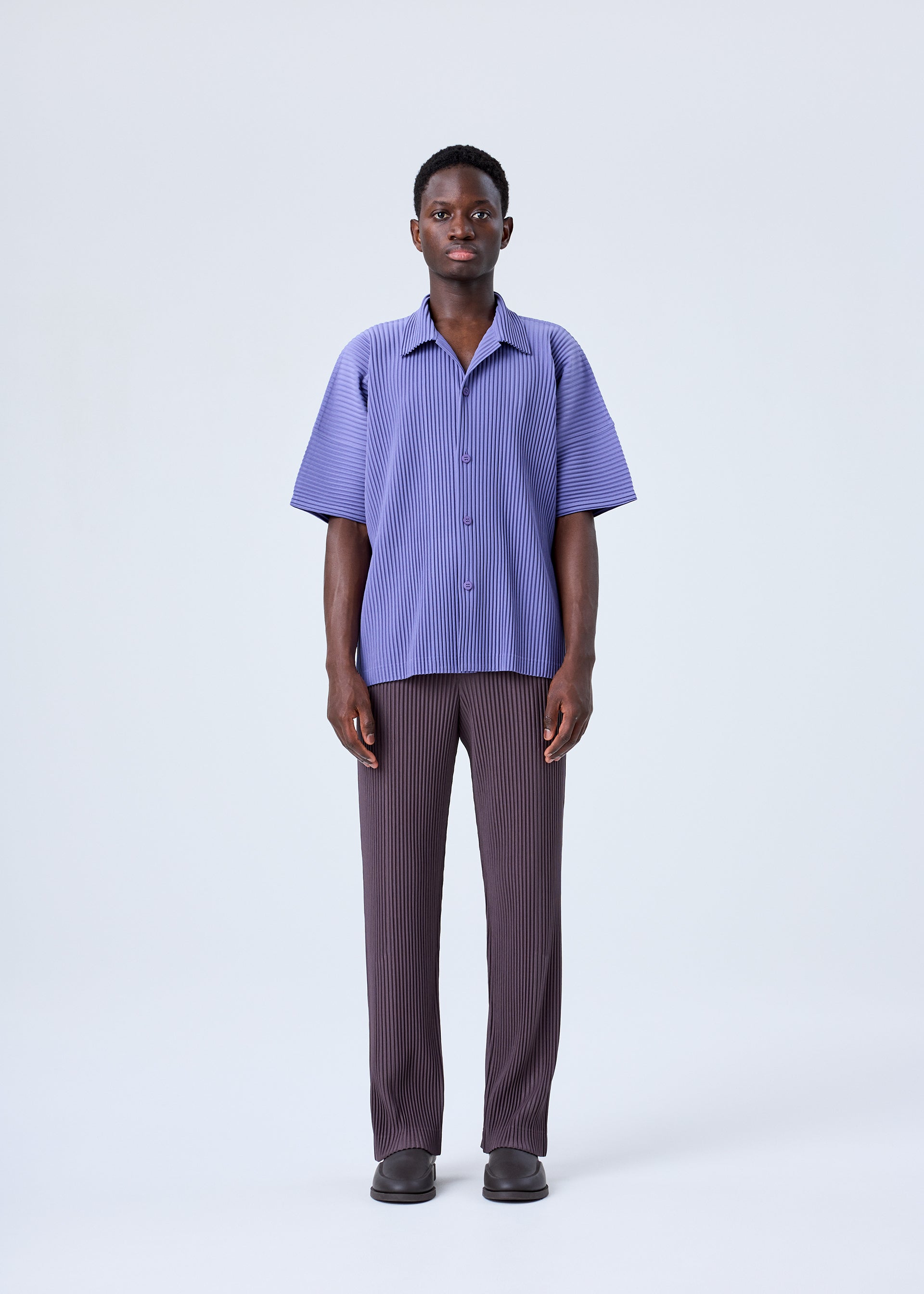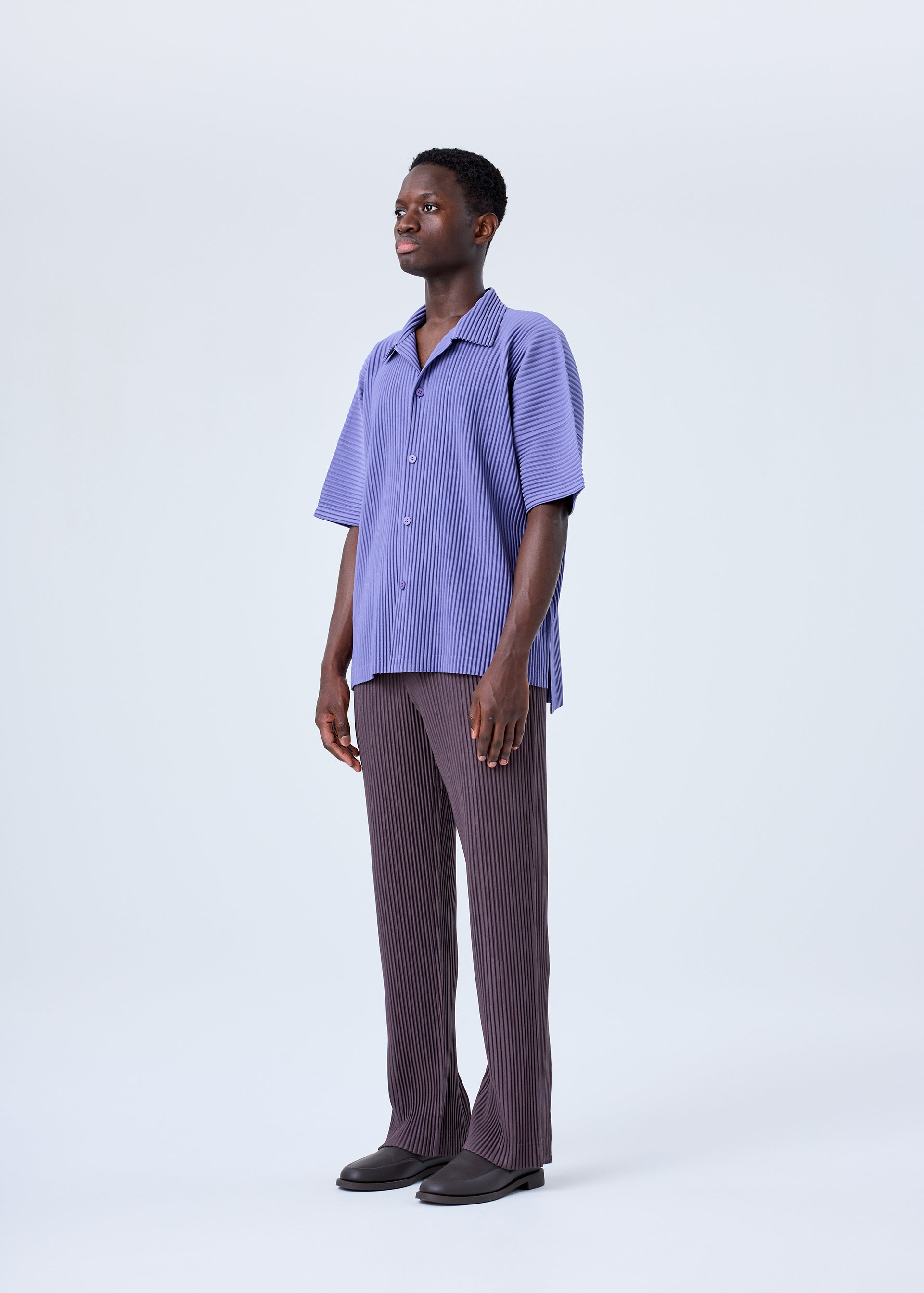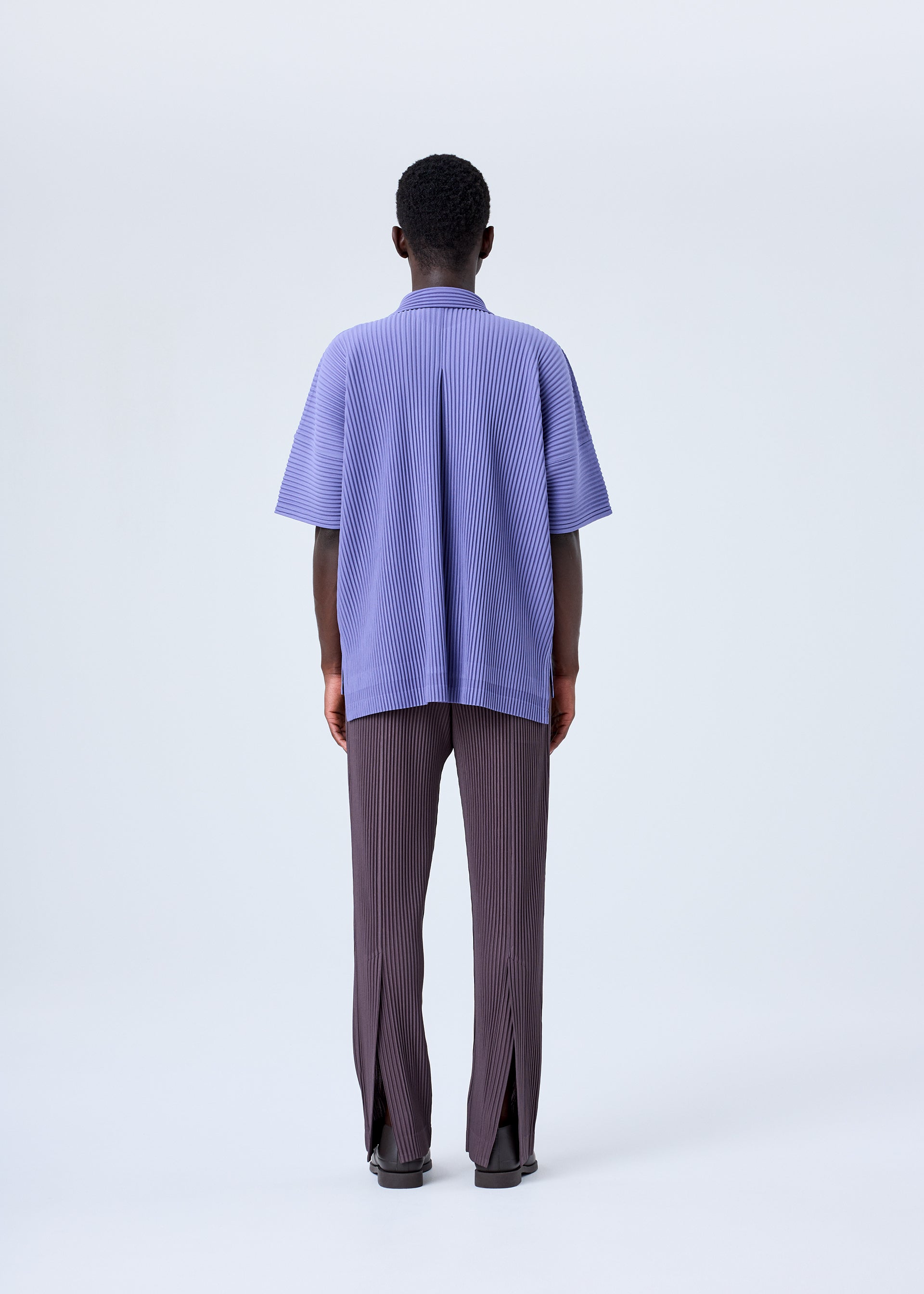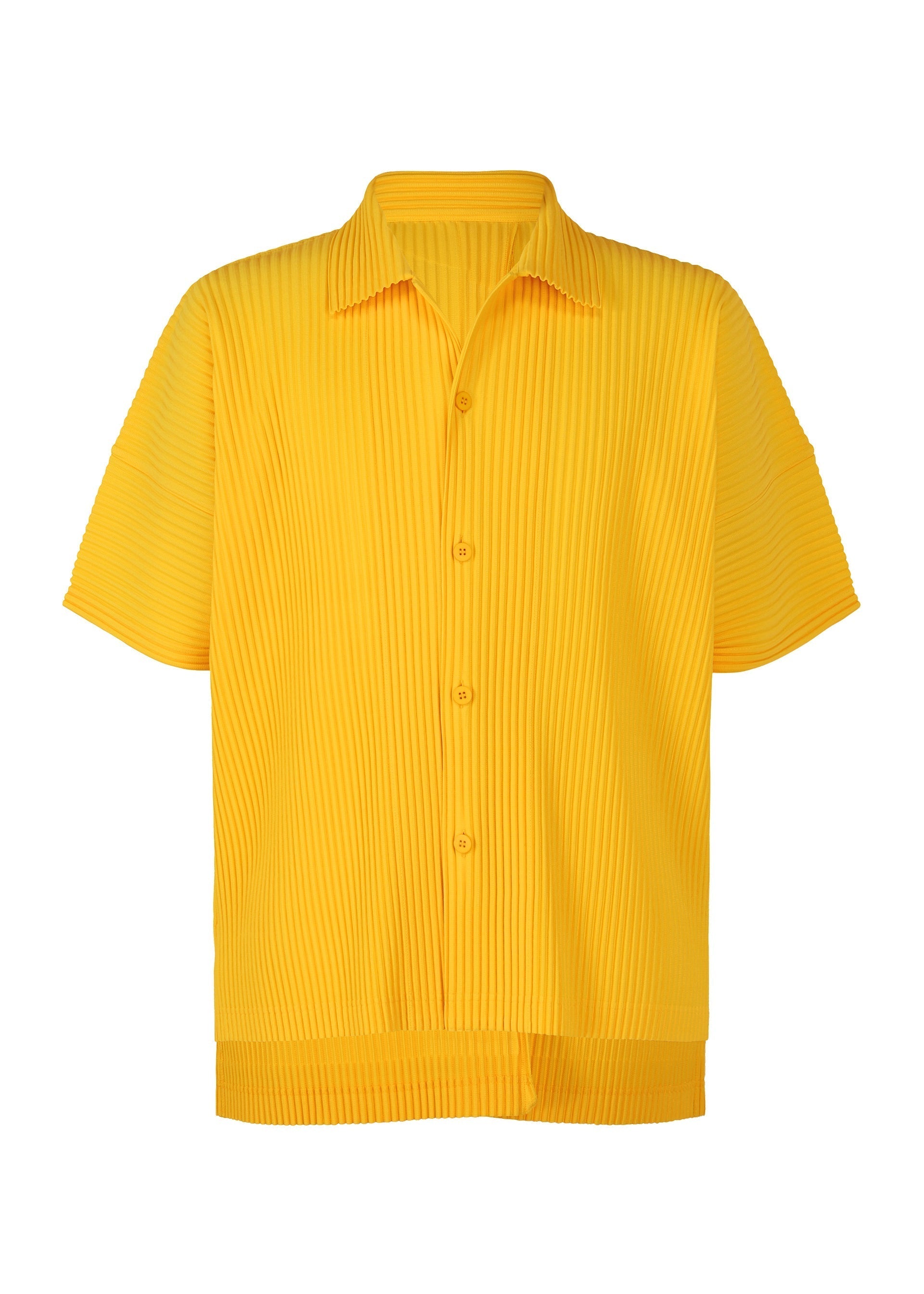 This short-sleeved shirt with an open collar is available in refreshing color tones and has a relaxed silhouette. It is characterized by its portability and light comfort with the unique quick-drying property of polyester material. There are slits on both sides.