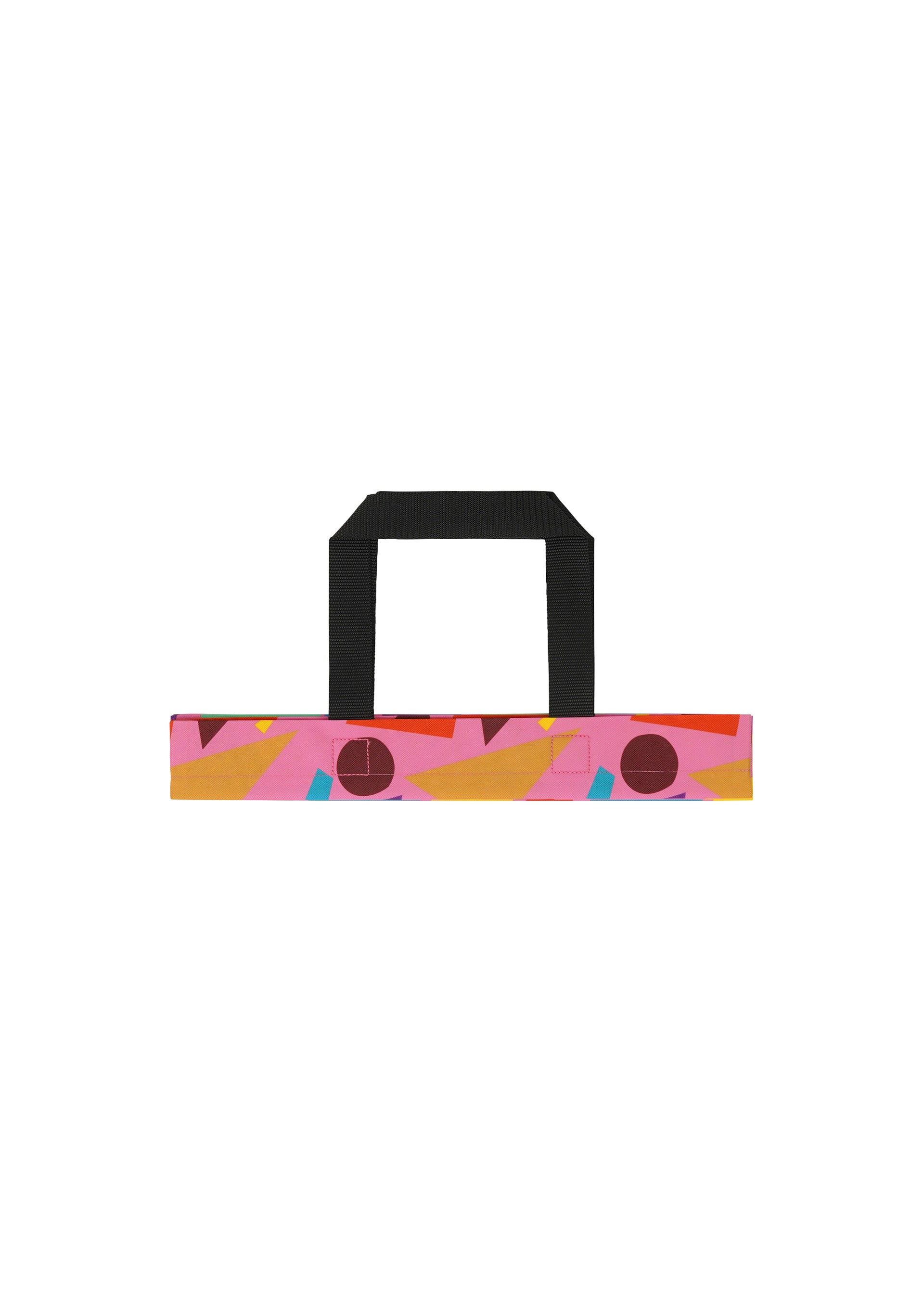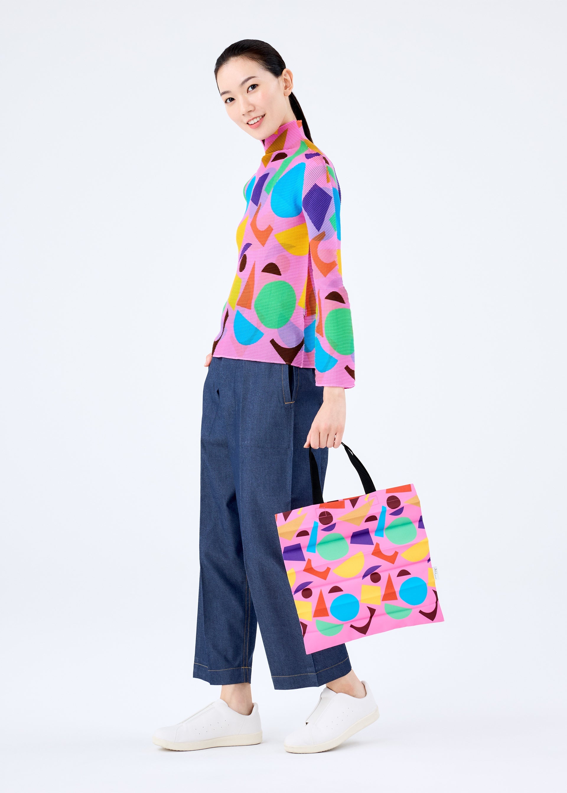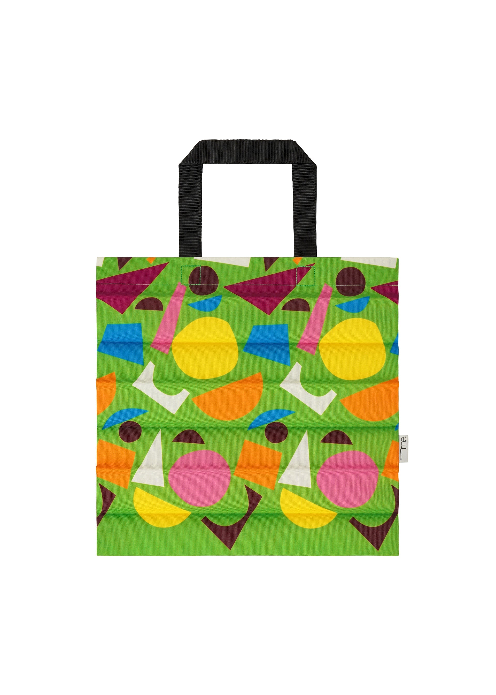 This pleated bag has a playful pattern that looks like colorful paper that has been cut with scissors and scattered. It can be compactly folded in an accordion-like shape.
