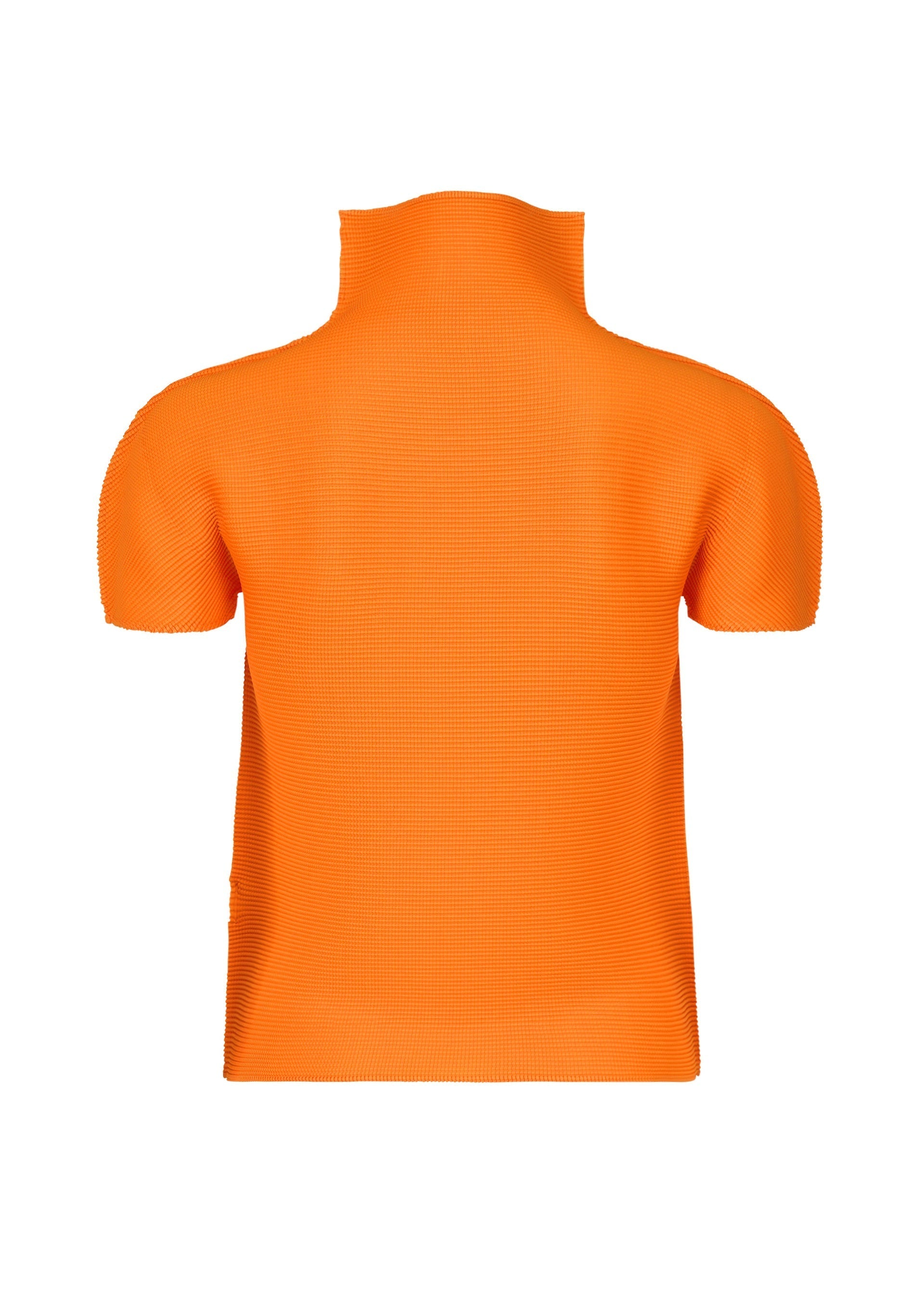 This high-neck, short-sleeved top features vertical and horizontal stretch pleats.