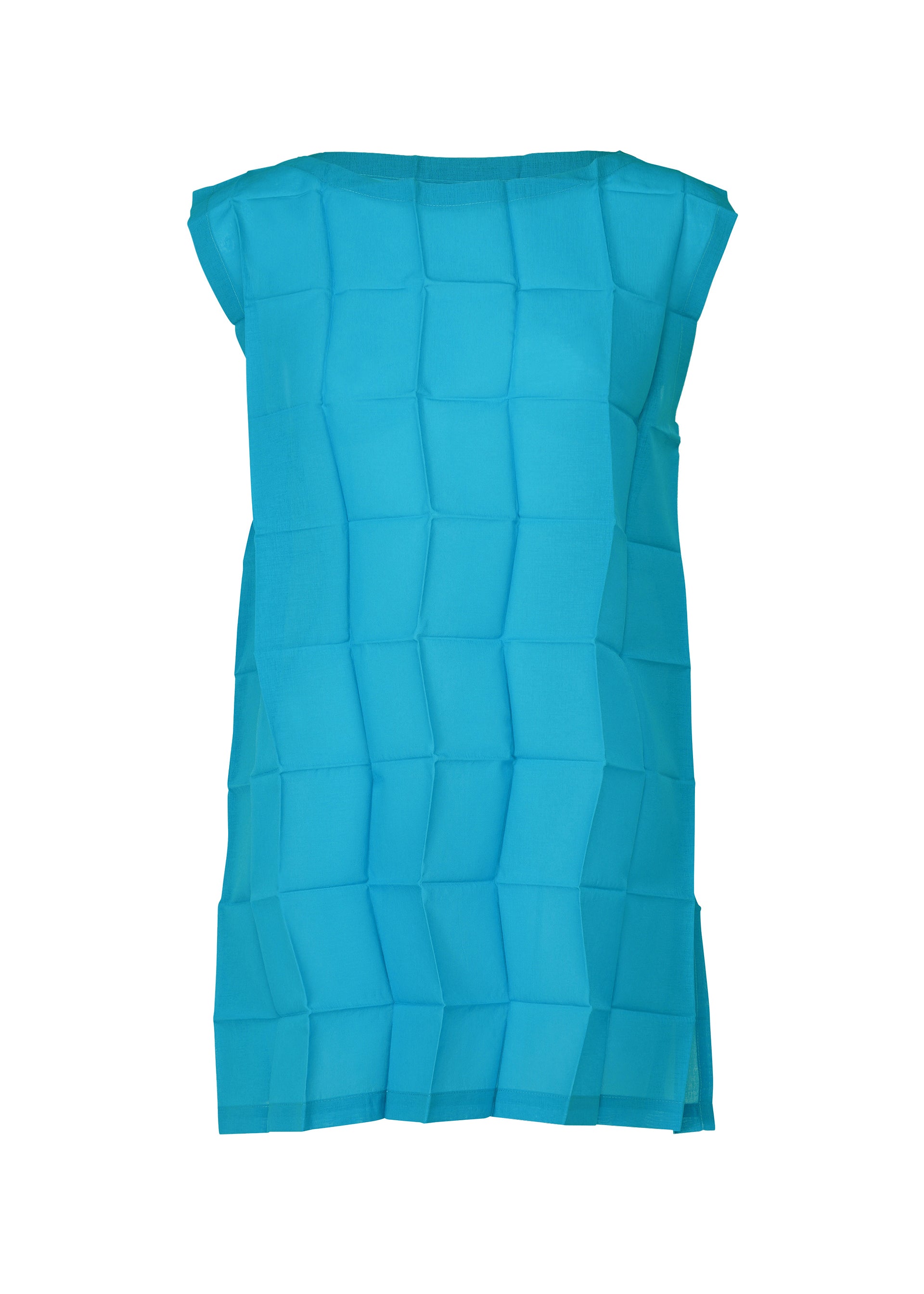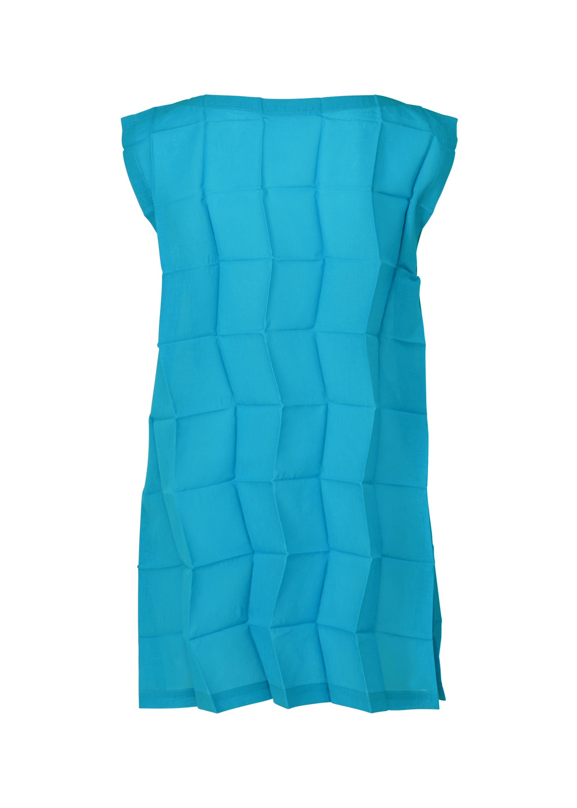This tunic can be compactly folded along the pleat lines, which are designed in a lattice pattern. This item features a moderately relaxed, three-dimensional silhouette and a sheer fabric offering cool comfort.