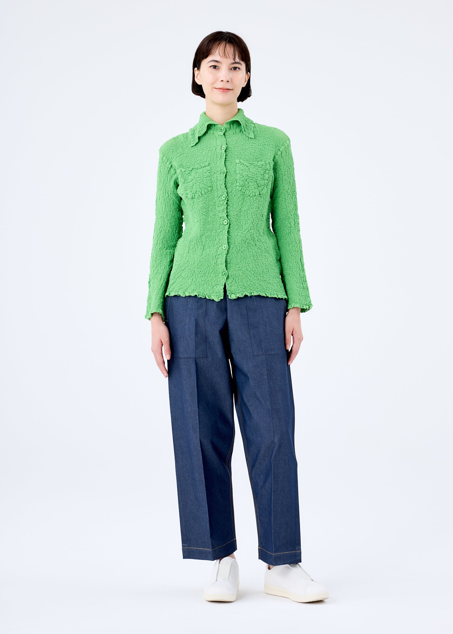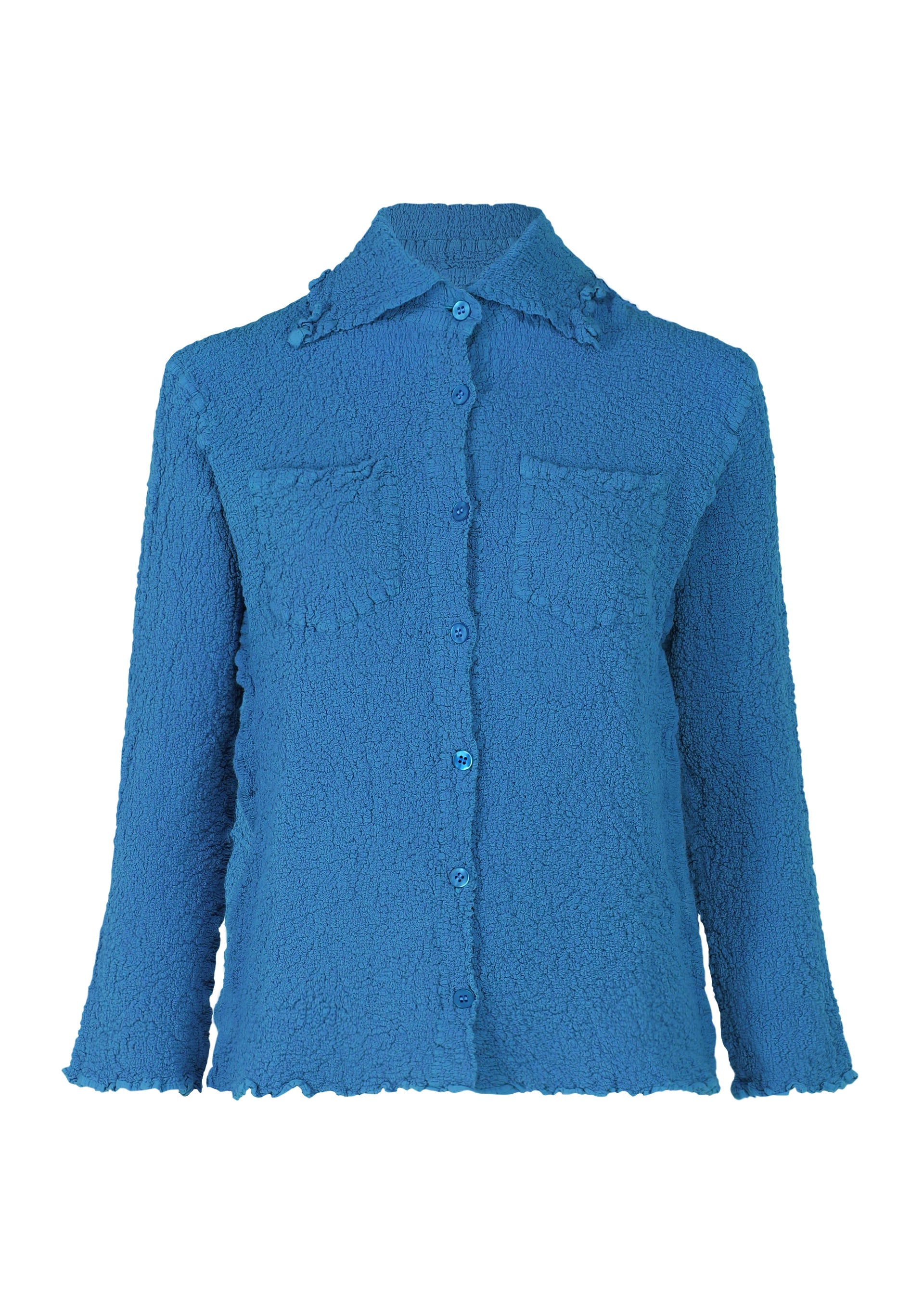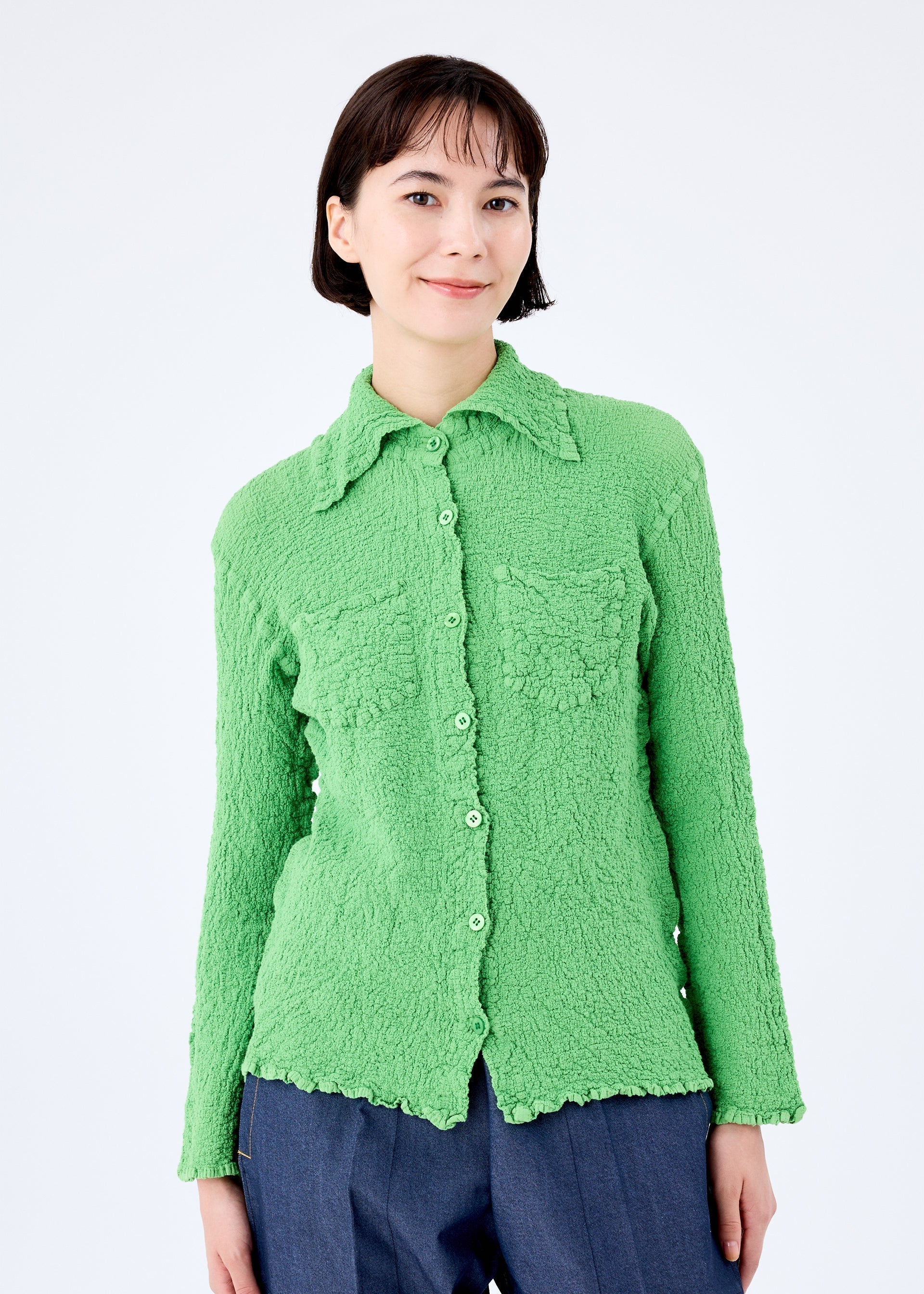 This CAULIFLOWER collared, long-sleeved shirt is characterized by the feel of its material that has the excellent comfort unique to cotton as well as a stretchy unevenness. It has chest pockets on both sides.