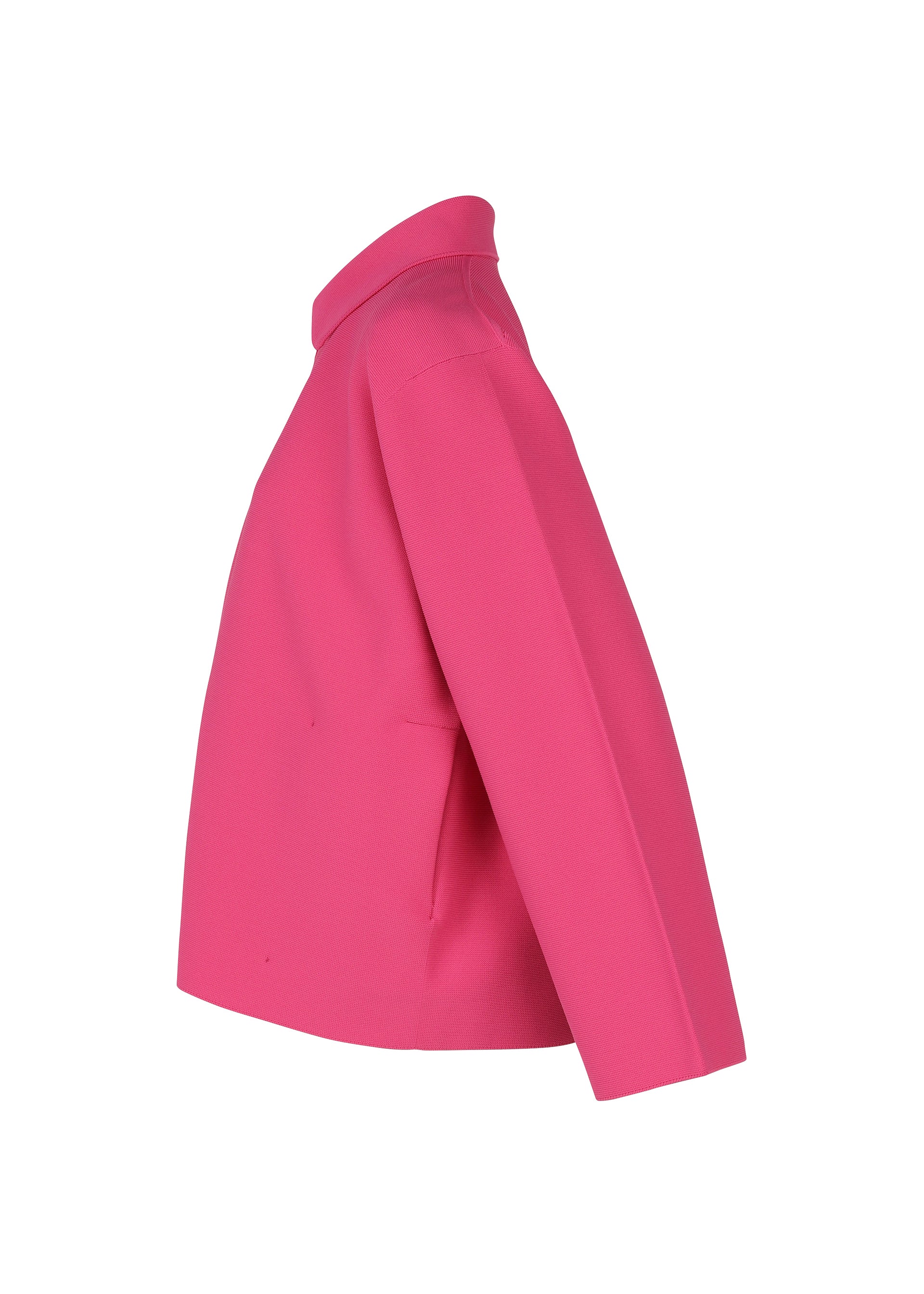 This three-dimensional, product-dyed knit jacket is made from recycled polyester with minimal seams in pursuit of light comfort. Its relaxed silhouette makes it easy to layer. The front features a slim zipper for a sleek impression. It has pockets on both sides.