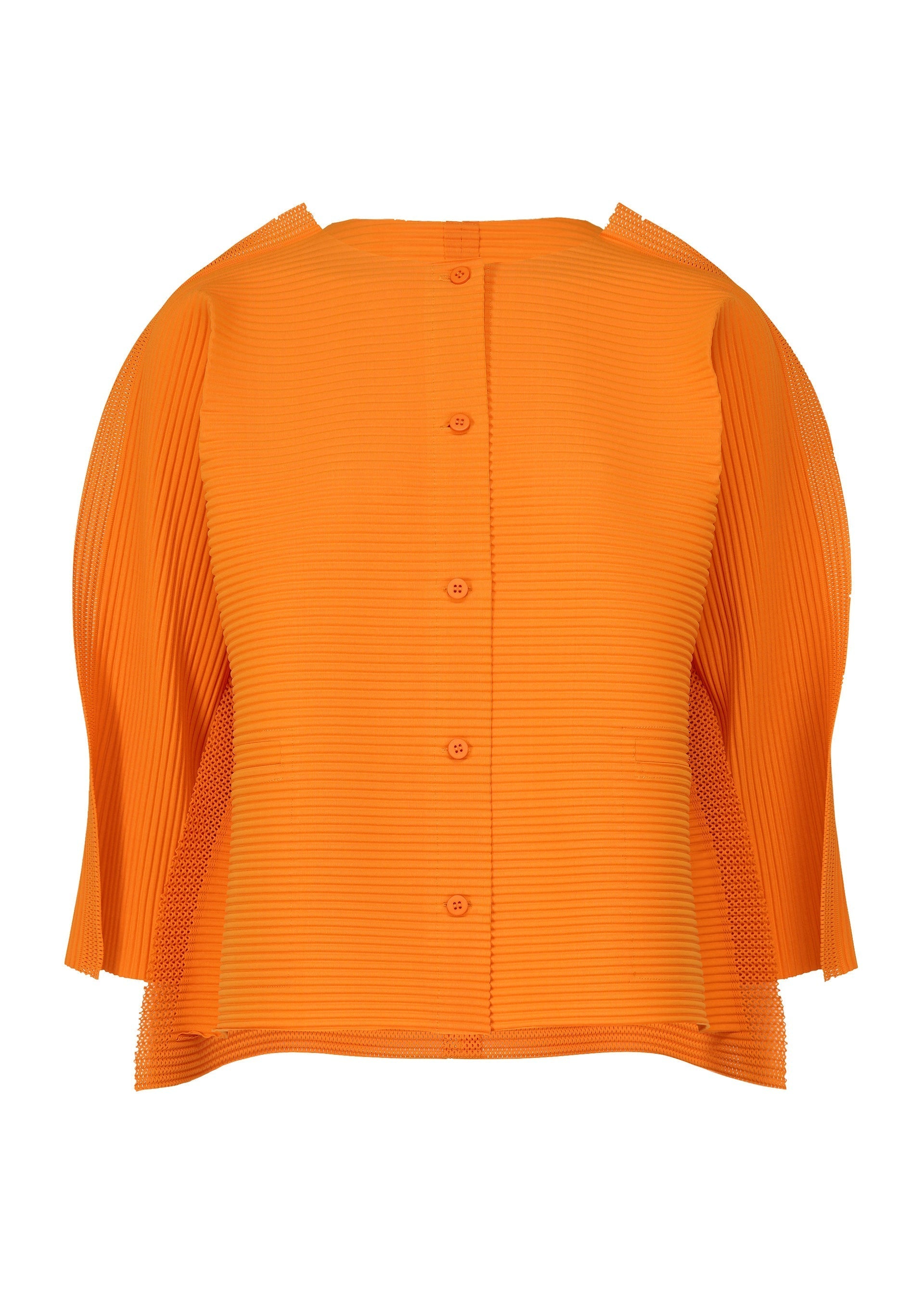 This FINE KNIT PLEATS long-sleeved cardigan is characterized by its lightweight, soft feel and features pleats applied to knit material made with stretchy, thin, soft yarn. The design with a light feel features mesh structures arranged in a frame structure and horizontal pleats. It has pockets on both sides.