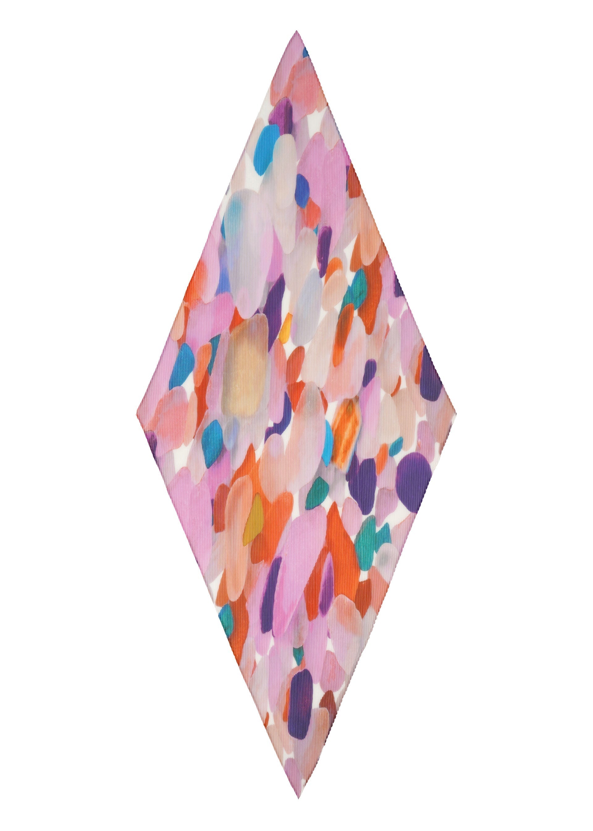 This pleated stole has a pattern featuring beautiful sea glass formed by glass bottles and other such objects that are tossed by waves and naturally worn down into rounded glass pieces over time.
