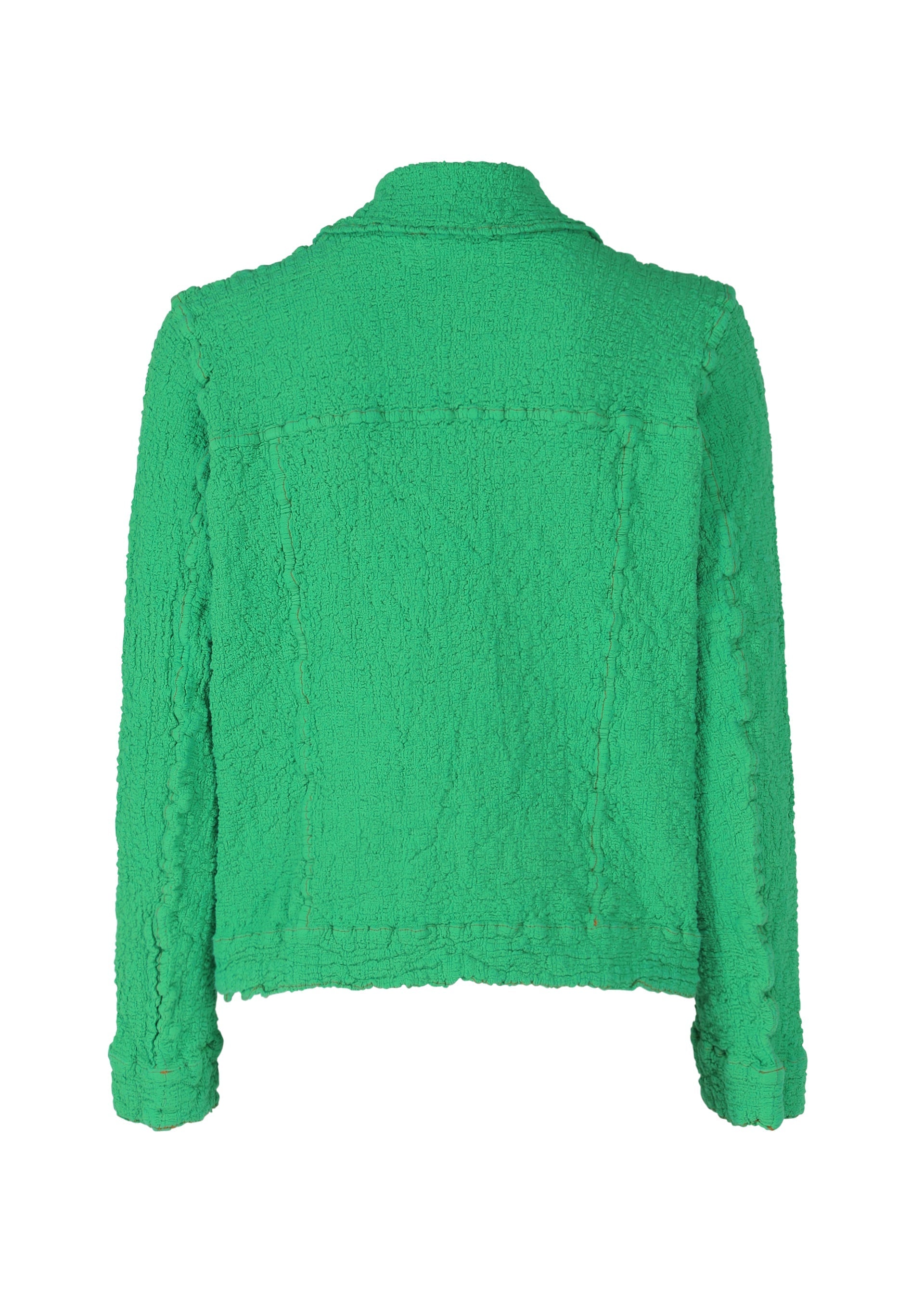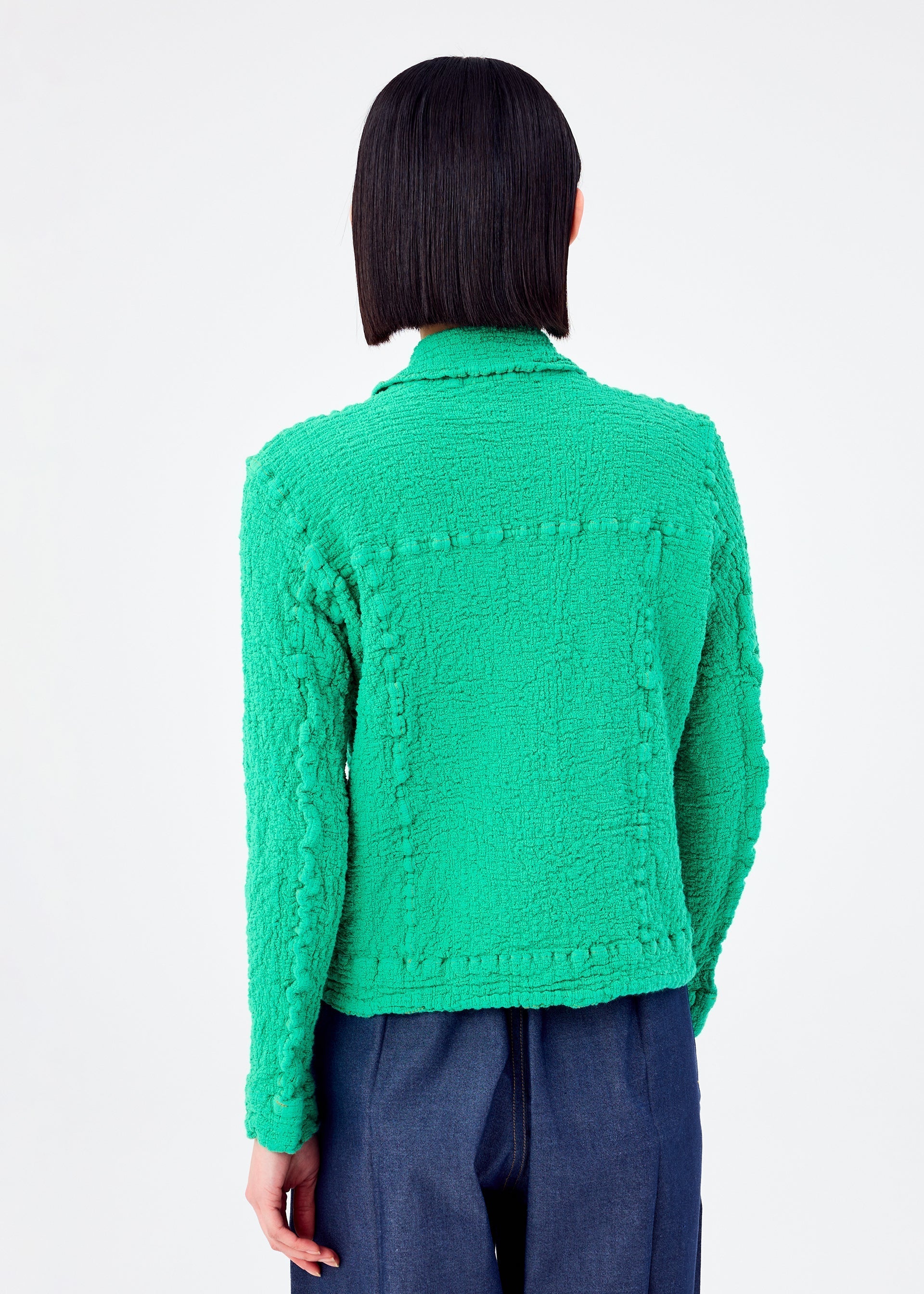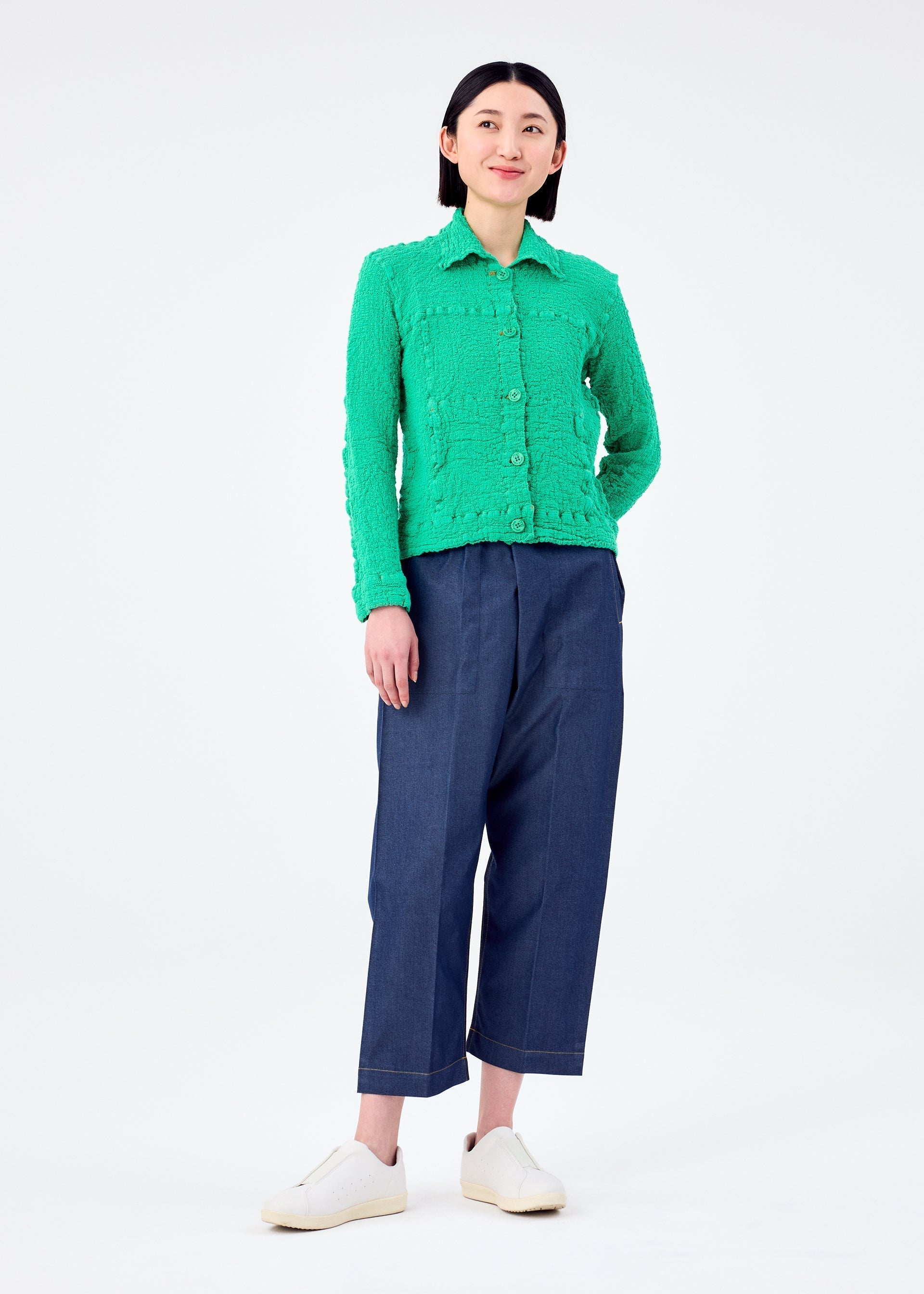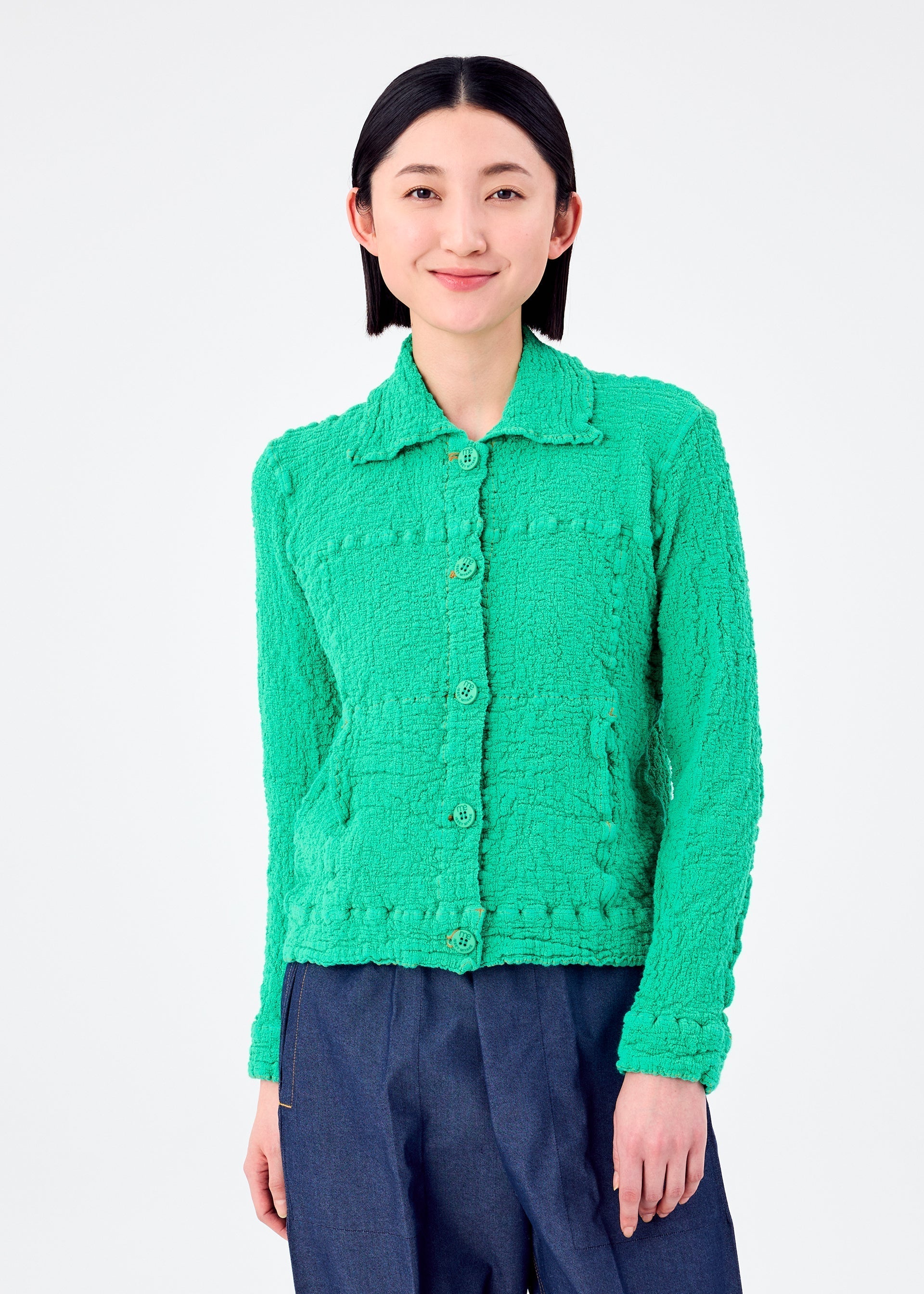 This CAULIFLOWER thick jacket is characterized by the feel of its material that has the excellent comfort unique to cotton as well as a stretchy unevenness. It has a simple design accented by stitching in a different color scheme to the fabric. There are pockets on both sides.