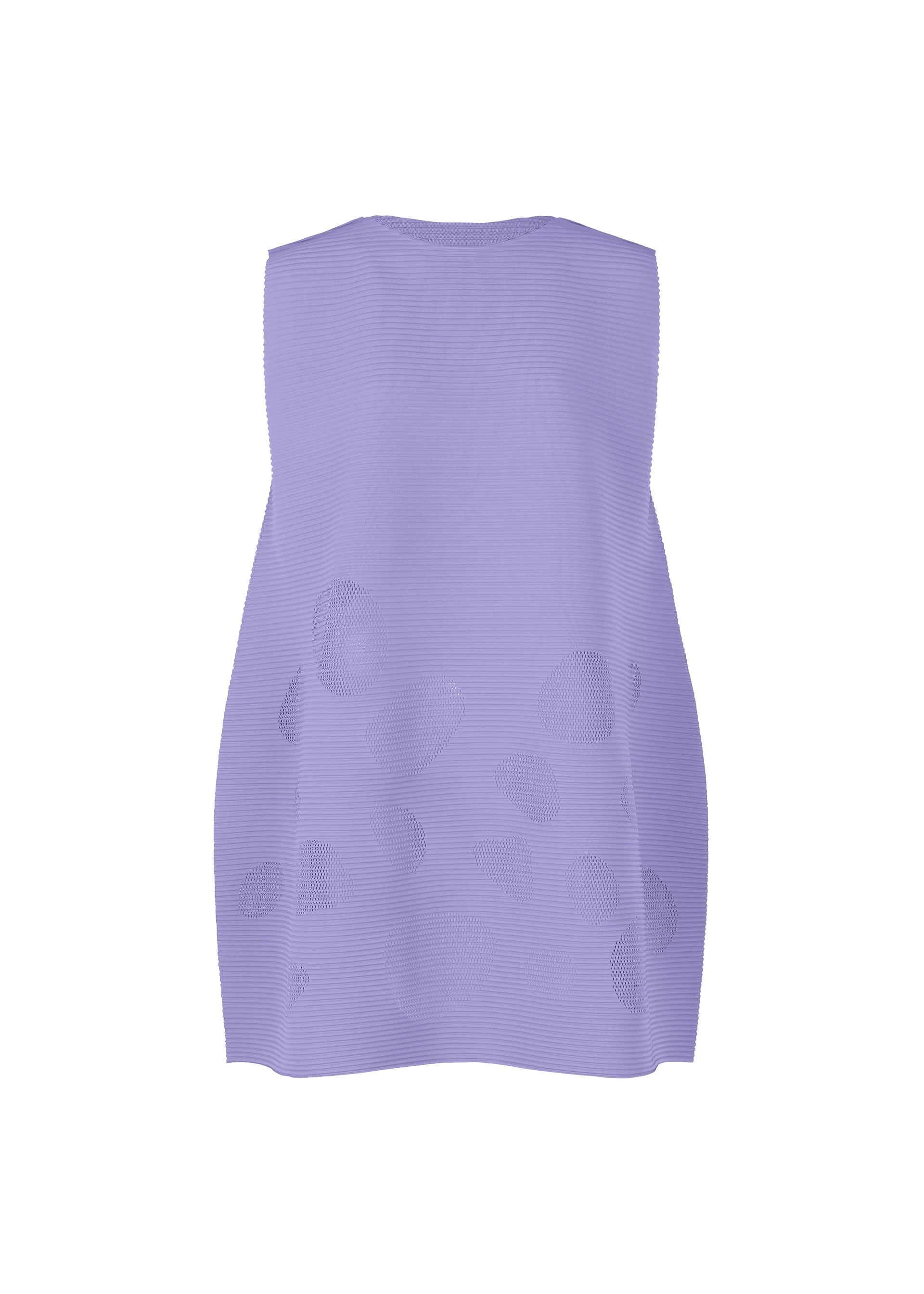 This FINE KNIT PLEATS tunic is characterized by its lightweight, soft feel and features pleats applied to knit material made with stretchy, thin, soft yarn. The mesh structure and silhouette express the transparency and round form of sea glass. This item features fun, bouncy movement created by the horizontal pleats.