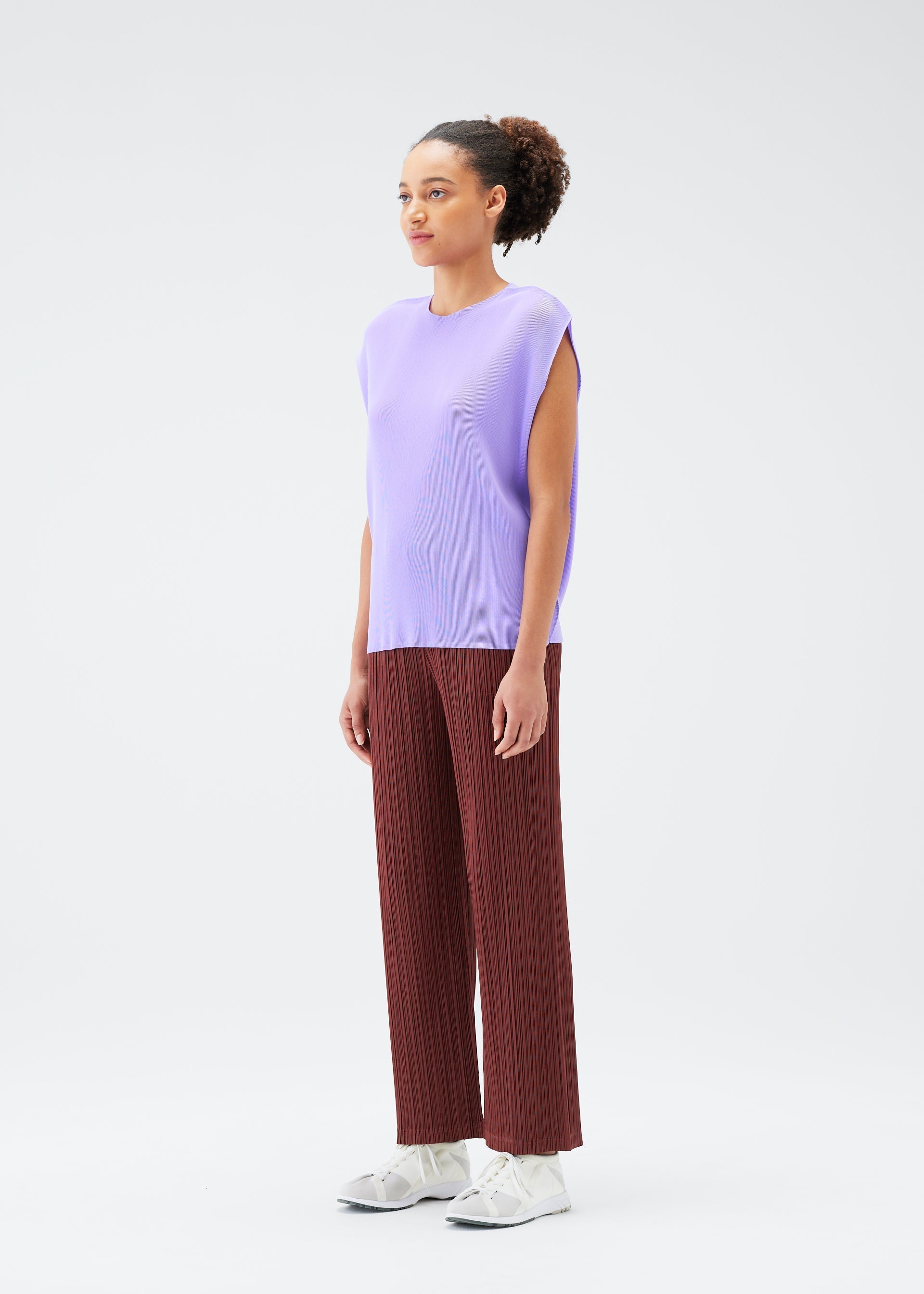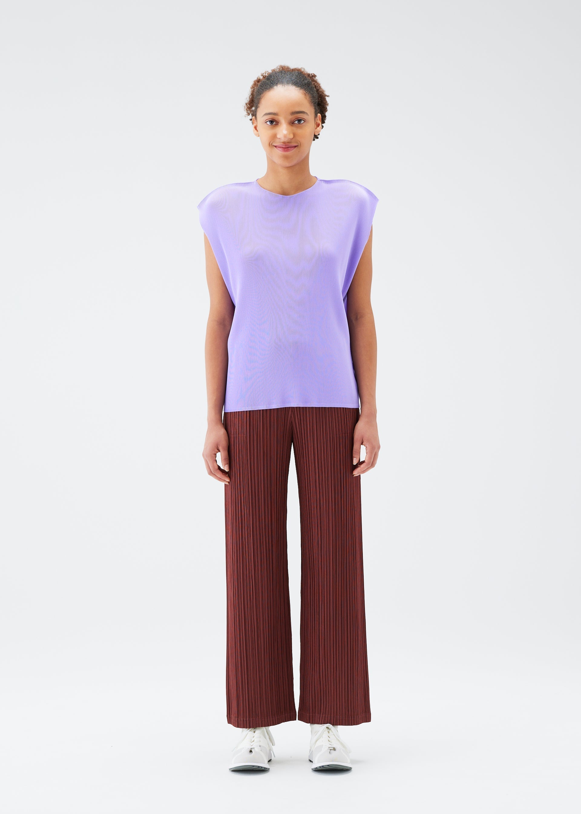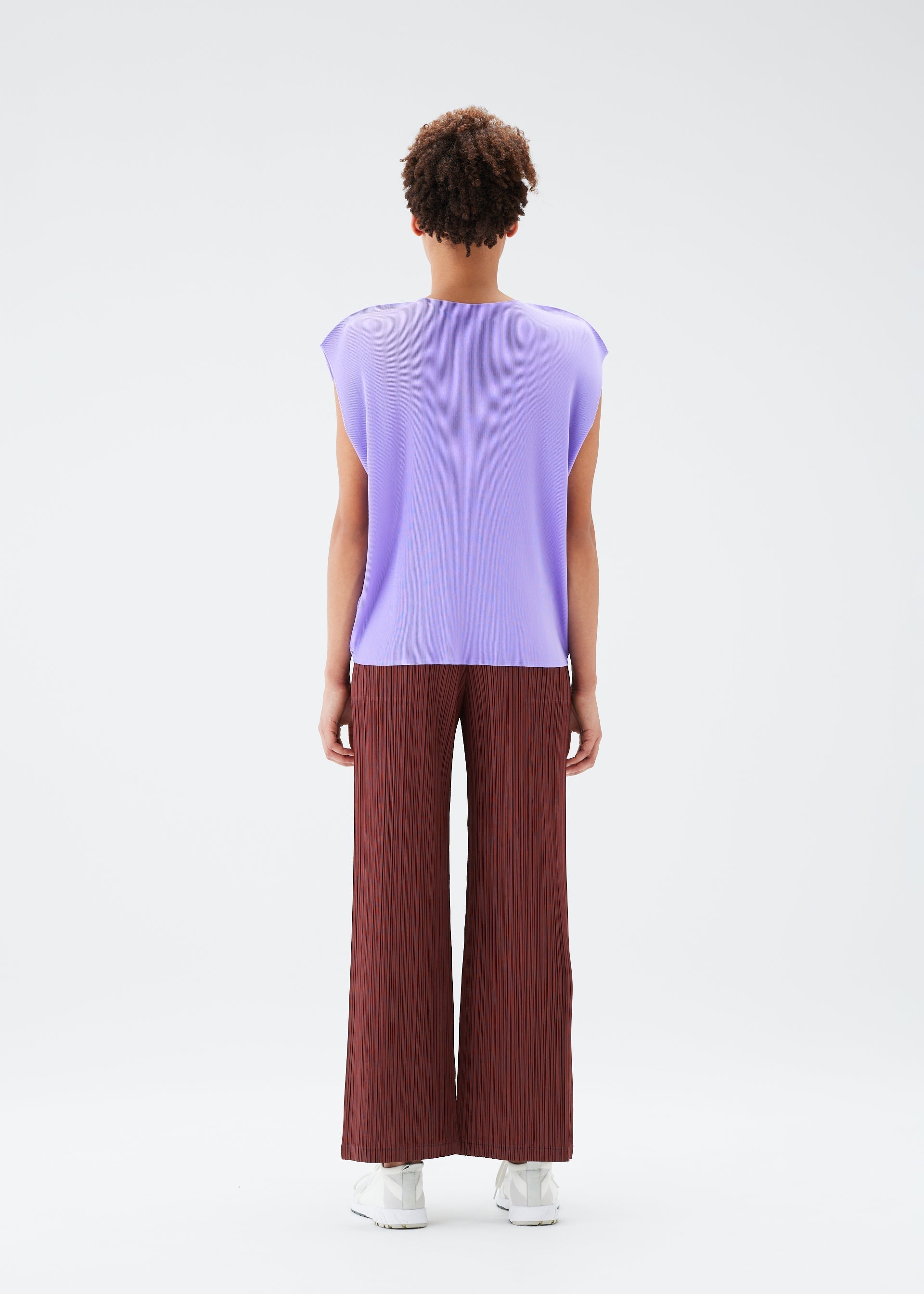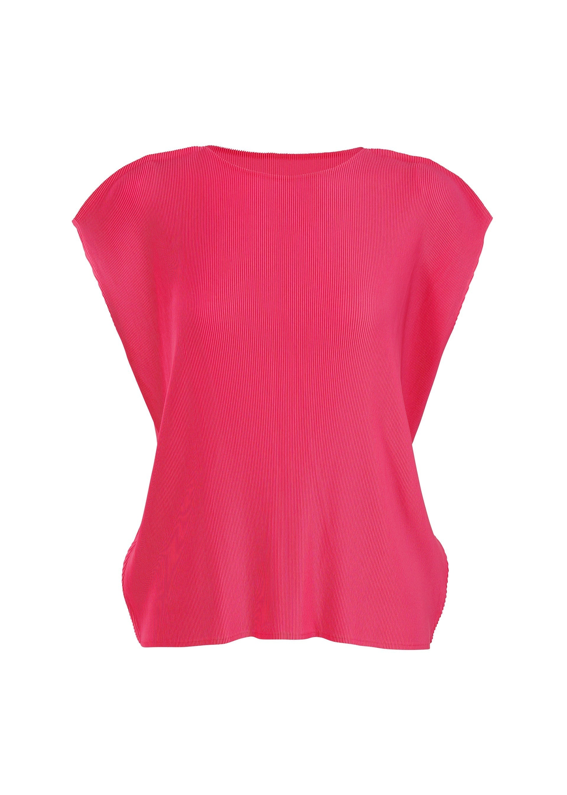 This soft and lightweight round-neck, sleeveless top is finished with one-millimeter fine pleats.