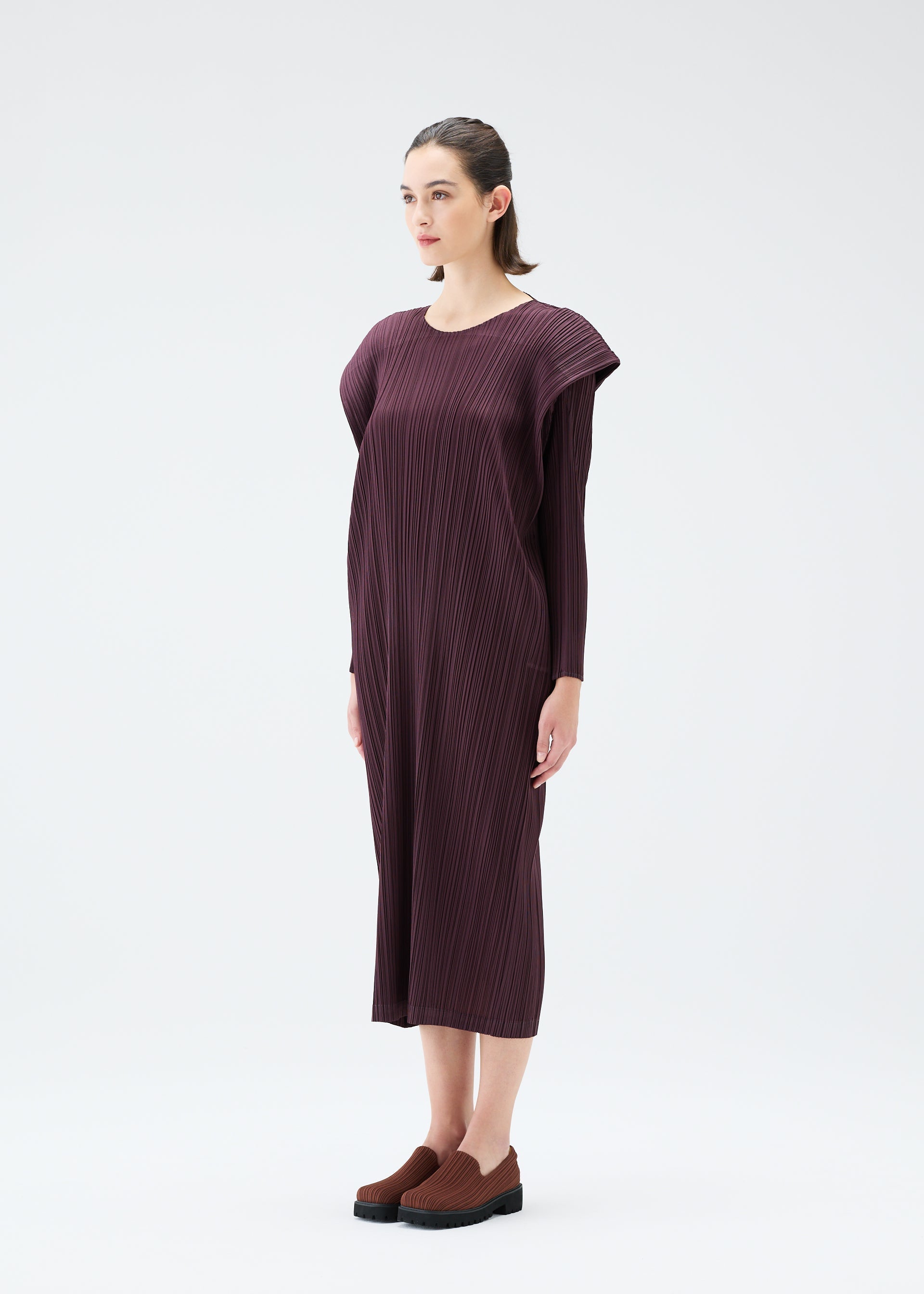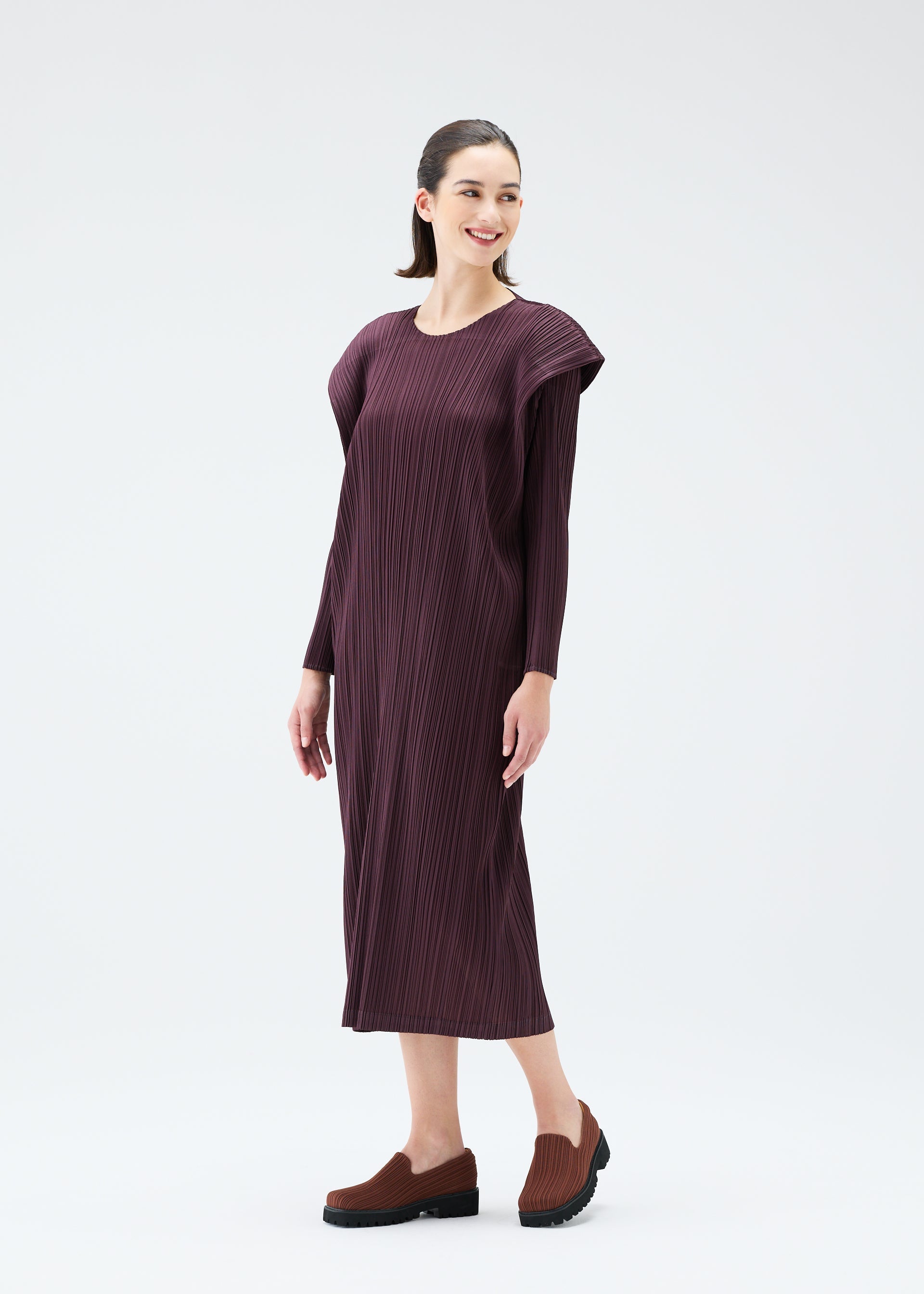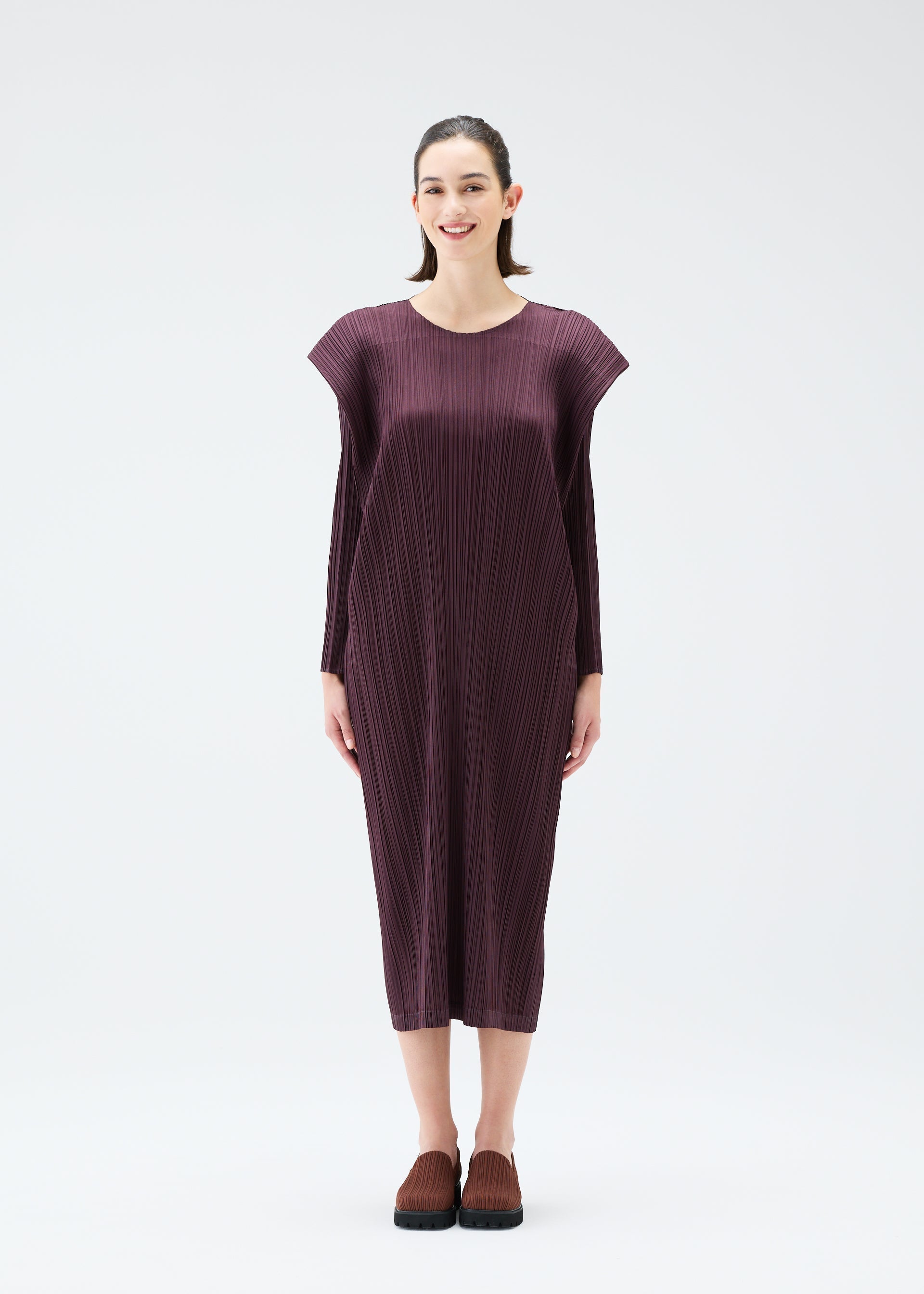 This round-neck, long-sleeved dress comes in a variety of colorful colors.