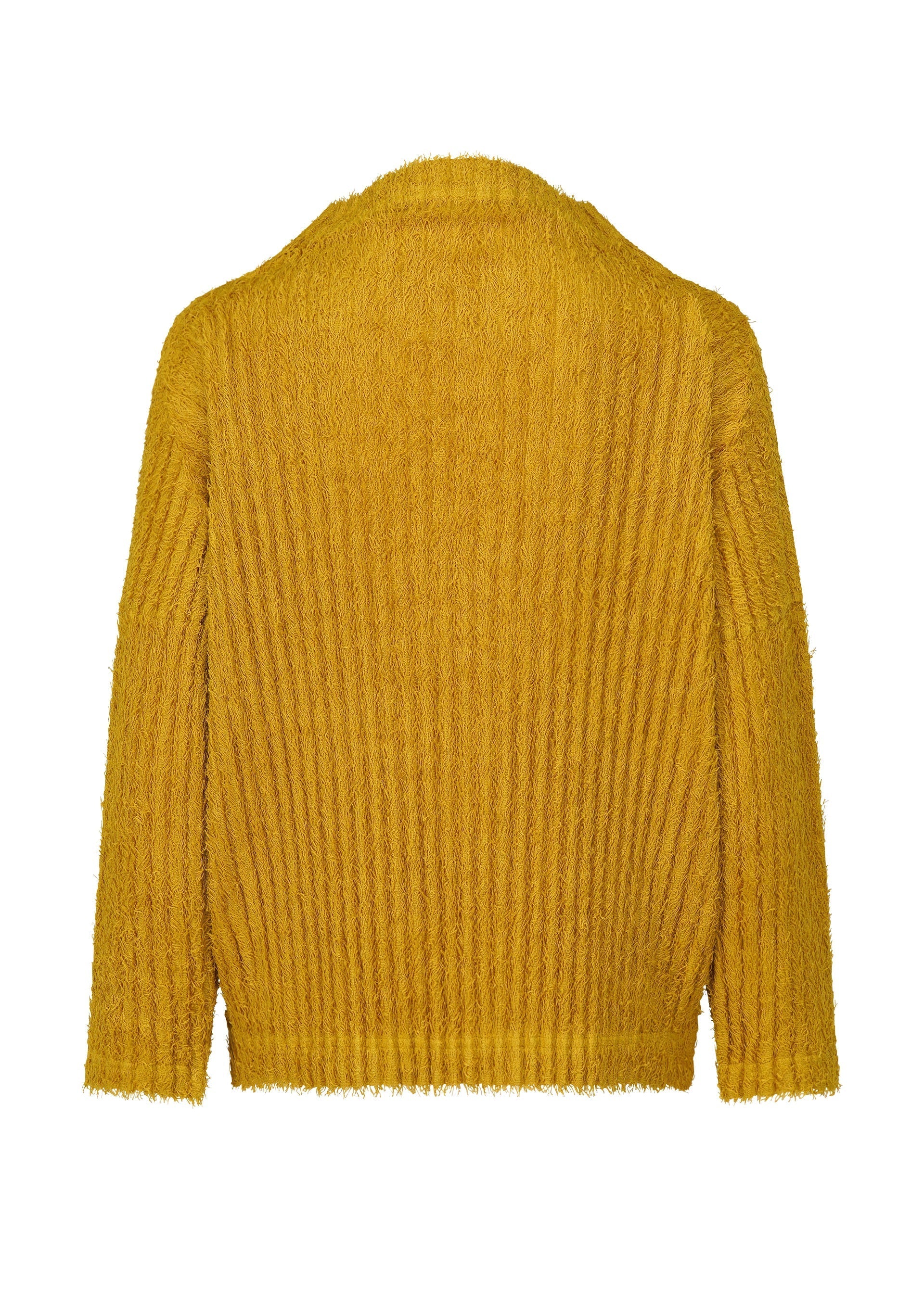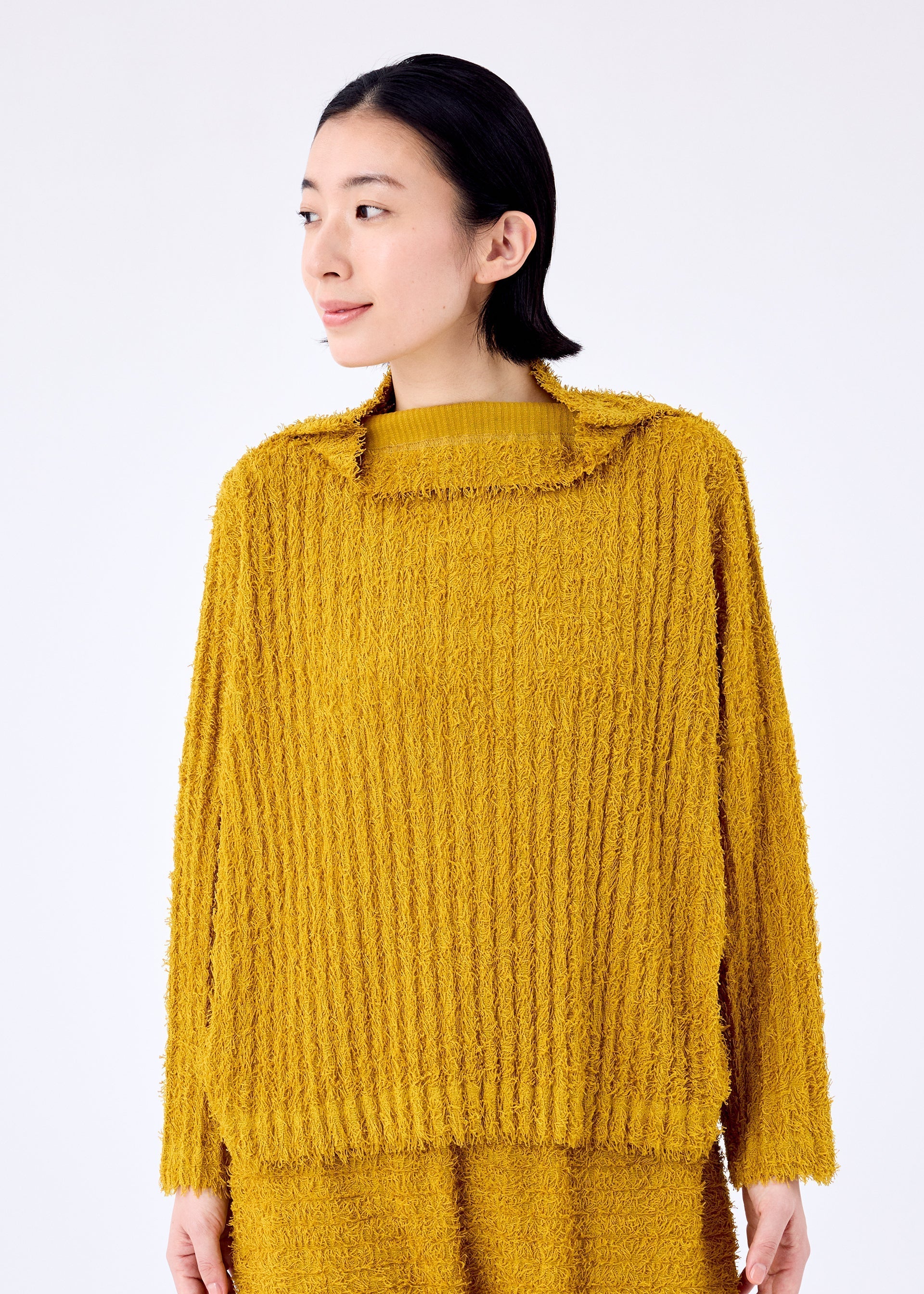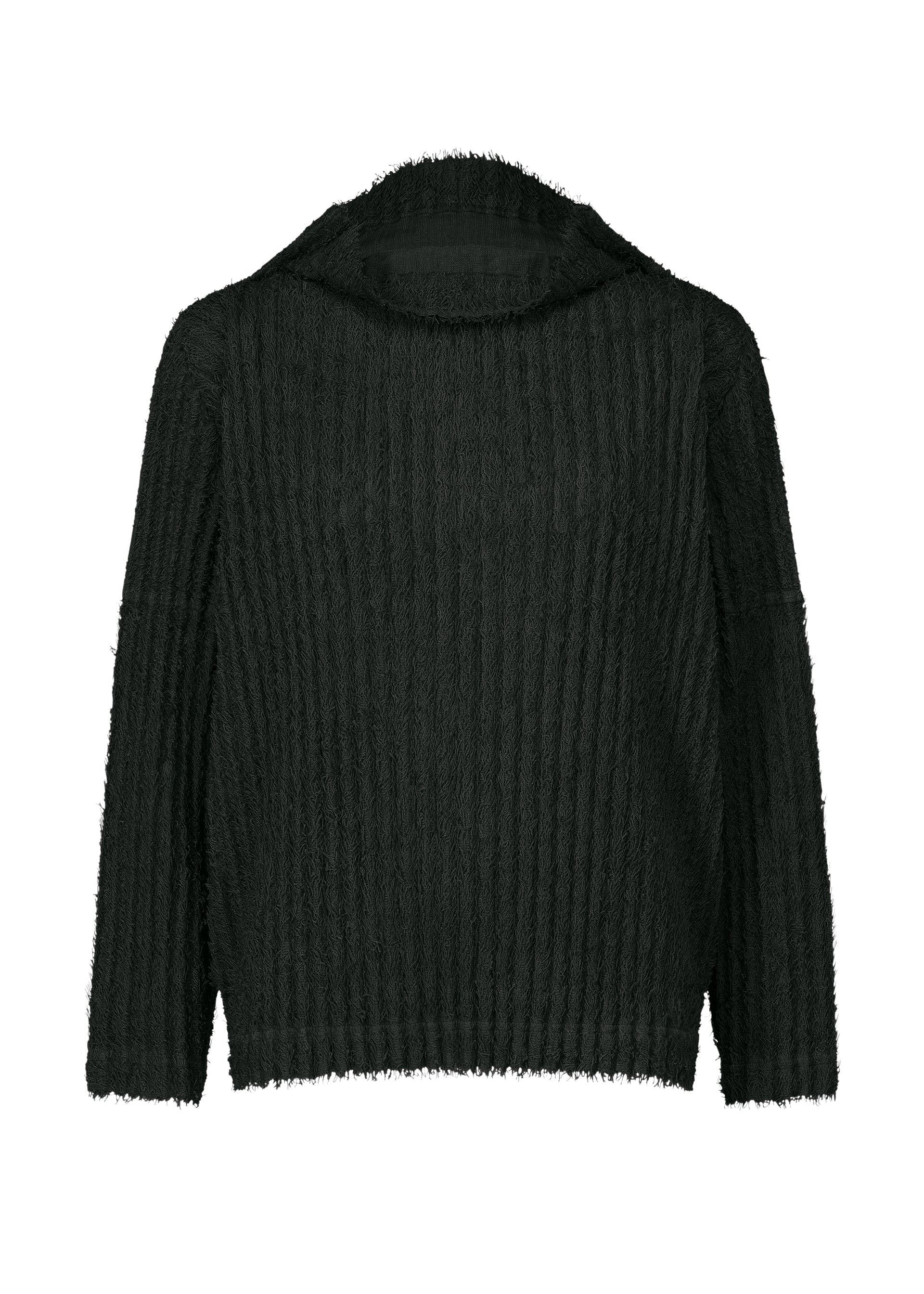 This high-neck, long-sleeved top is characterized by its long-pile, tufted fabric that is pleated to create a texture with abundant looks. This item has a warm look perfect for autumn outfits.