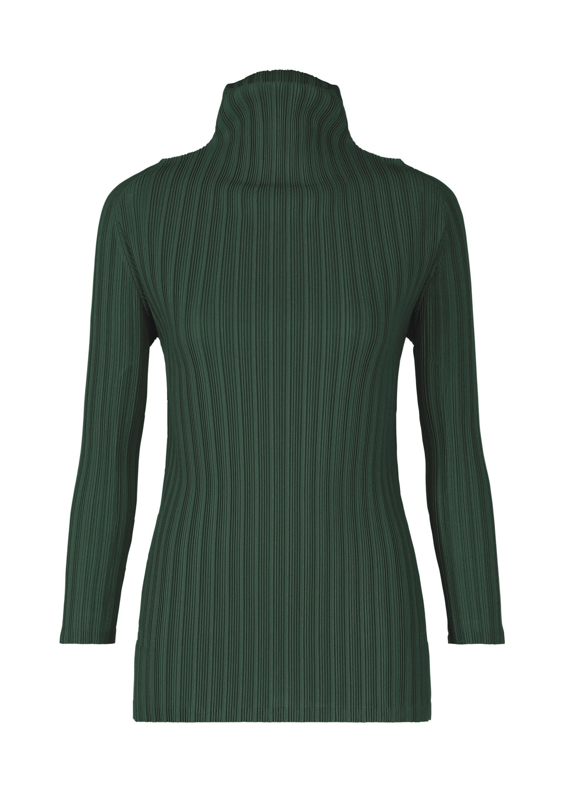 A high neck long sleeve shirt made of soft fabric that is easy to coordinate with other outfits.