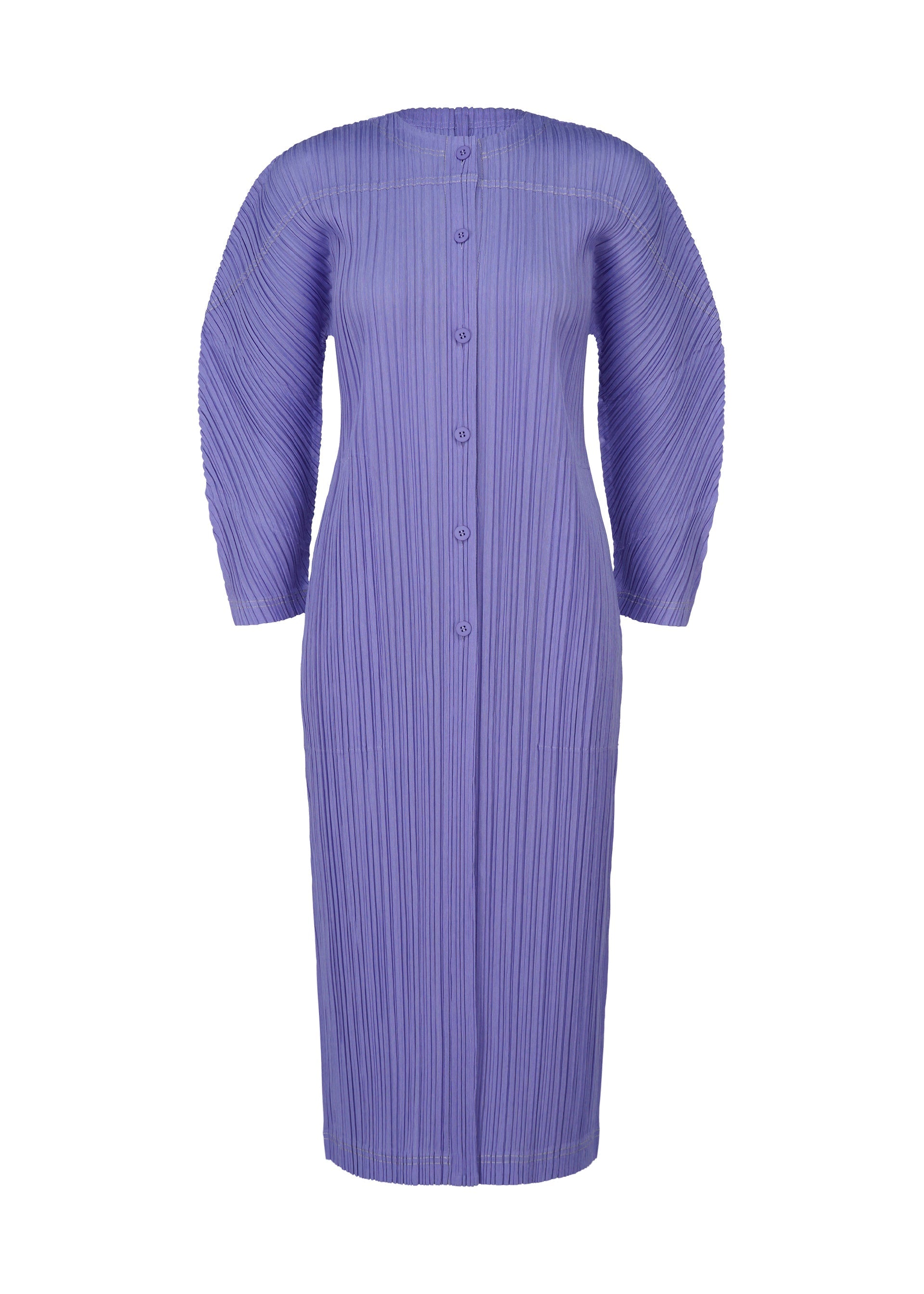 This buttoned long cardigan is characterized by the soft texture unique to ramie. It has a distinctive silhouette with round sleeves. It has pockets on both sides and a back slit.