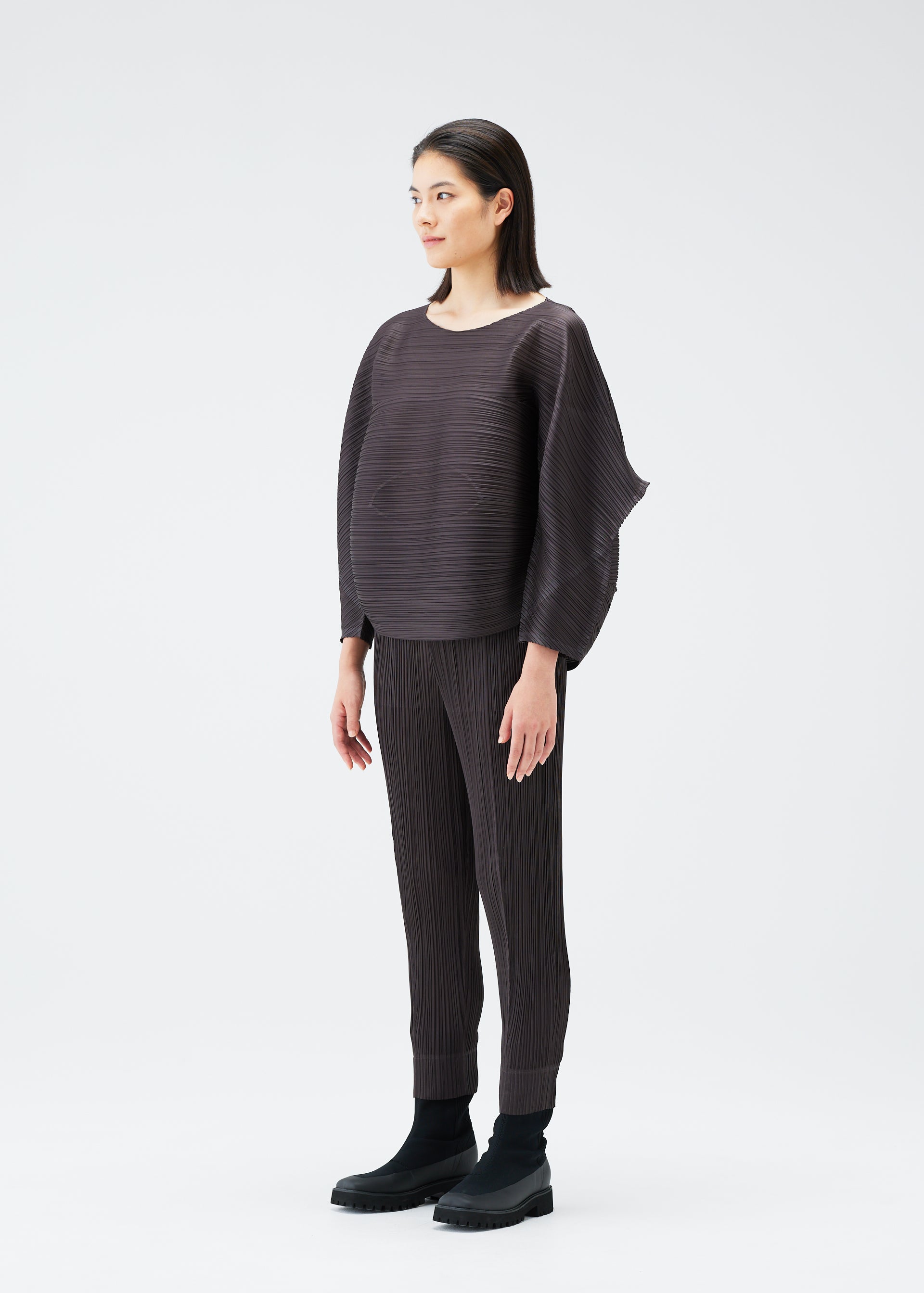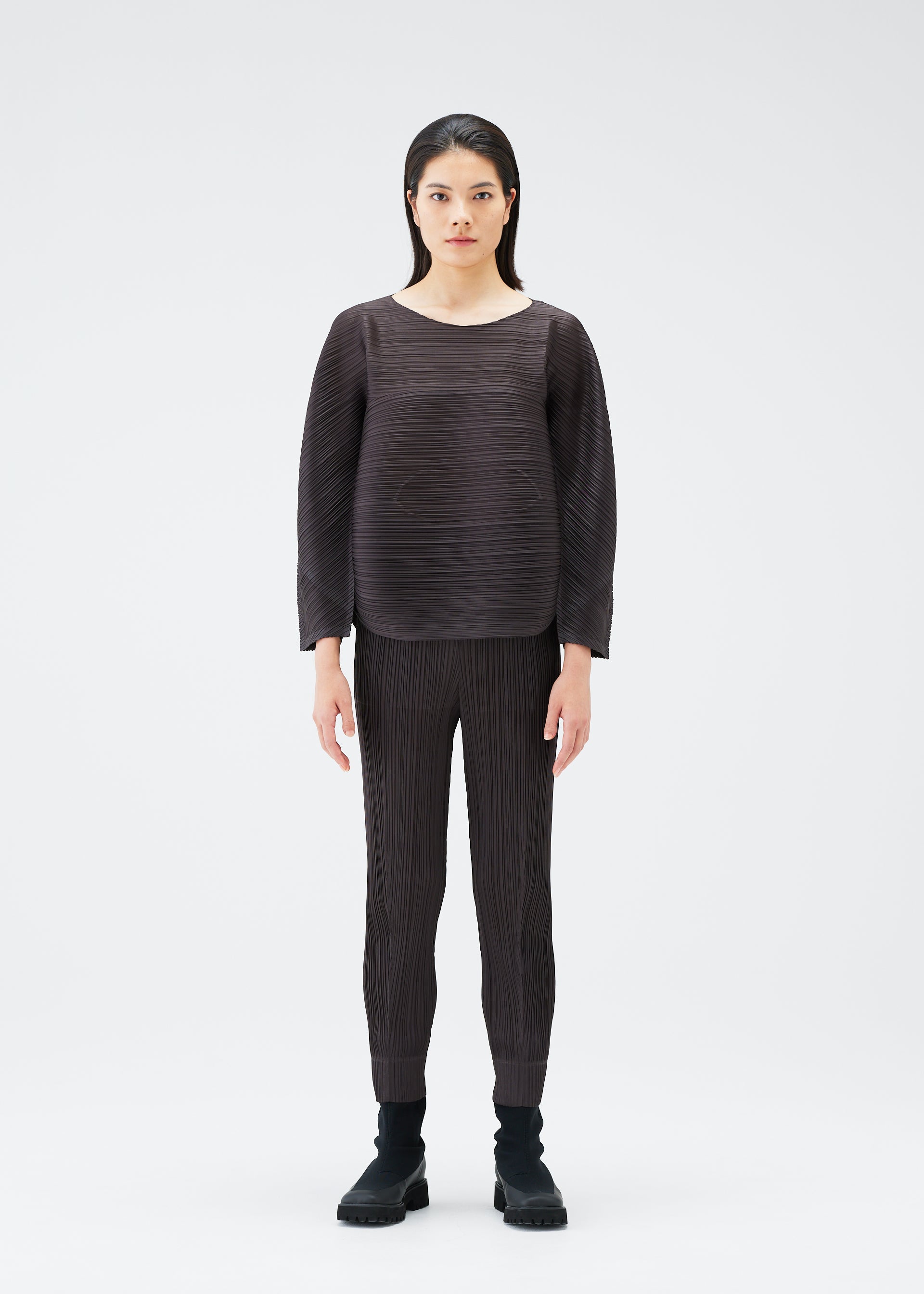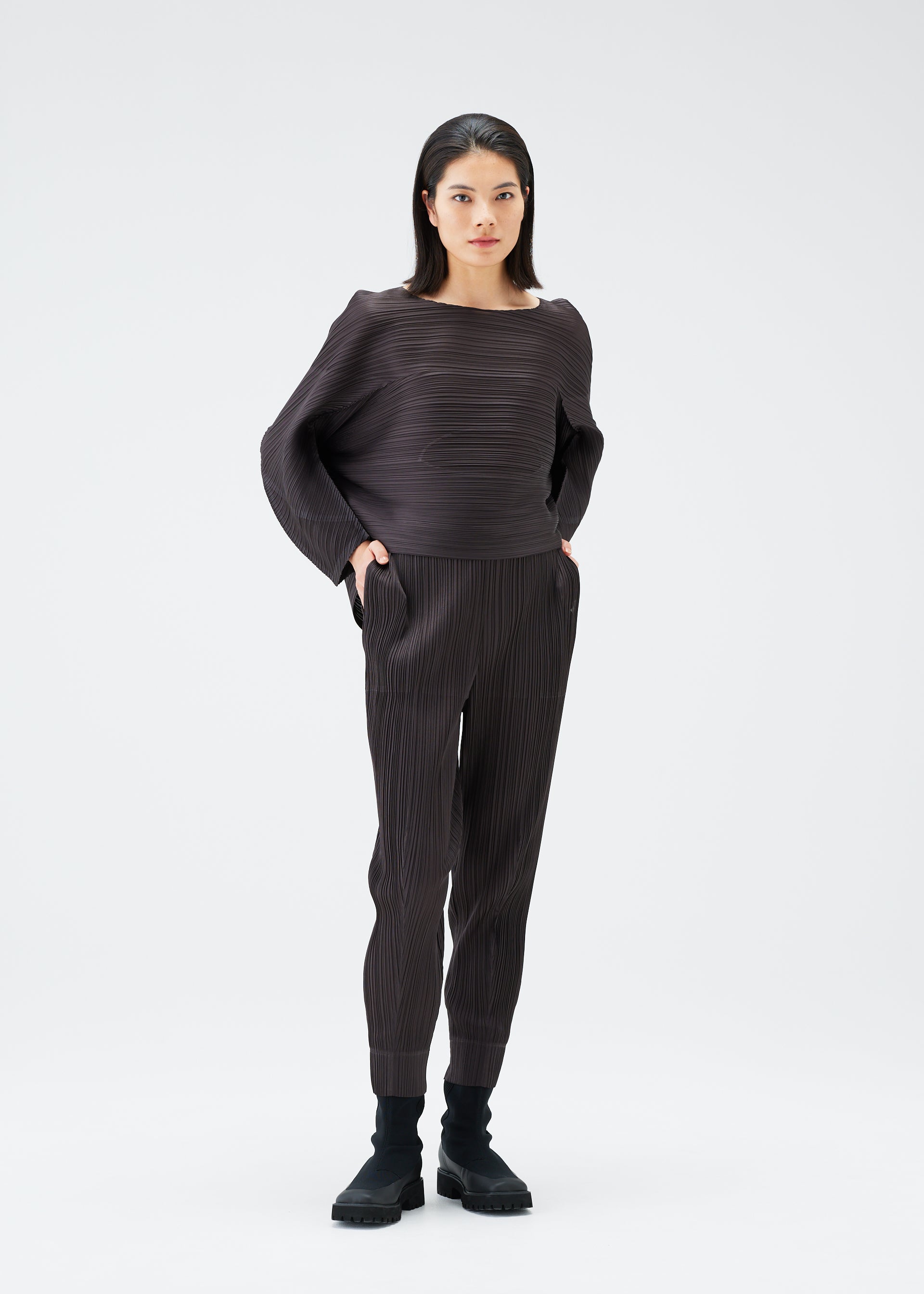 These tapered pants are available in subdued colors. They have pockets on both sides.