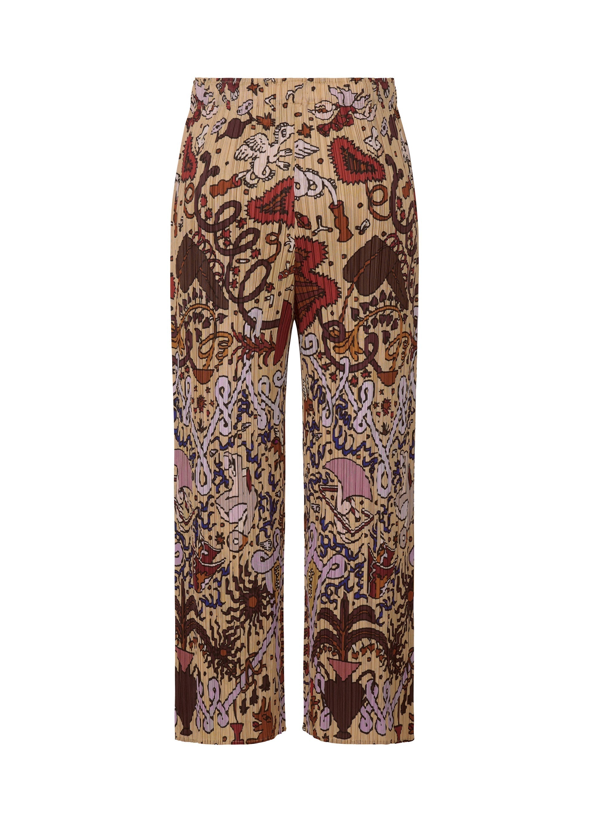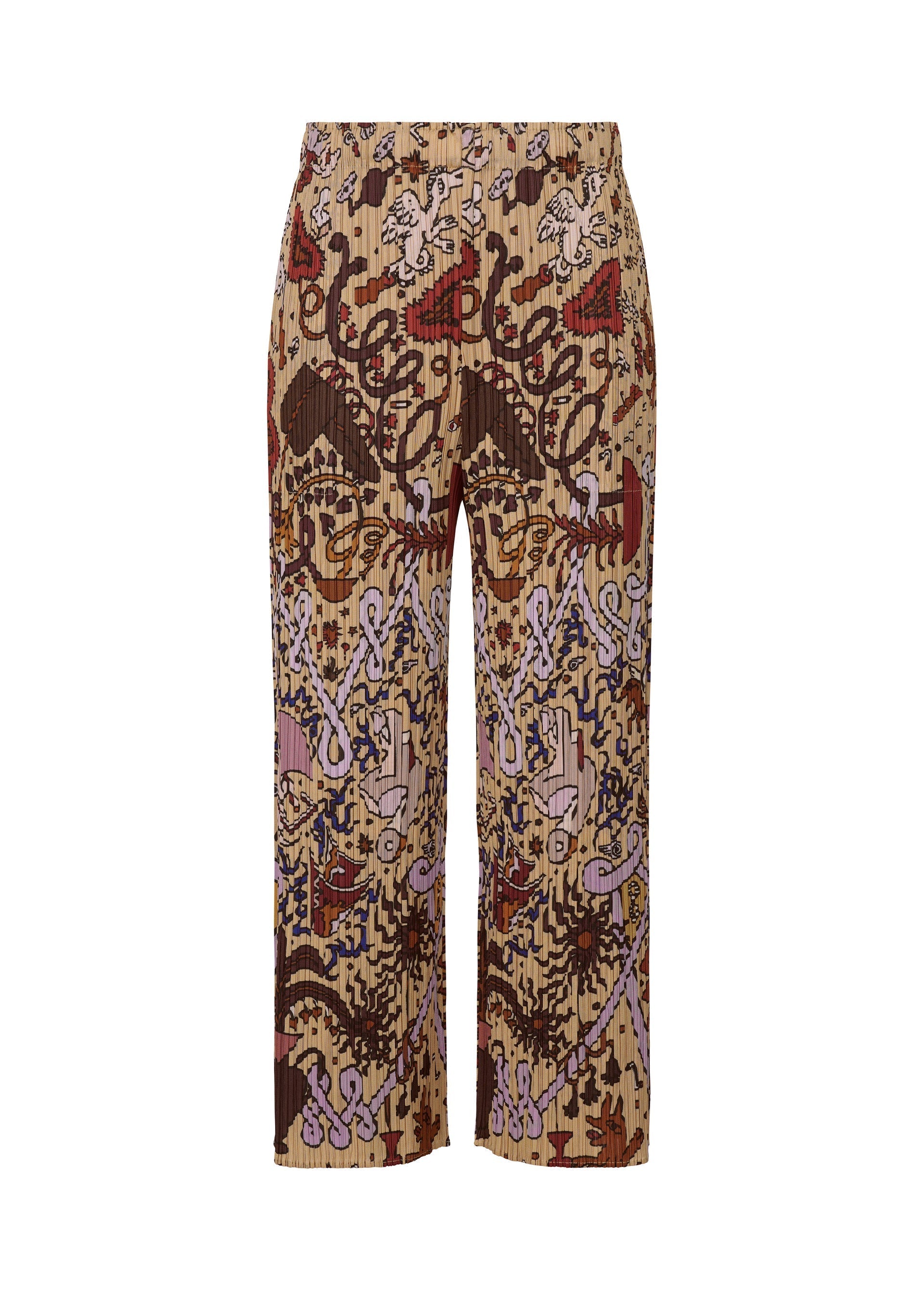 These straight pants have a print that depicts exciting imaginary scenery in outer space. They have pockets on both sides.