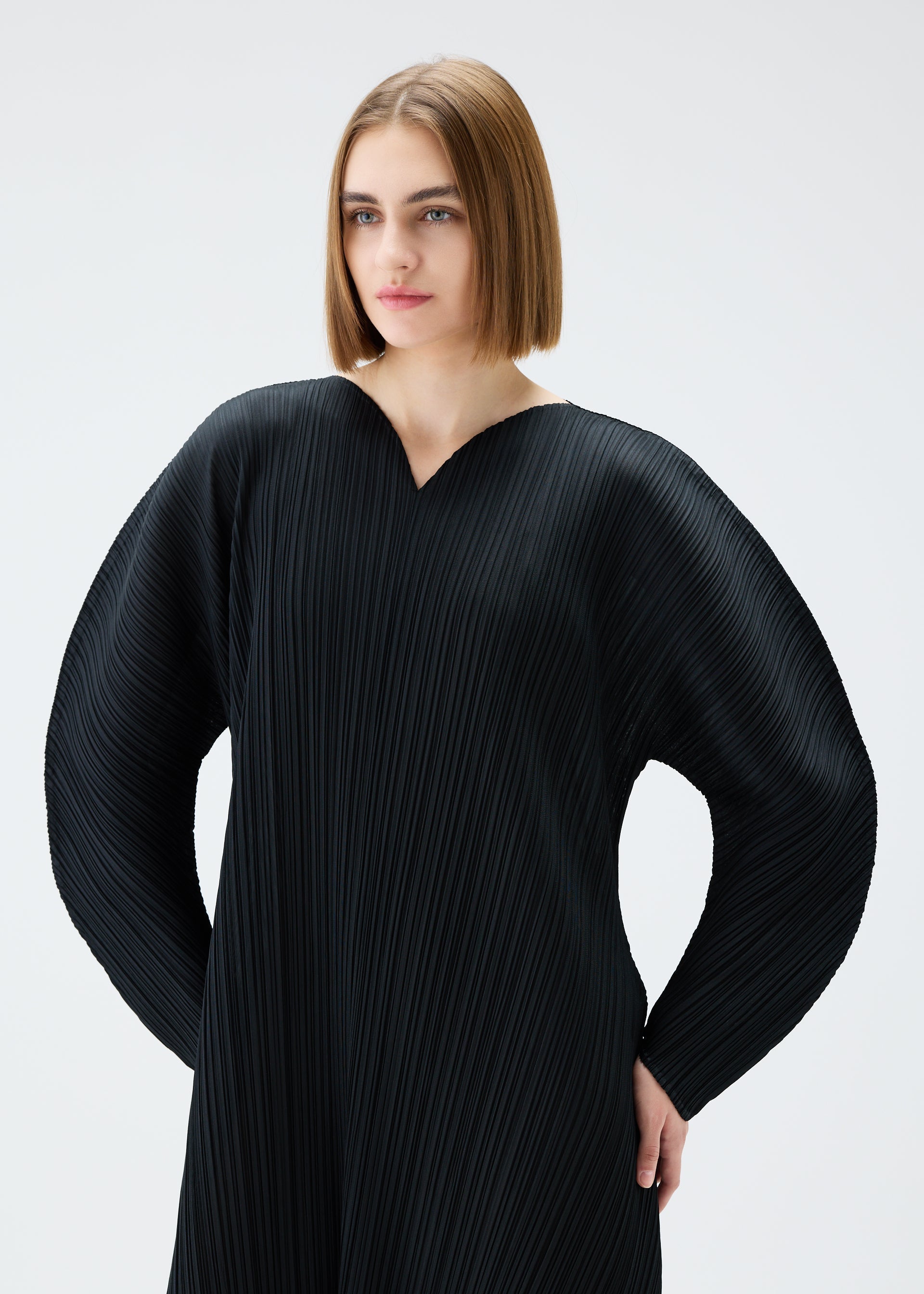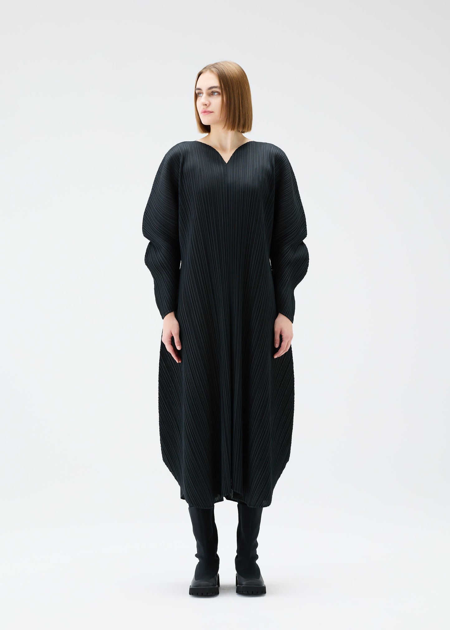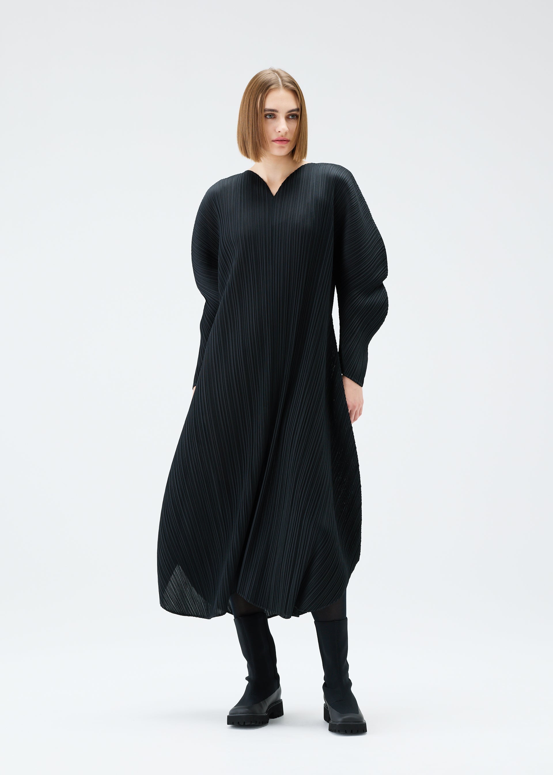 This long-sleeved dress is characterized by its silhouette inspired by wormholes.