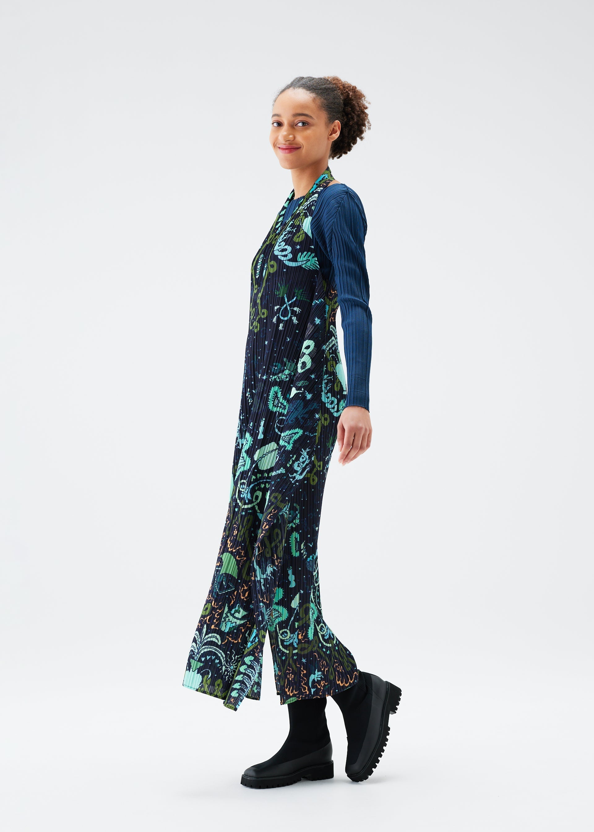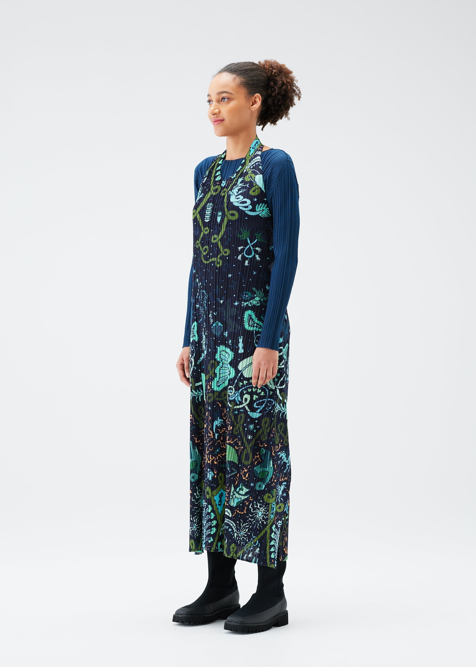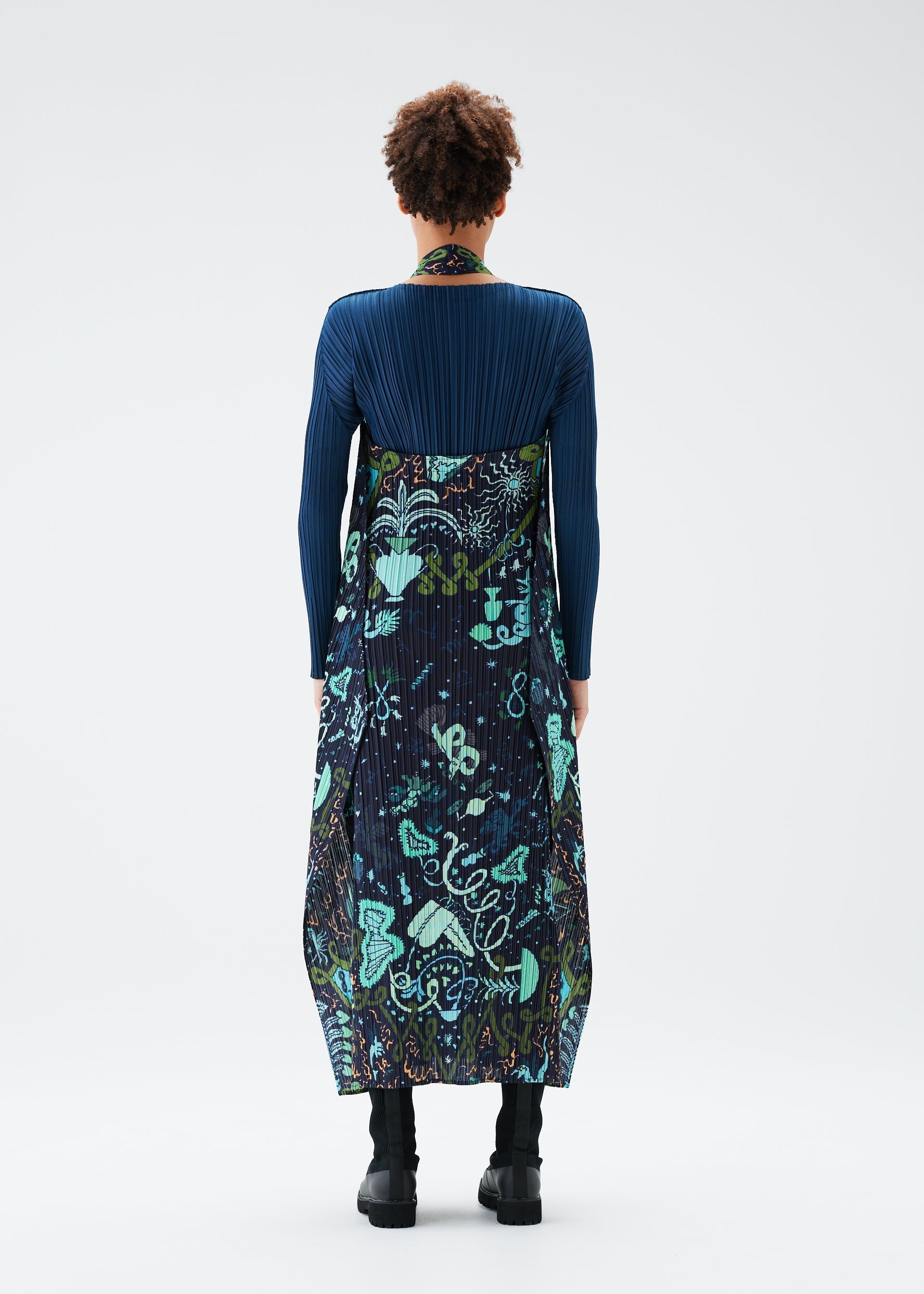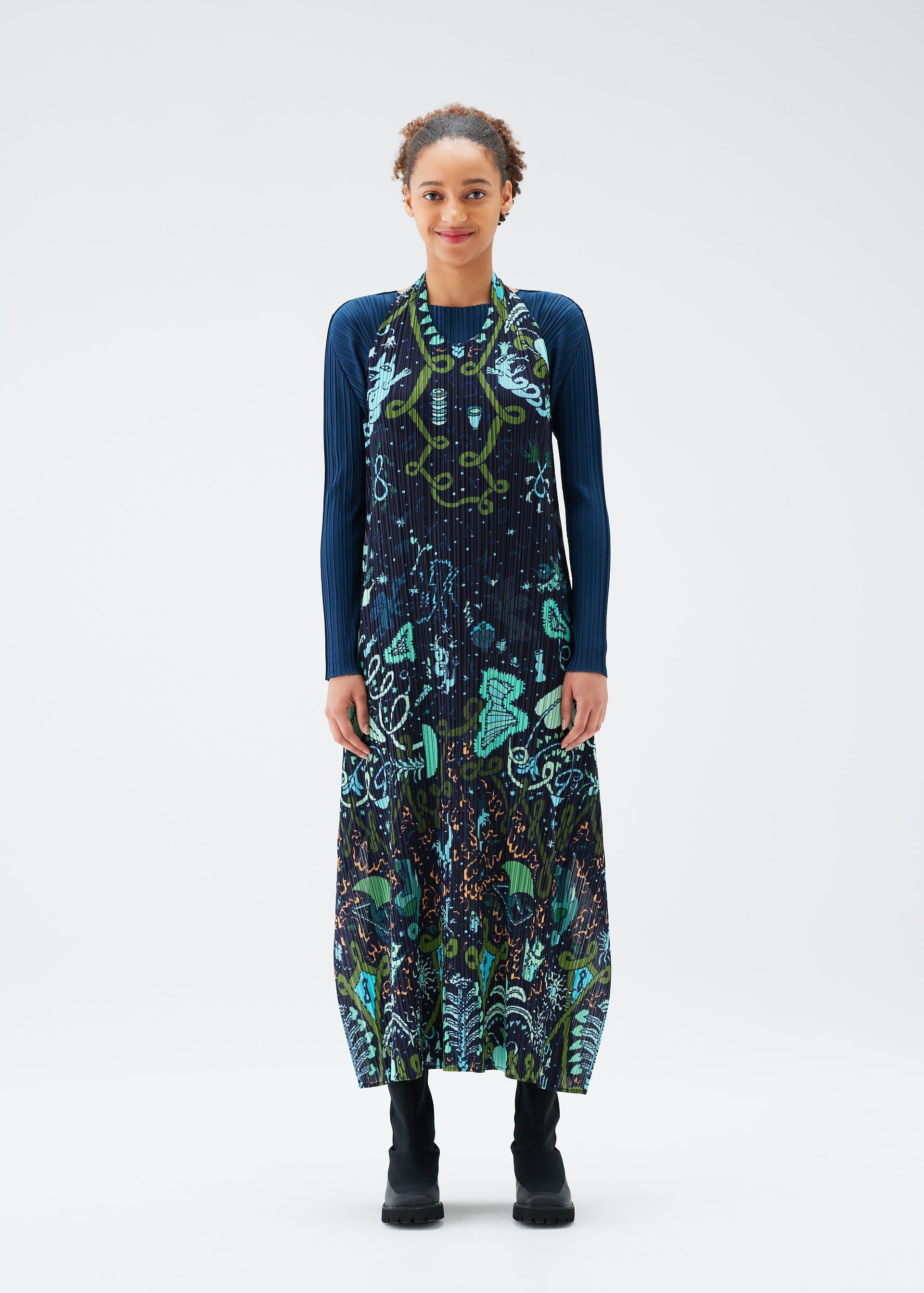 This halterneck dress has a print that depicts exciting imaginary scenery in outer space. It is characterized by its flared silhouette that uses ample fabric to showcase the pattern.