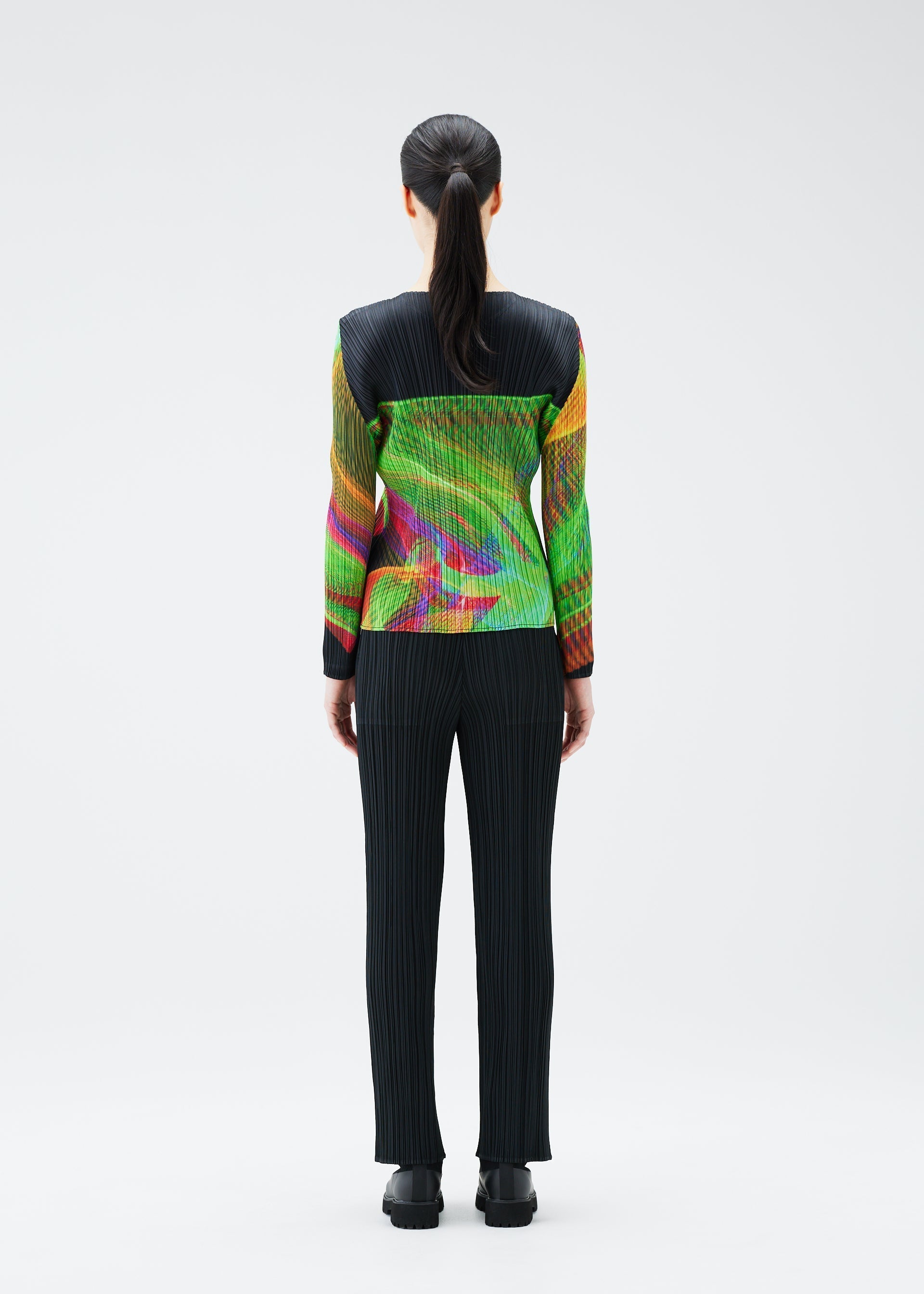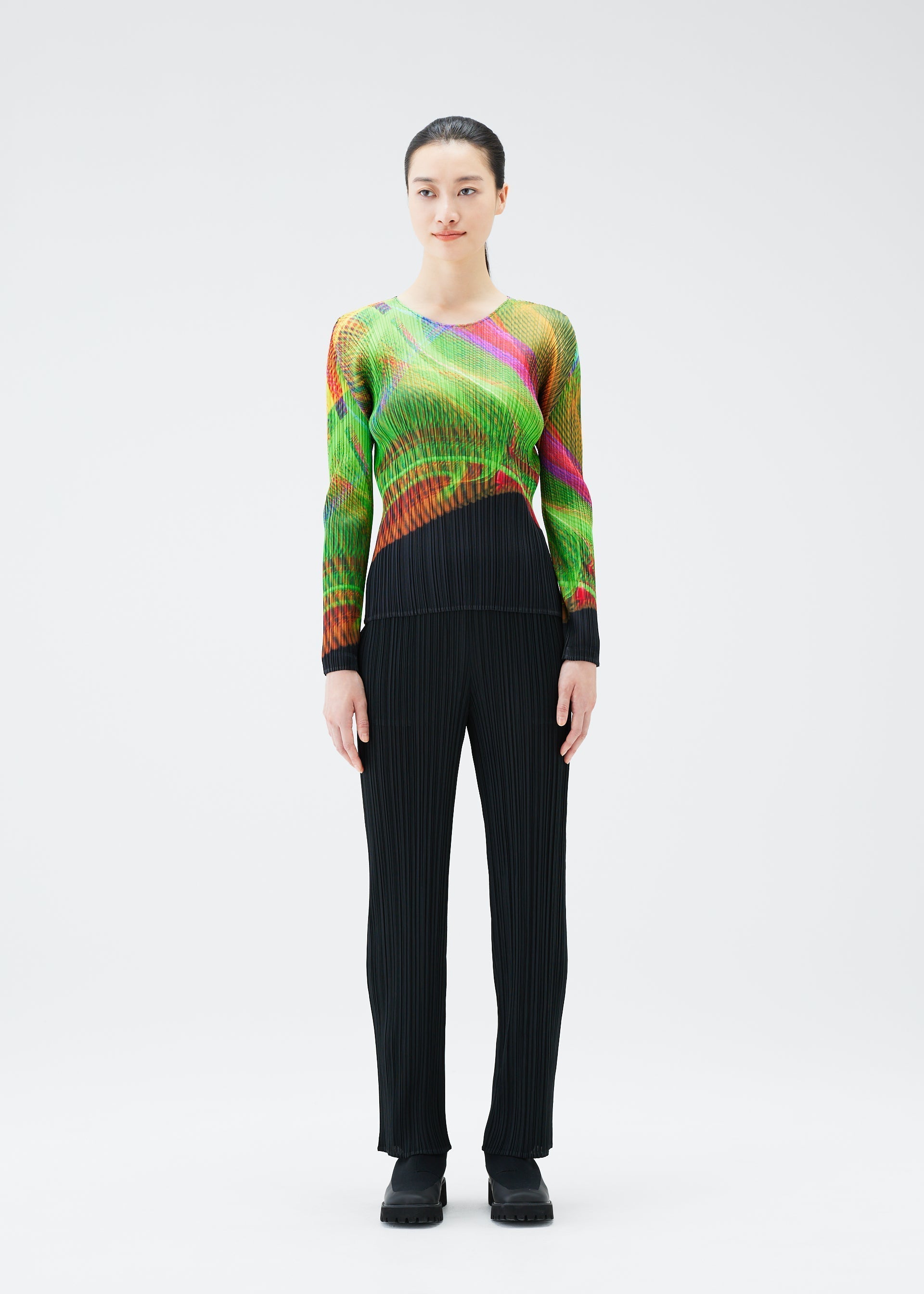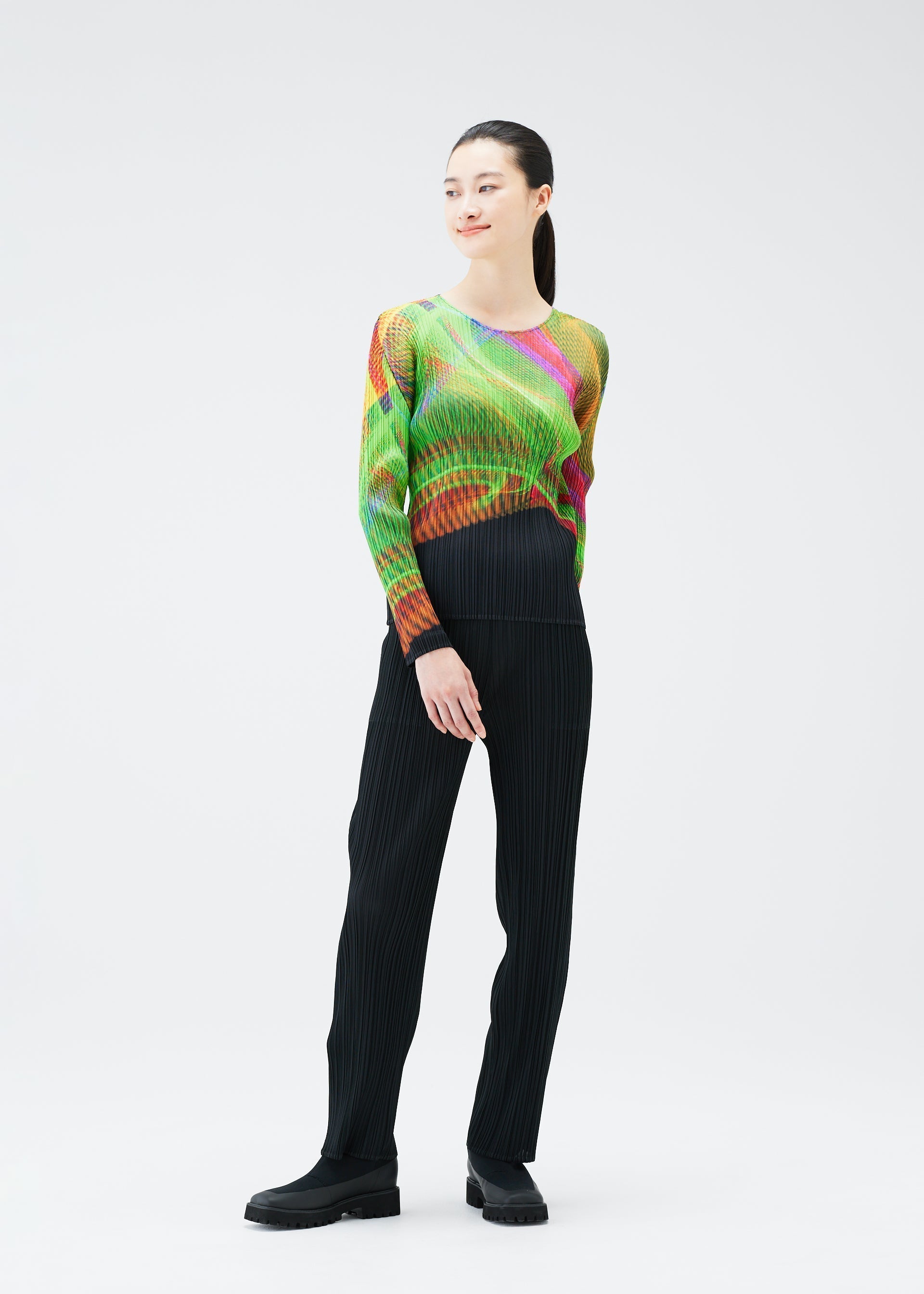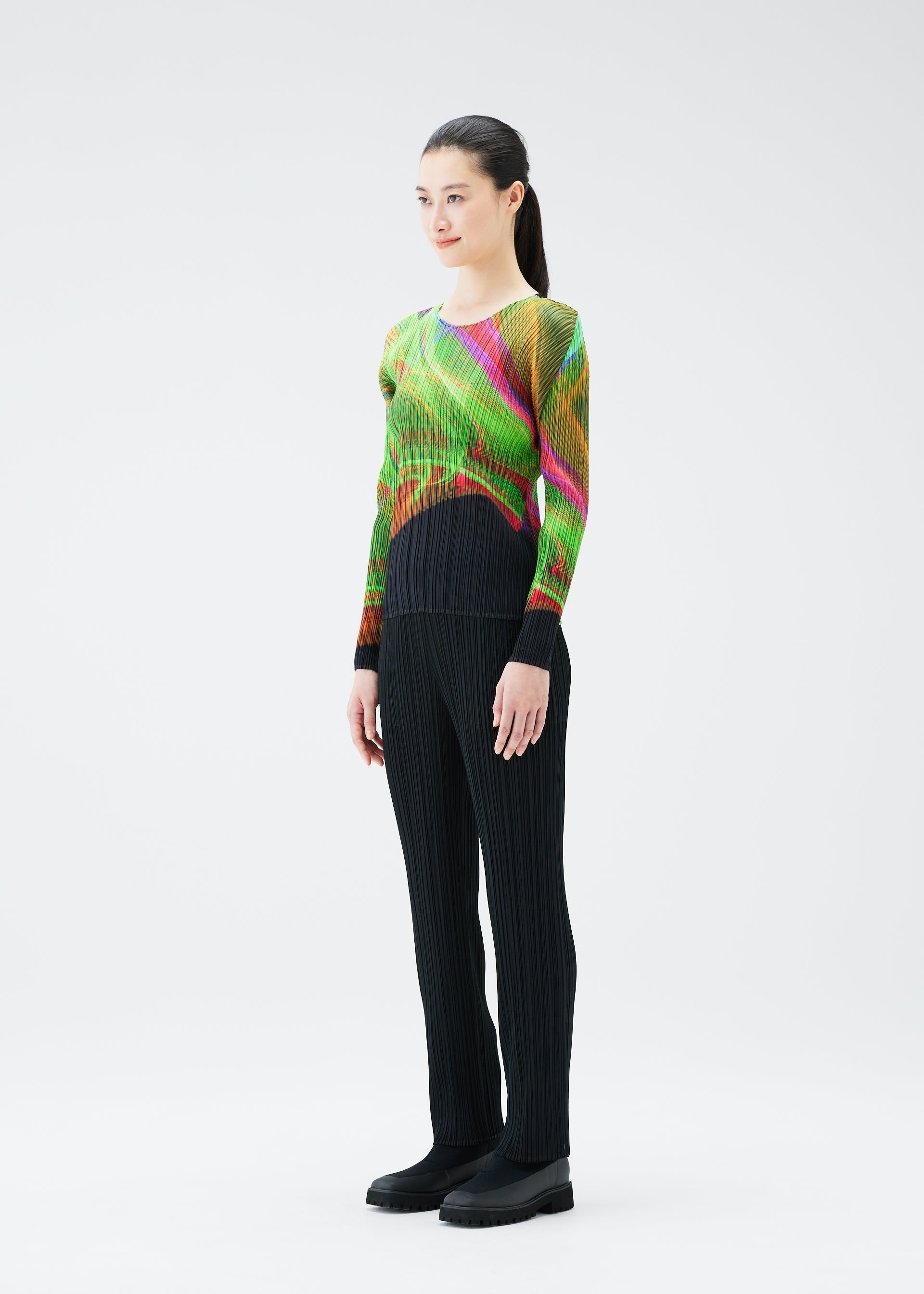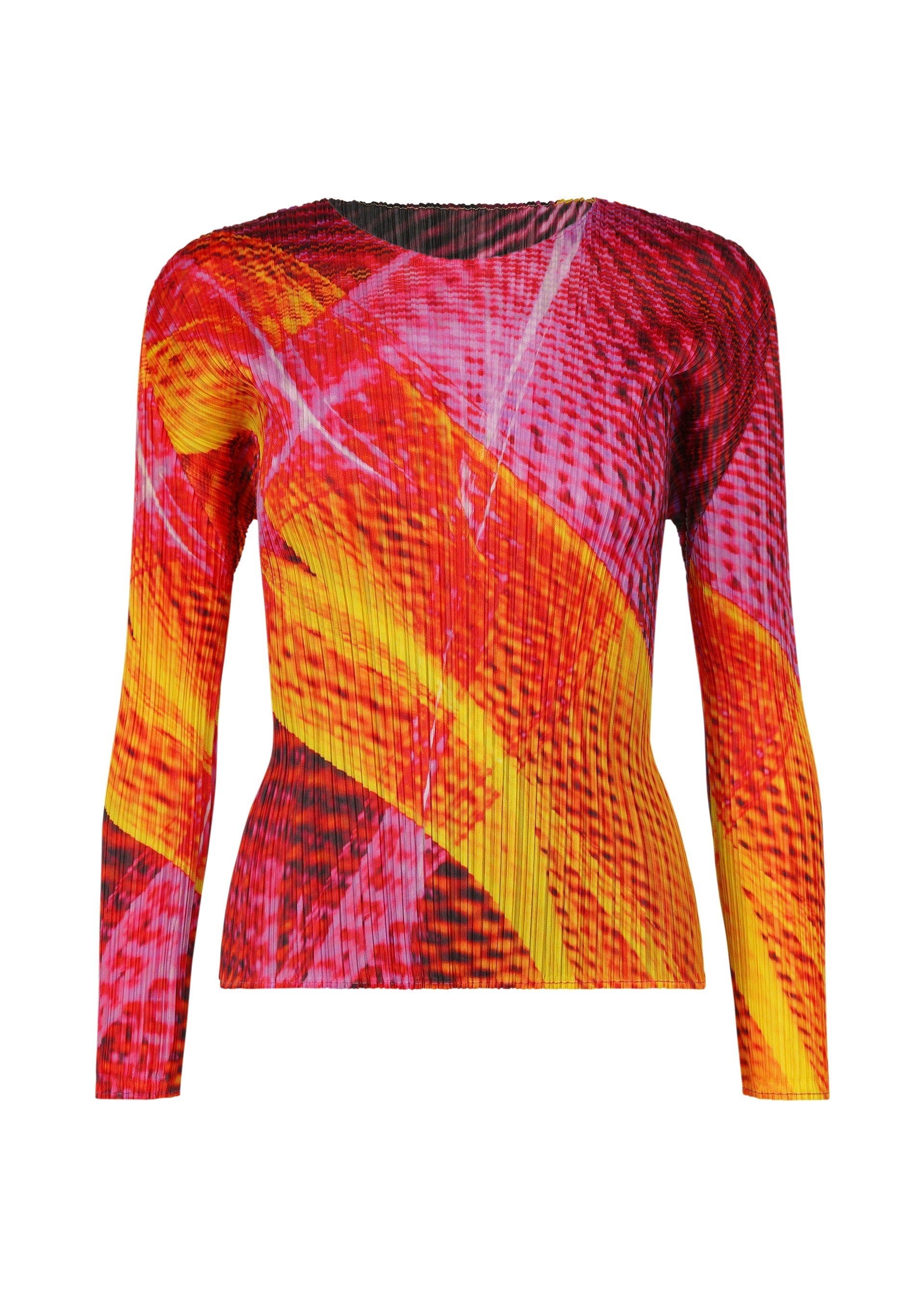 This round-neck, long-sleeved shirt has a print inspired by galaxies, planets, and outer space. The print features images taken at a slow shutter speed while moving a rope-shaped LED light.