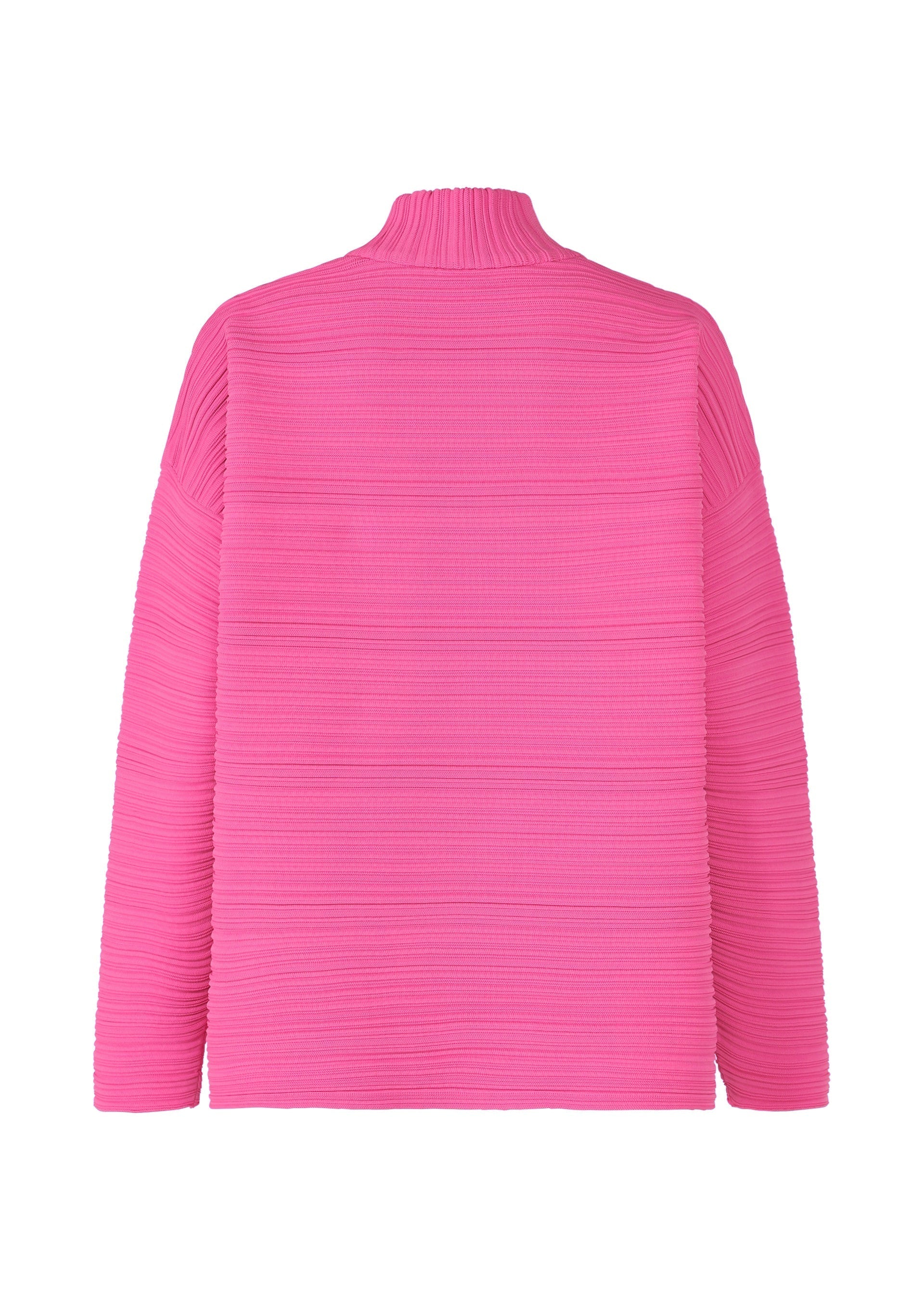 This knit features pleats in a horizontal knitting structure. It is characterized by being easy to care for as it is lightweight and machine-washable due to being made from 100% recycled polyester.